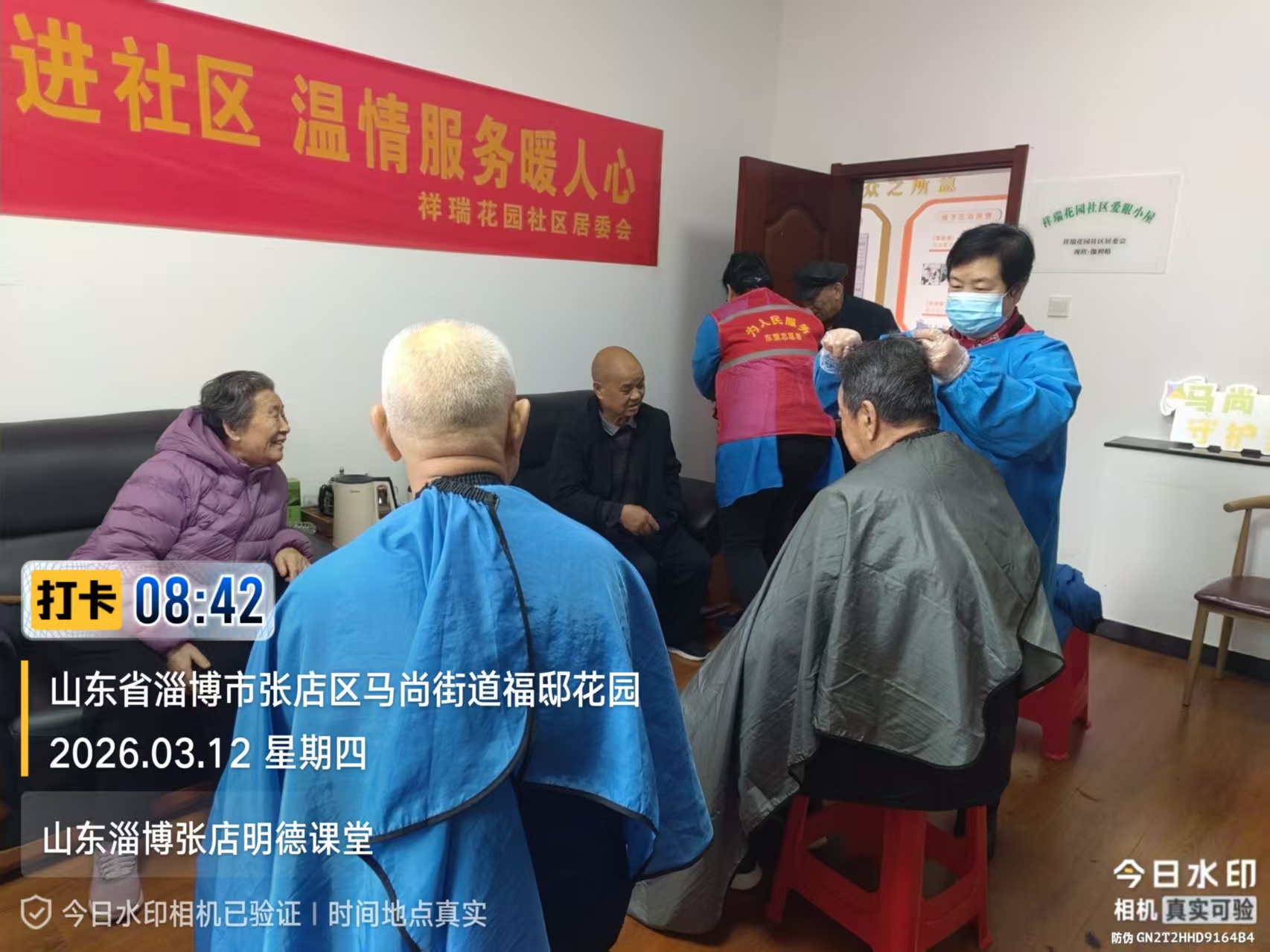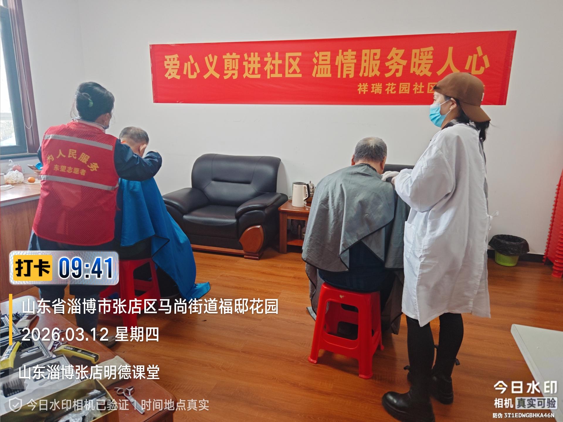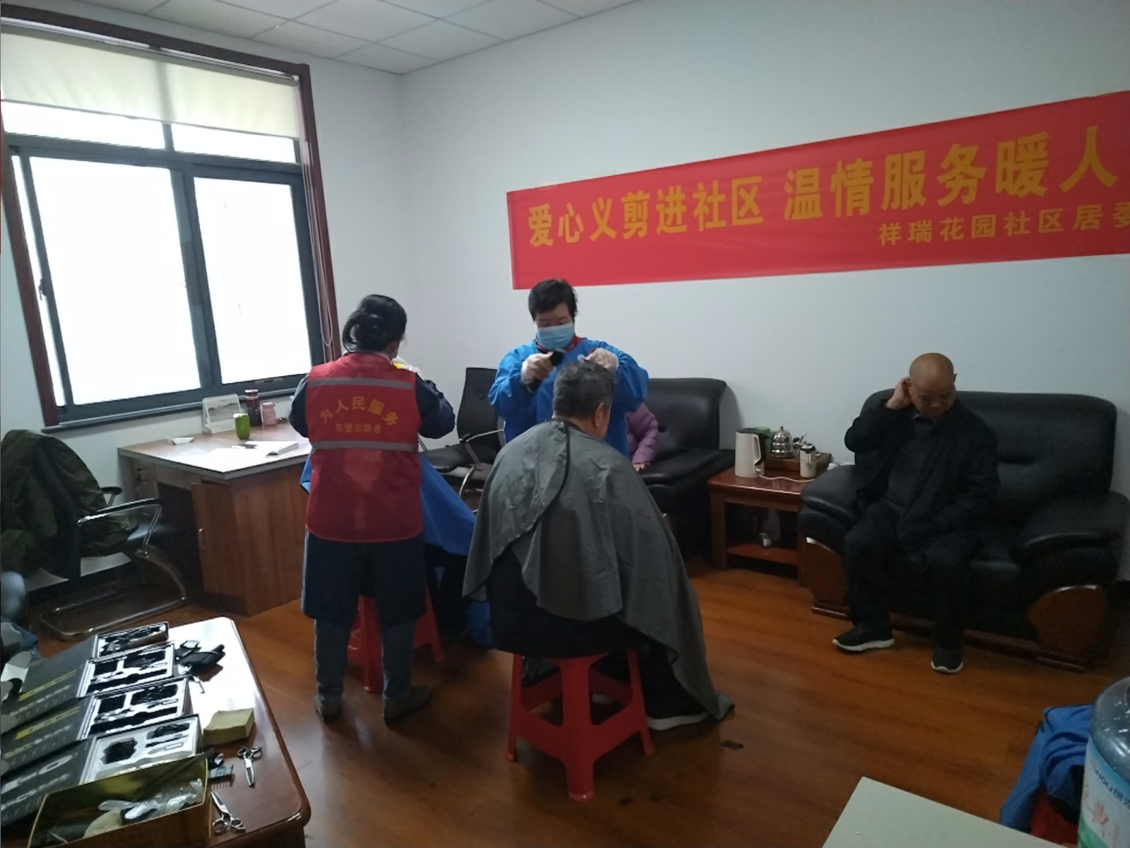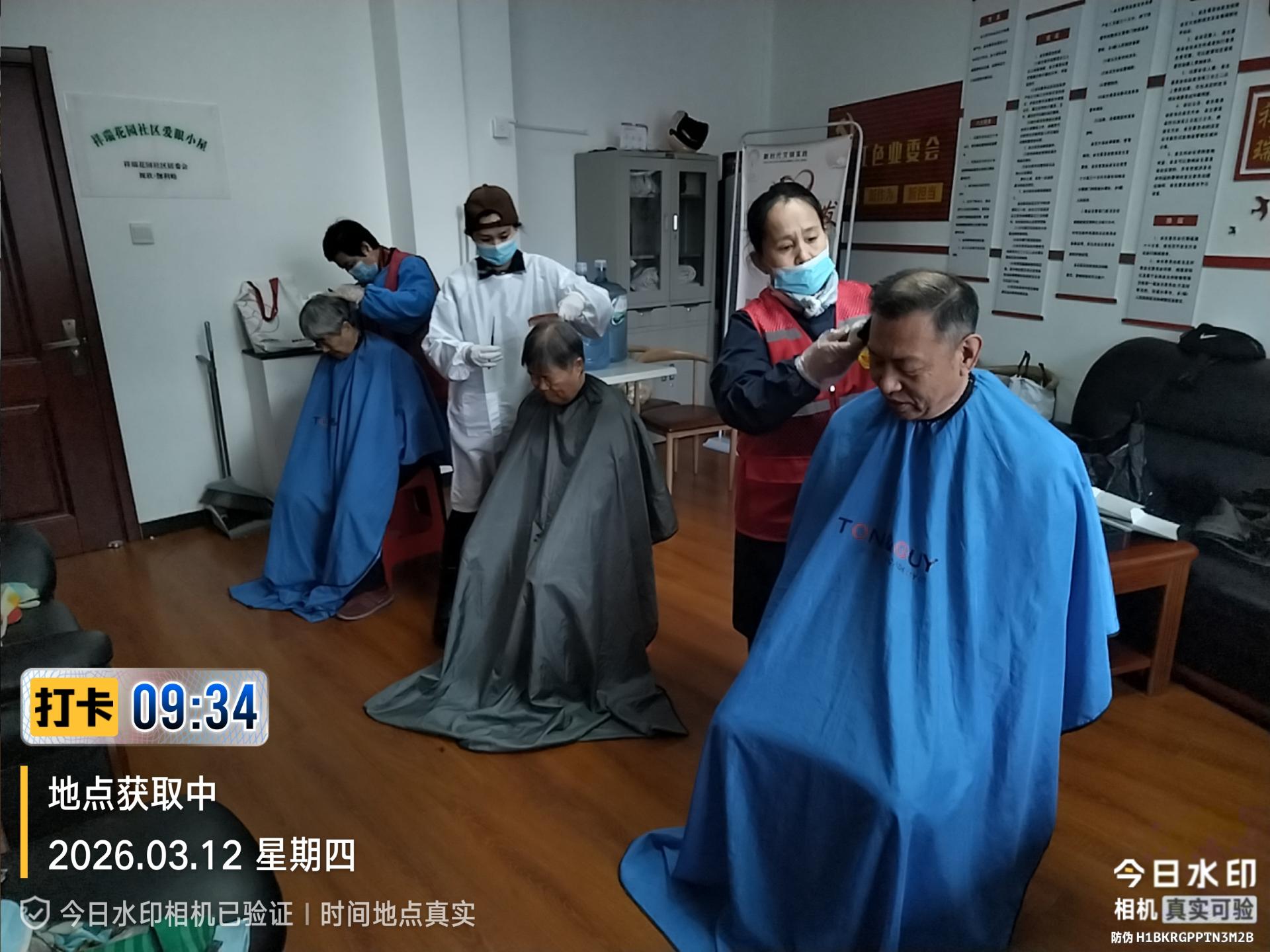 瀚榆志愿团队,在祥瑞花园文明实践站,公益活动为老年人理发