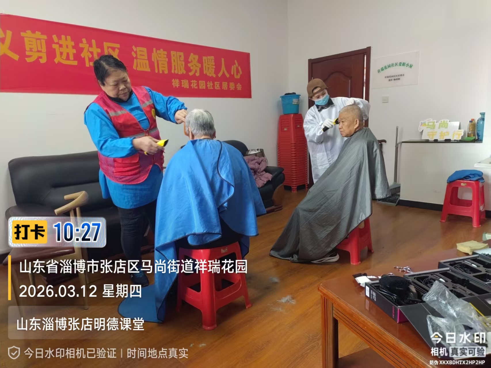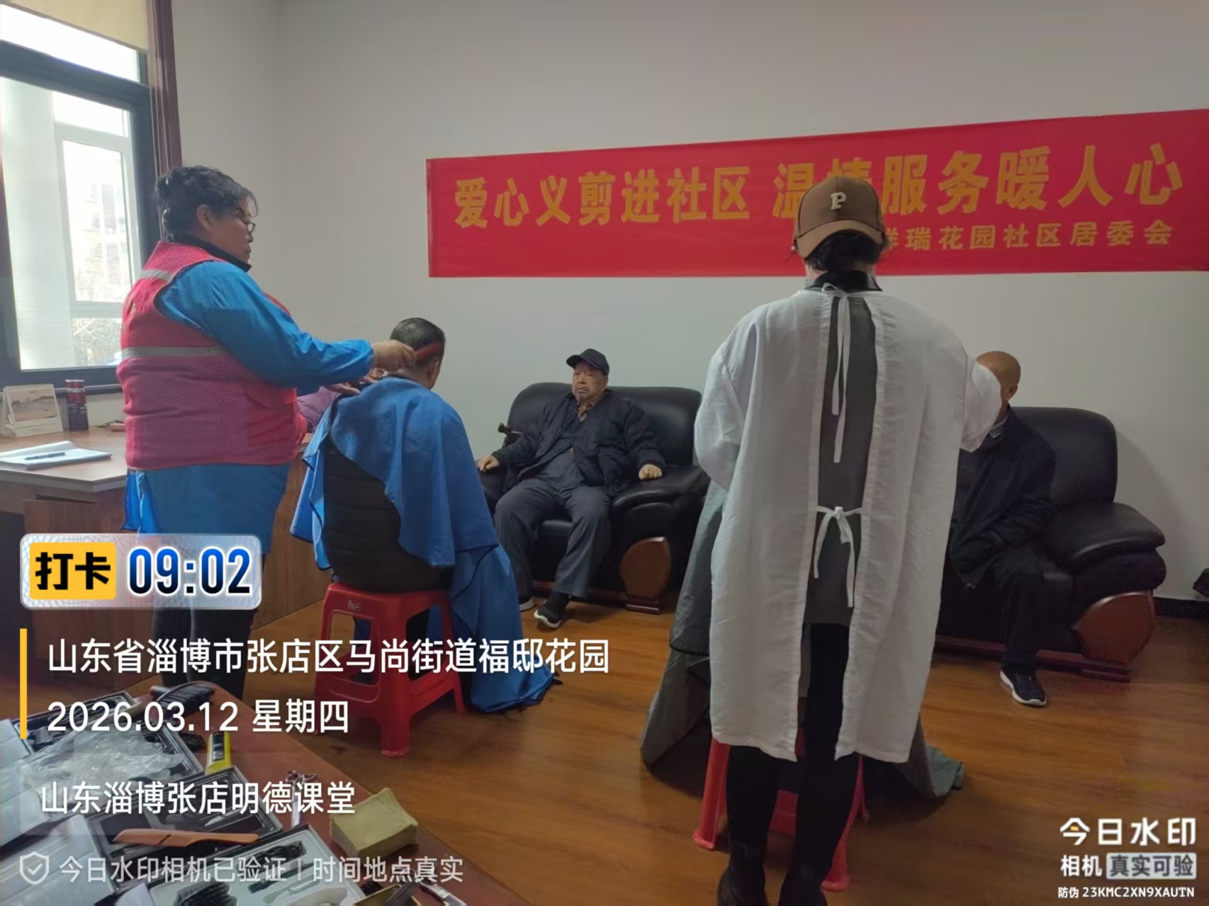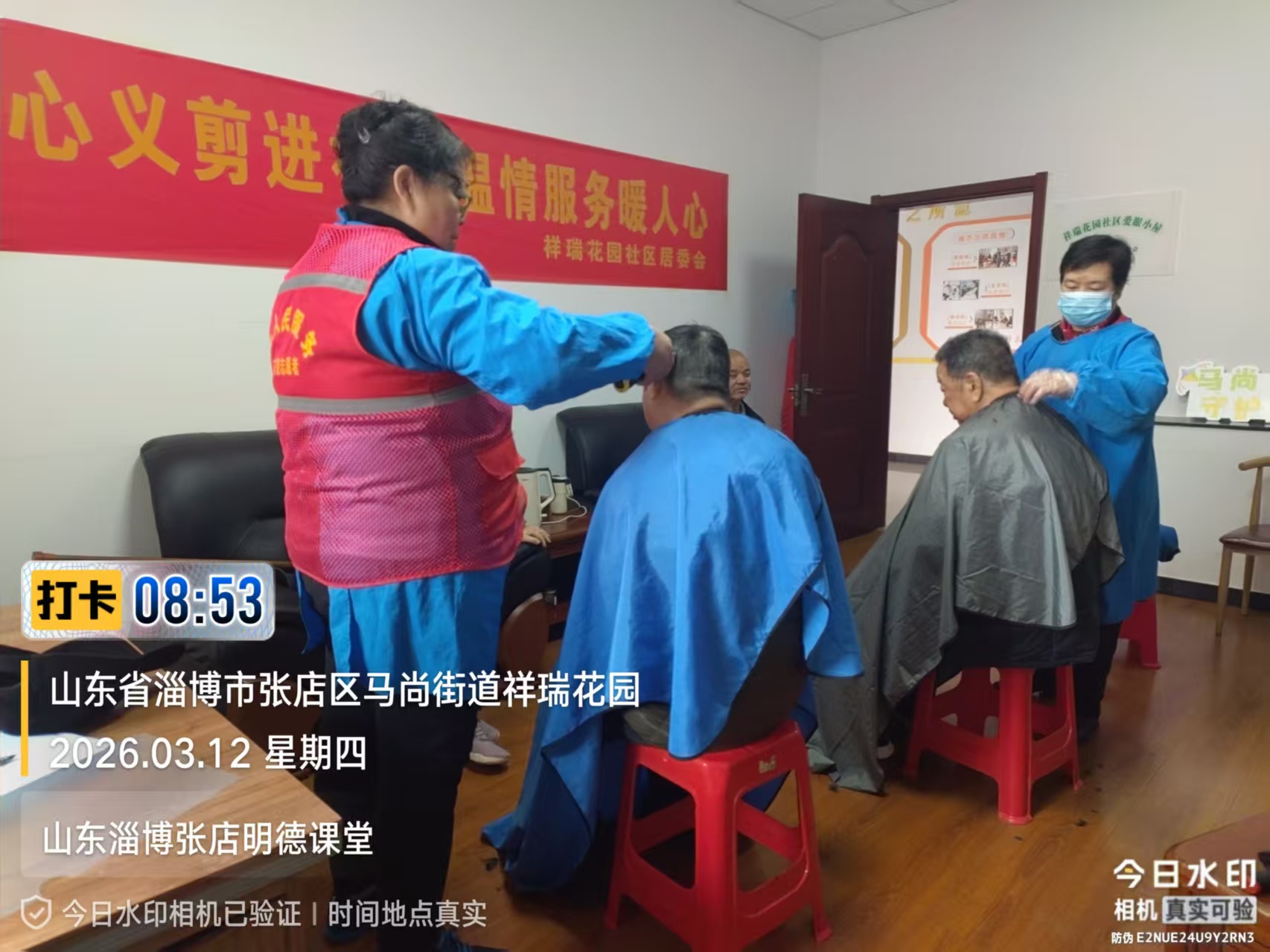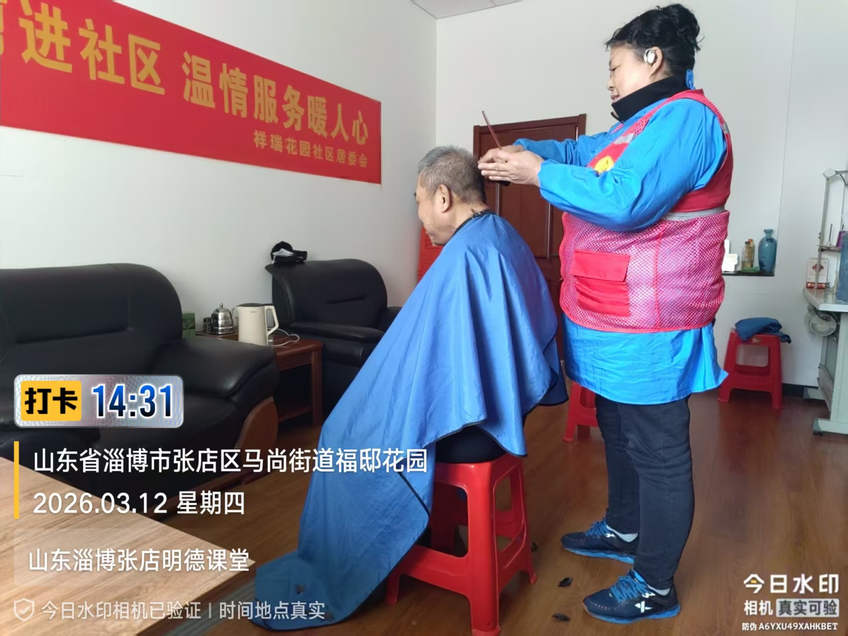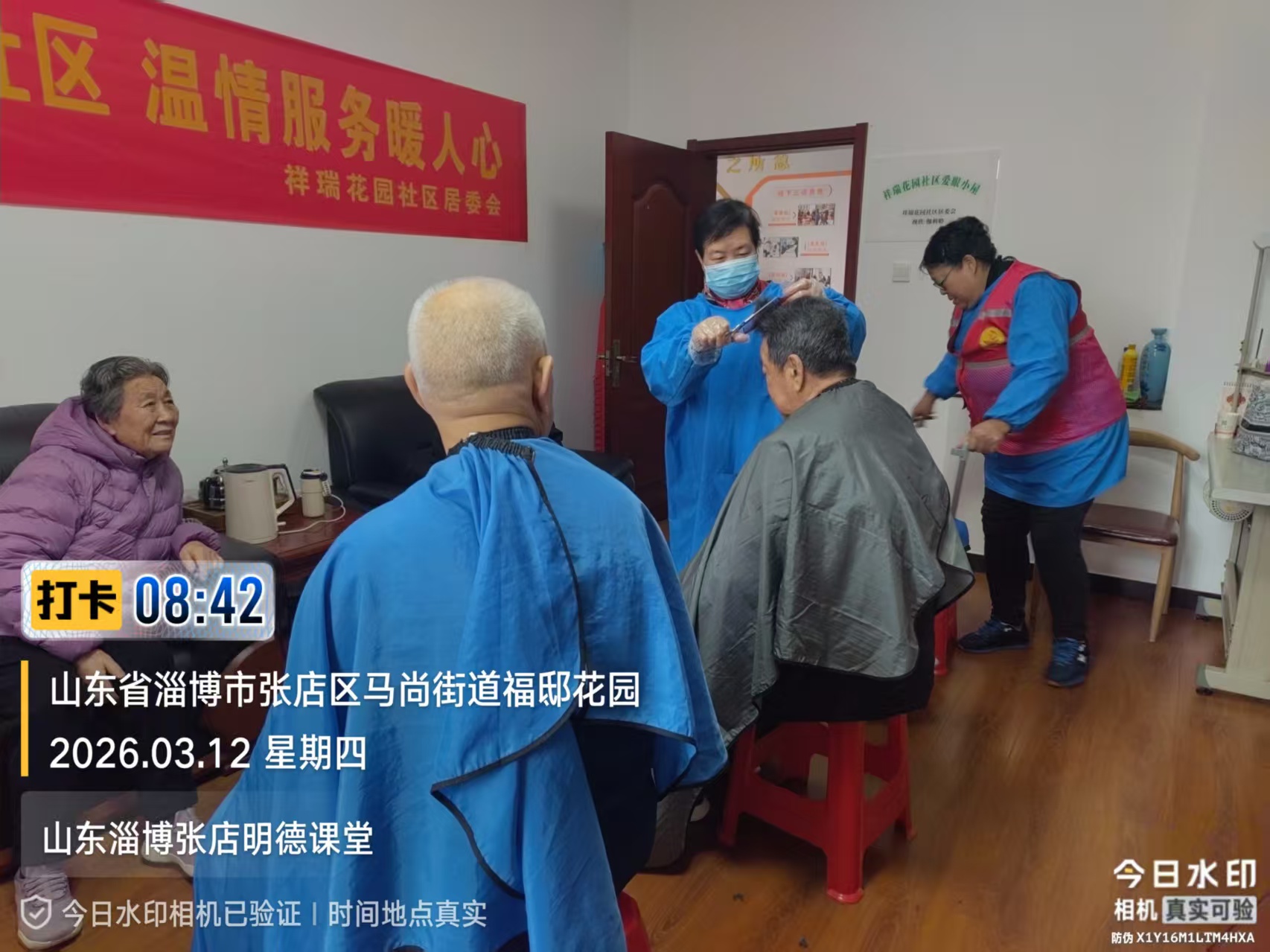 瀚榆志愿团队,在祥瑞花园文明实践站,公益活动为老年人理发