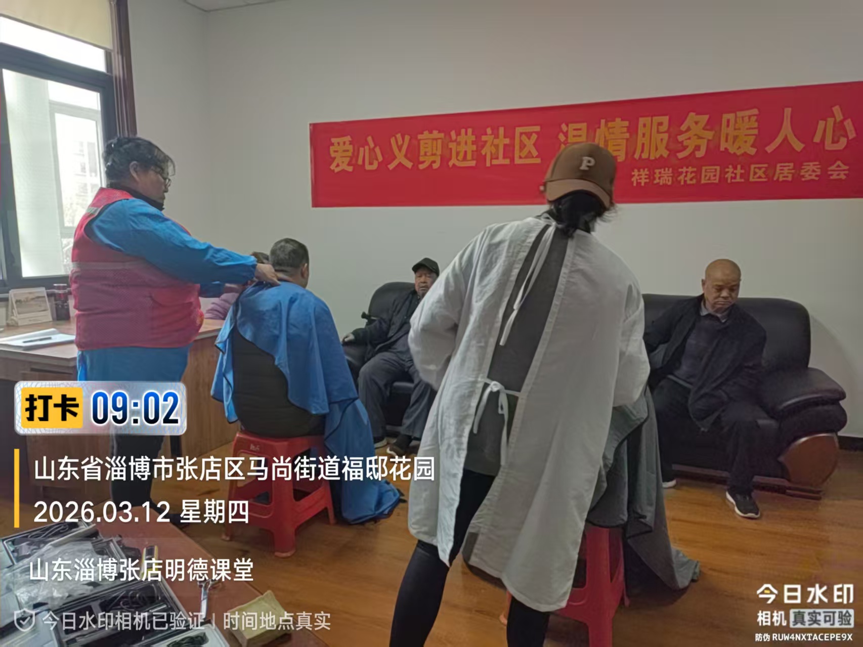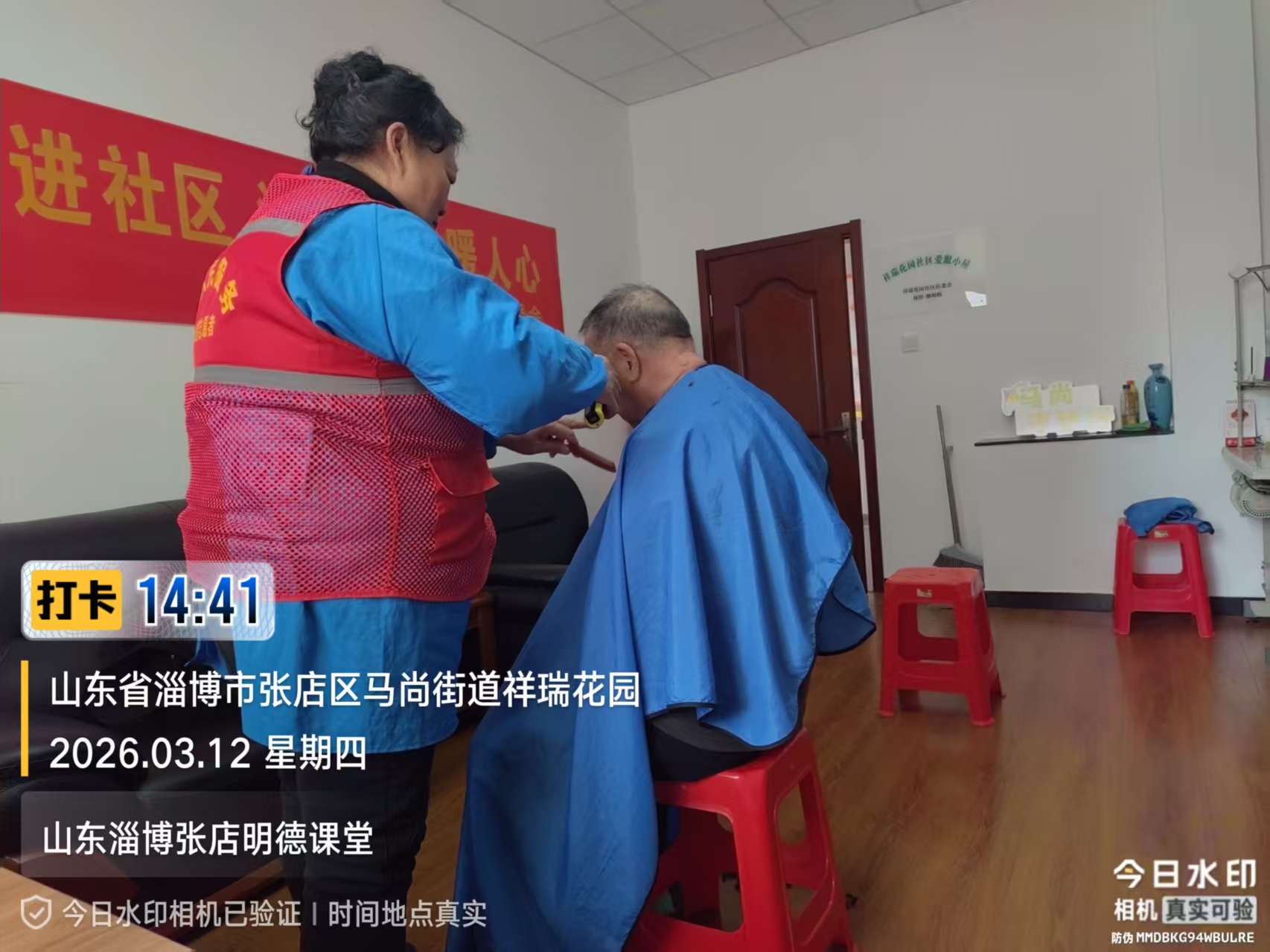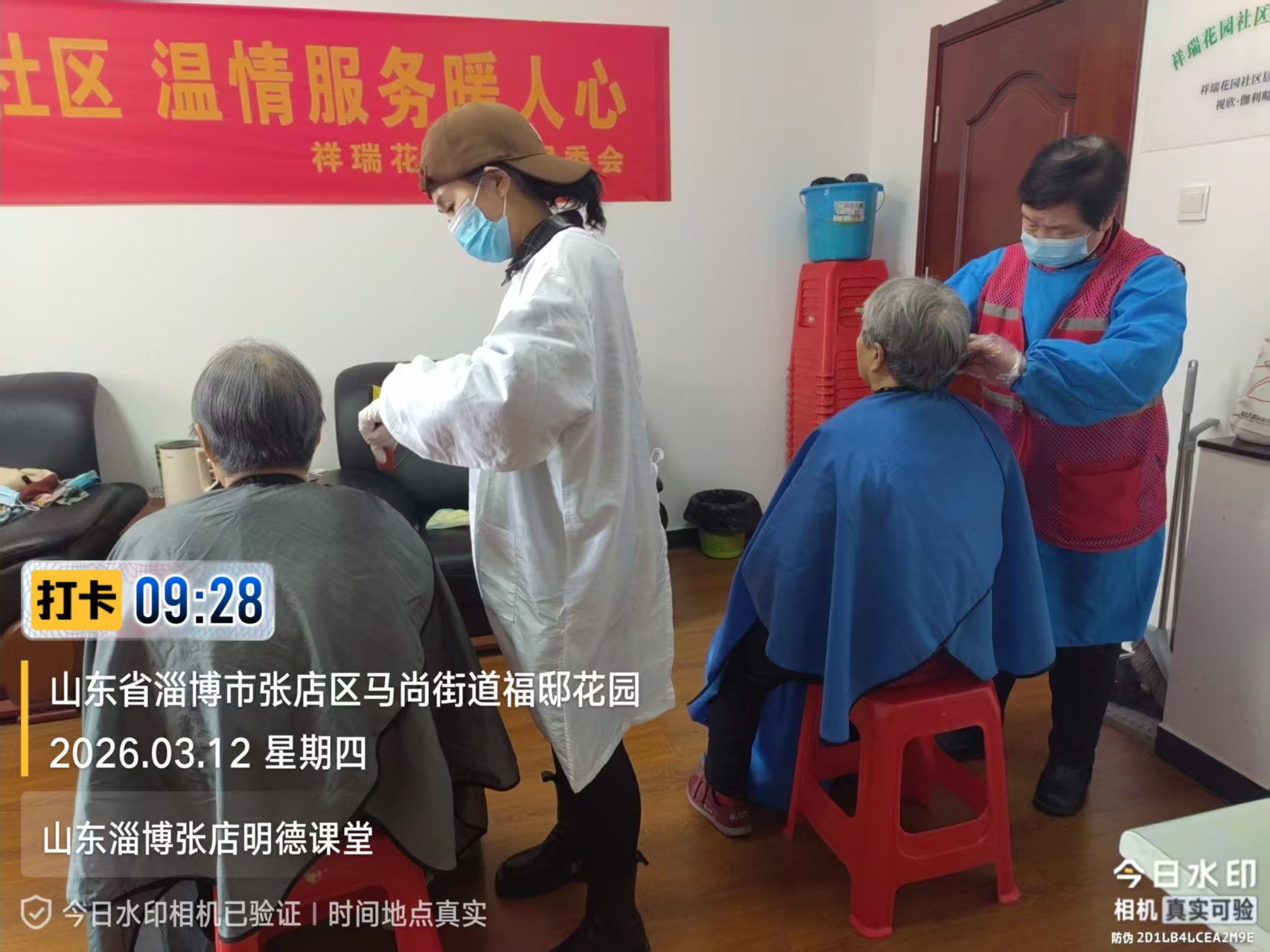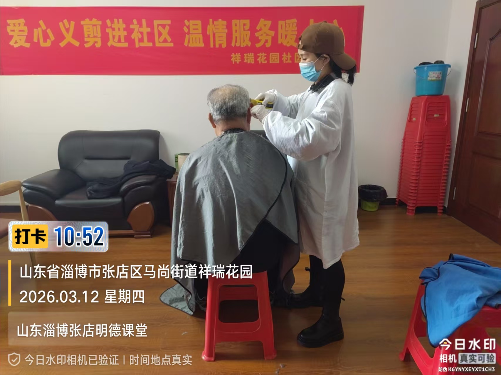 瀚榆志愿团队,在祥瑞花园文明实践站,公益活动为老年人理发