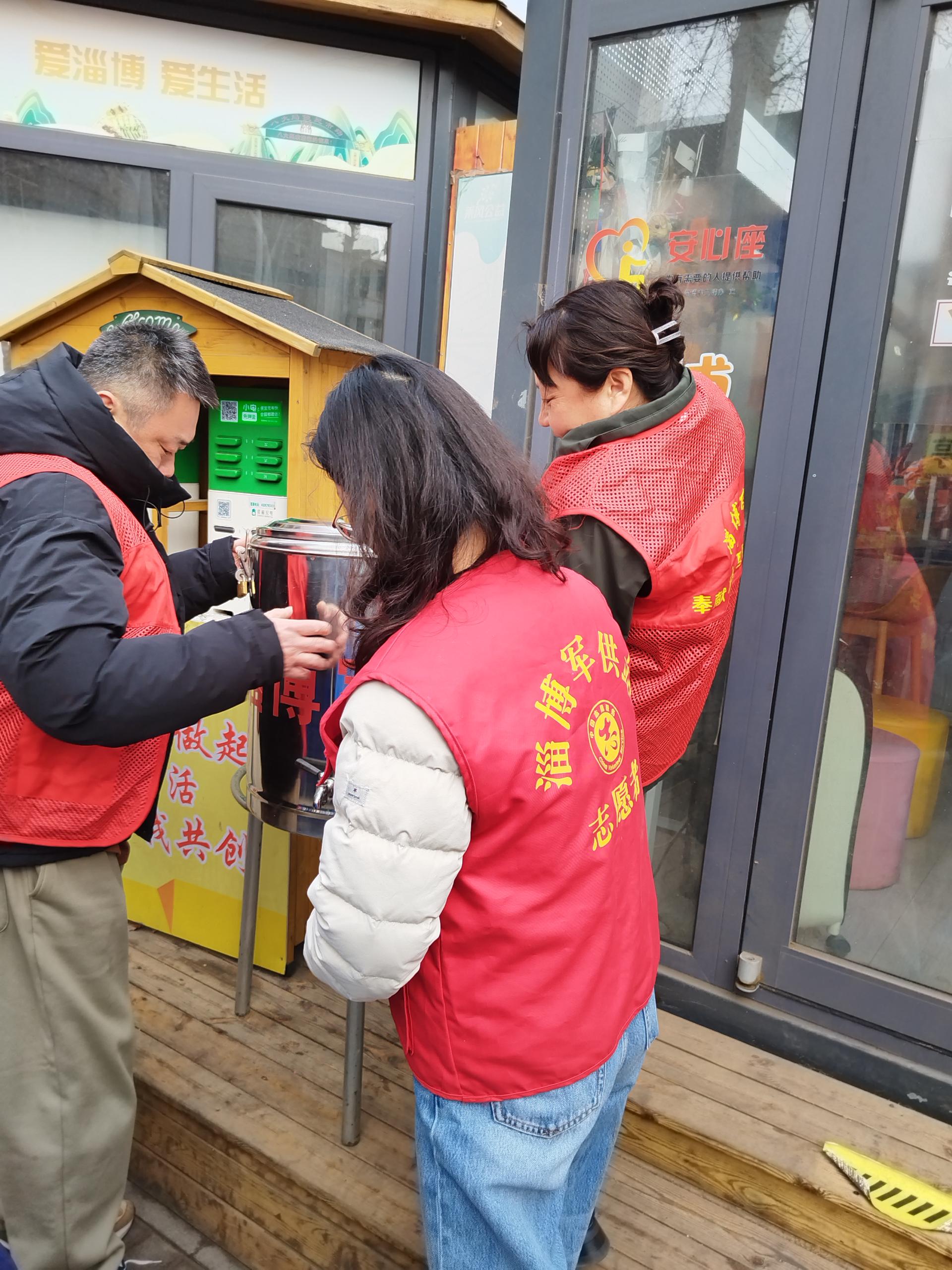 组织志愿者到八大局市场南门麦田家助残小屋供应热水,为游客提供免费热水,助力残疾群体开展爱心义卖,奉献爱心。