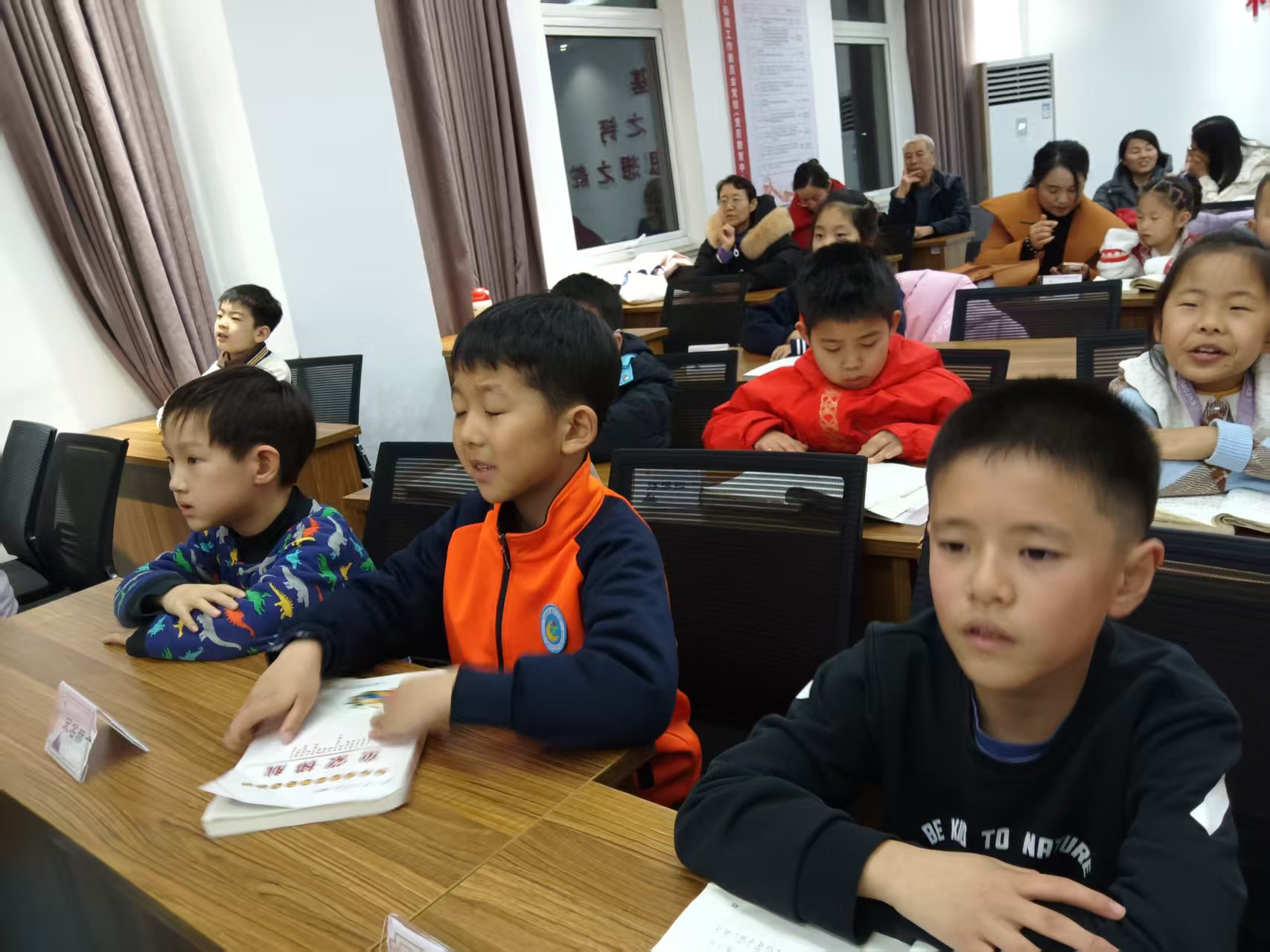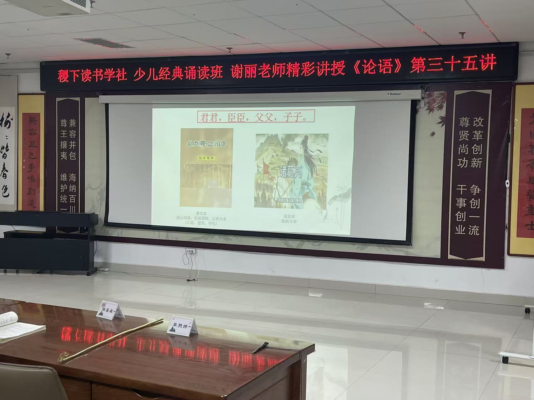 稷下读书学社少儿经典诵读班谢丽,刘丽艳老师分别讲授《论语》《大学》