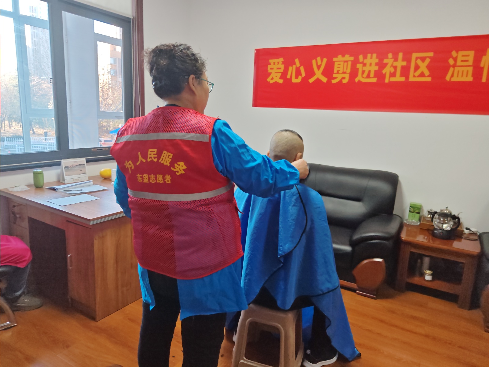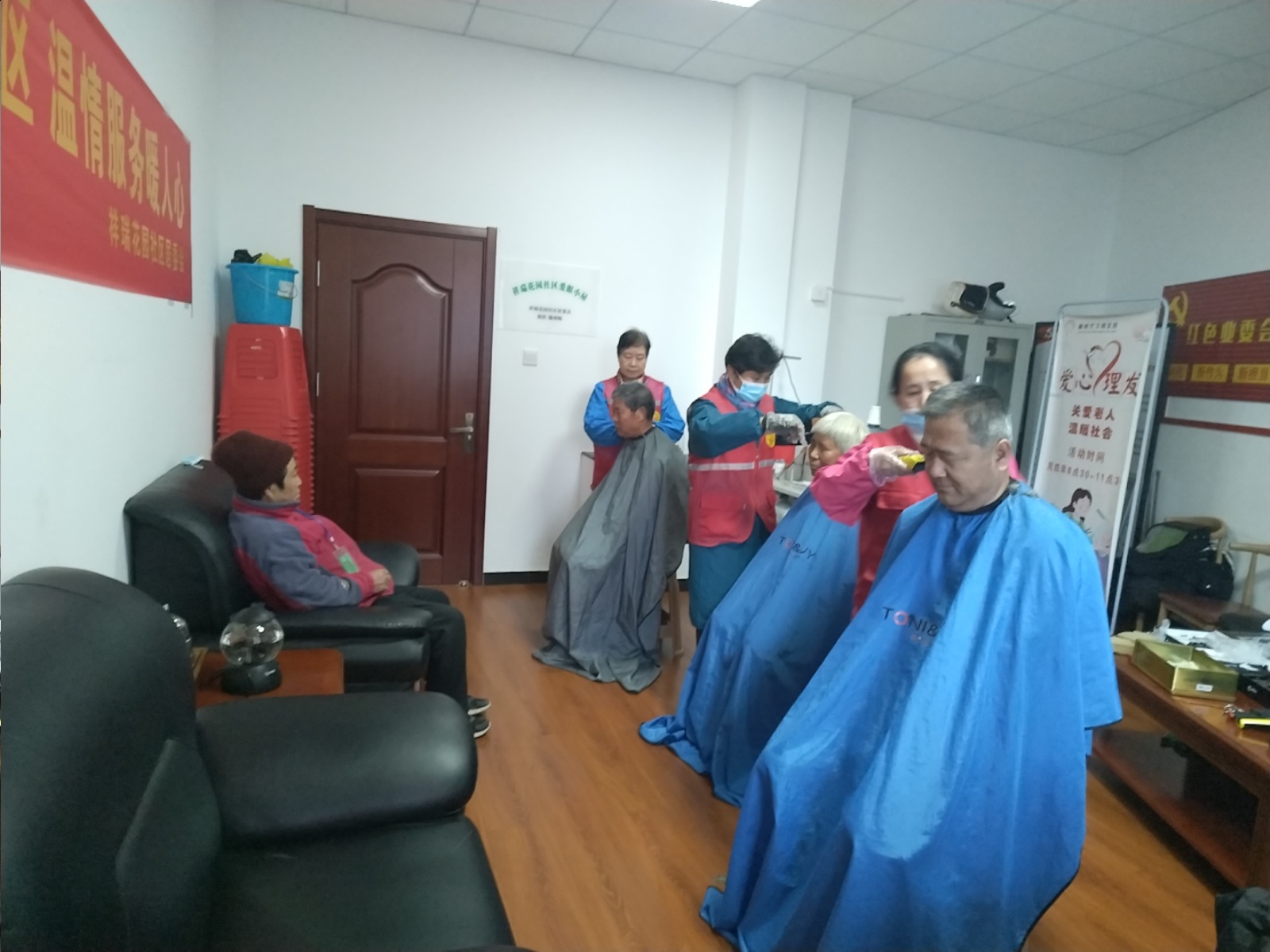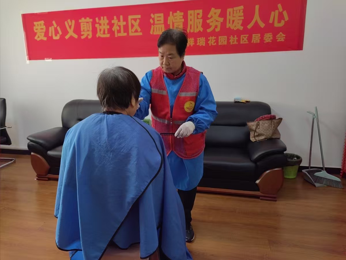 瀚榆志愿团队,在花园文明实践站公益活动,为老年人理发