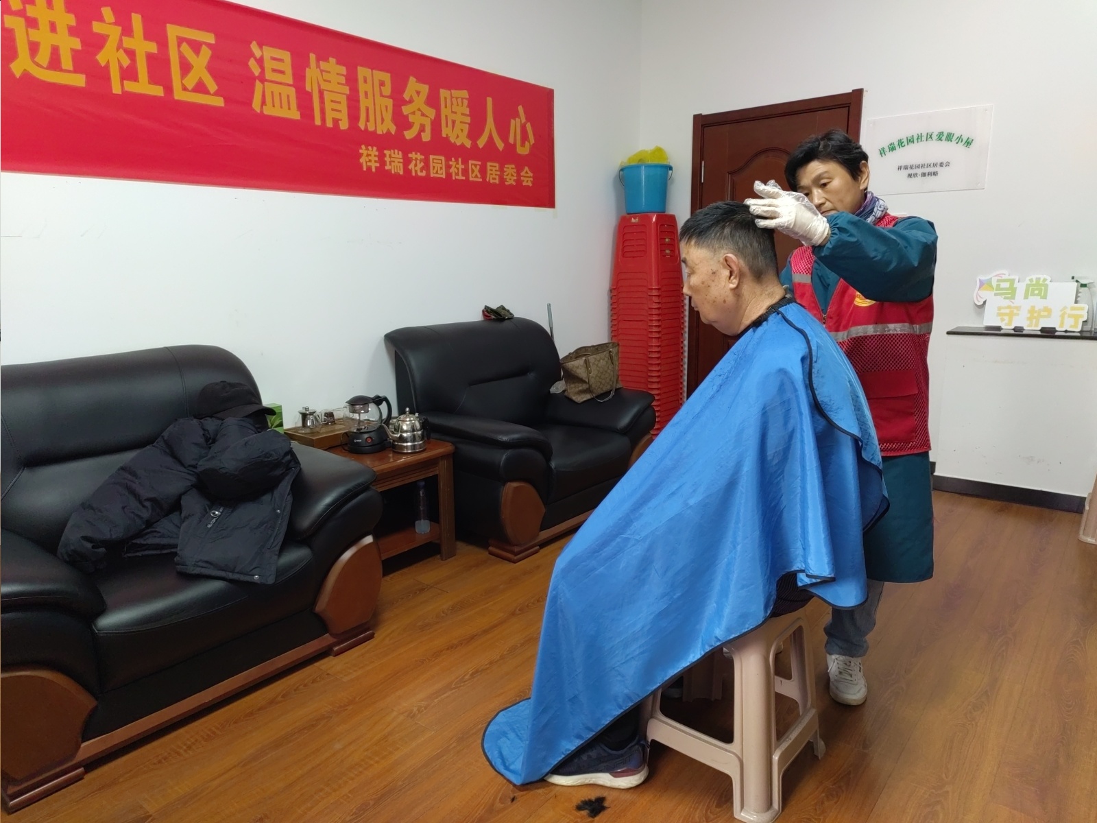 瀚榆志愿团队,在马尚街道祥瑞花园文明实践站公益活动老年人理发,你是做的不忘初心,牢记使命,脚踏实地,实事求是,全心全意为人民服务