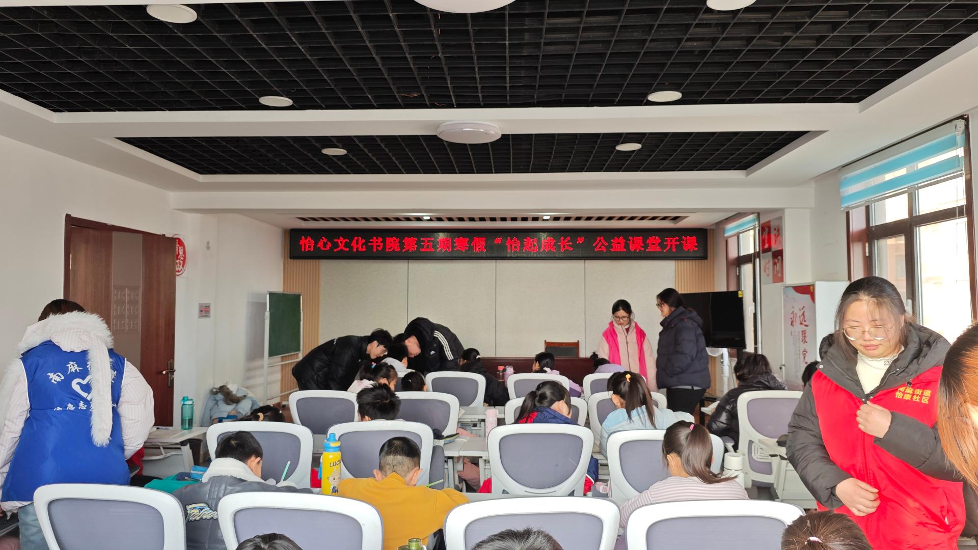 为解决社区青少年寒假看护难问题,招募志愿者,每天上午7.30-12点,下午1点-6点监督社区青少年写作业,并开展多种活动,