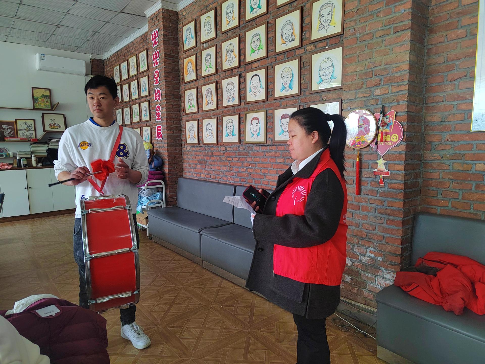 3月18日下午,淄博师专附属幼儿园走进憨兜家园进行军鼓支教活动