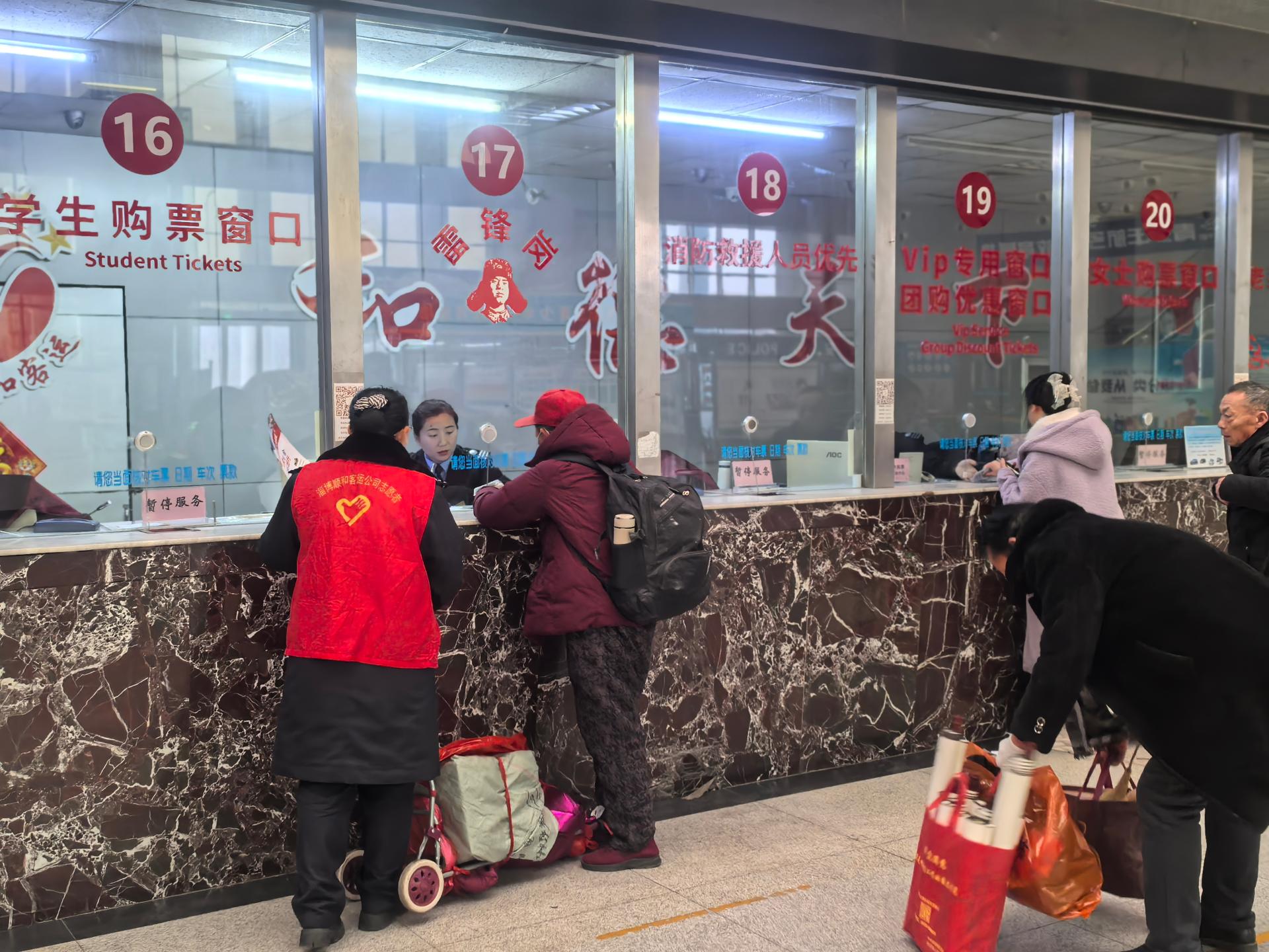 为深入学习贯彻关于志愿服务重要指示精神,大力弘扬社会主义核心价值观与“奉献、友爱、互助、进步”的志愿精神,助力打造淄博“志愿之城”,淄博顺和客运公司、淄博汽车总站志愿服务队开展“春运暖程相伴 文明服务同行” 志愿服务活动。活动期间,志愿者统一身着志愿服务马甲,依照统一部署分工值守,以和蔼态度、文明用语、热情细致、周到贴心的标准开展服务。重点为旅客提供进站引导、购票咨询、检票候车、秩序维护等全流程保障;主动靠前帮扶老弱病残孕幼等特殊群体,提供爱心帮扶、行李协助、优先通行等暖心照护;耐心解答旅客问询,积极宣传文明乘车、安全出行知识。以实际行动践行"我为群众办实事”,为春运旅途保驾护航。
