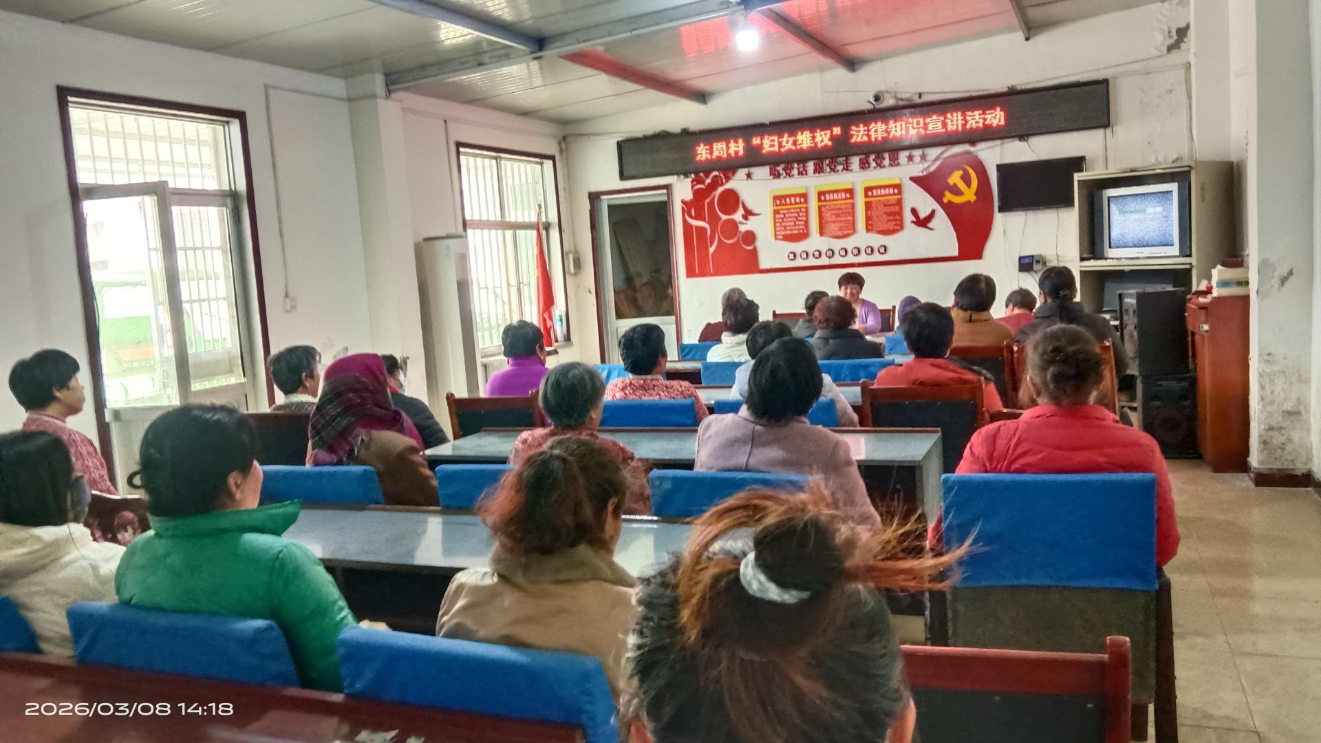 东周村村民委会组织志愿者开展三月份妇女维权法律知识宣。让更多妇女了解法律,用法律手段维护自己合法权益。