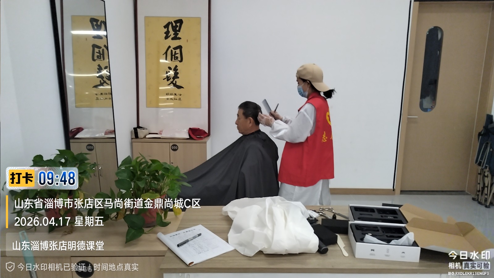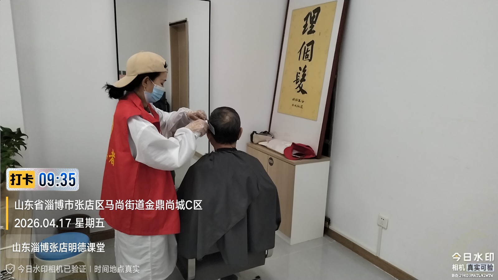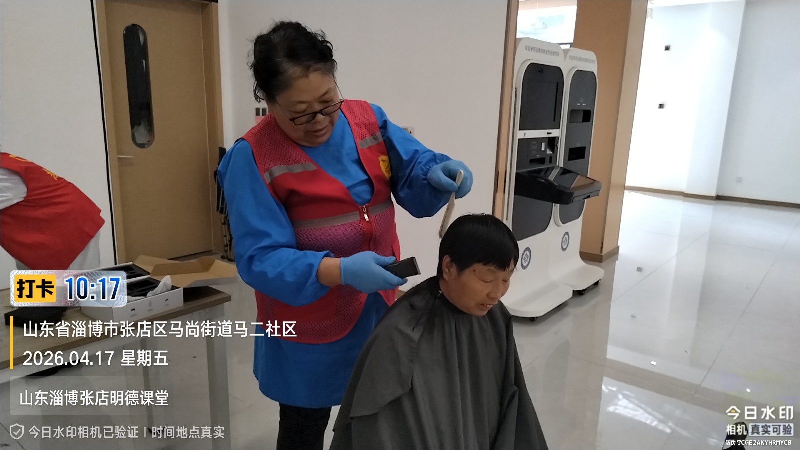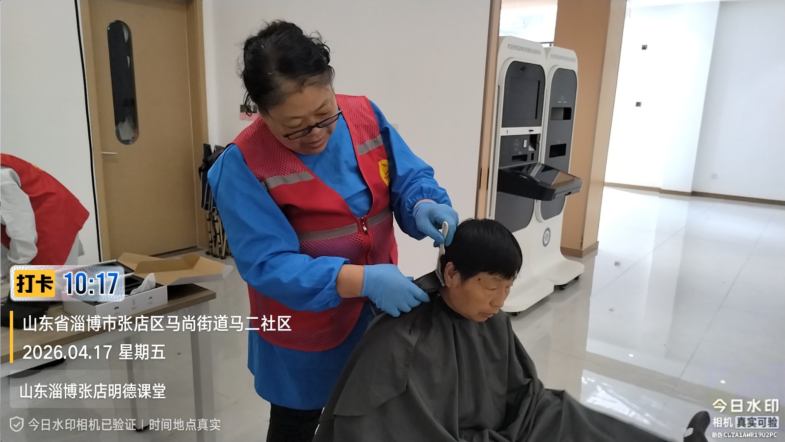 瀚榆志愿团队,在马尚街道尚城社区党群服务中心,公益活动为老年人理发,不忘初心,牢记使命,脚踏实地,实事求是,全心全意为人民服务