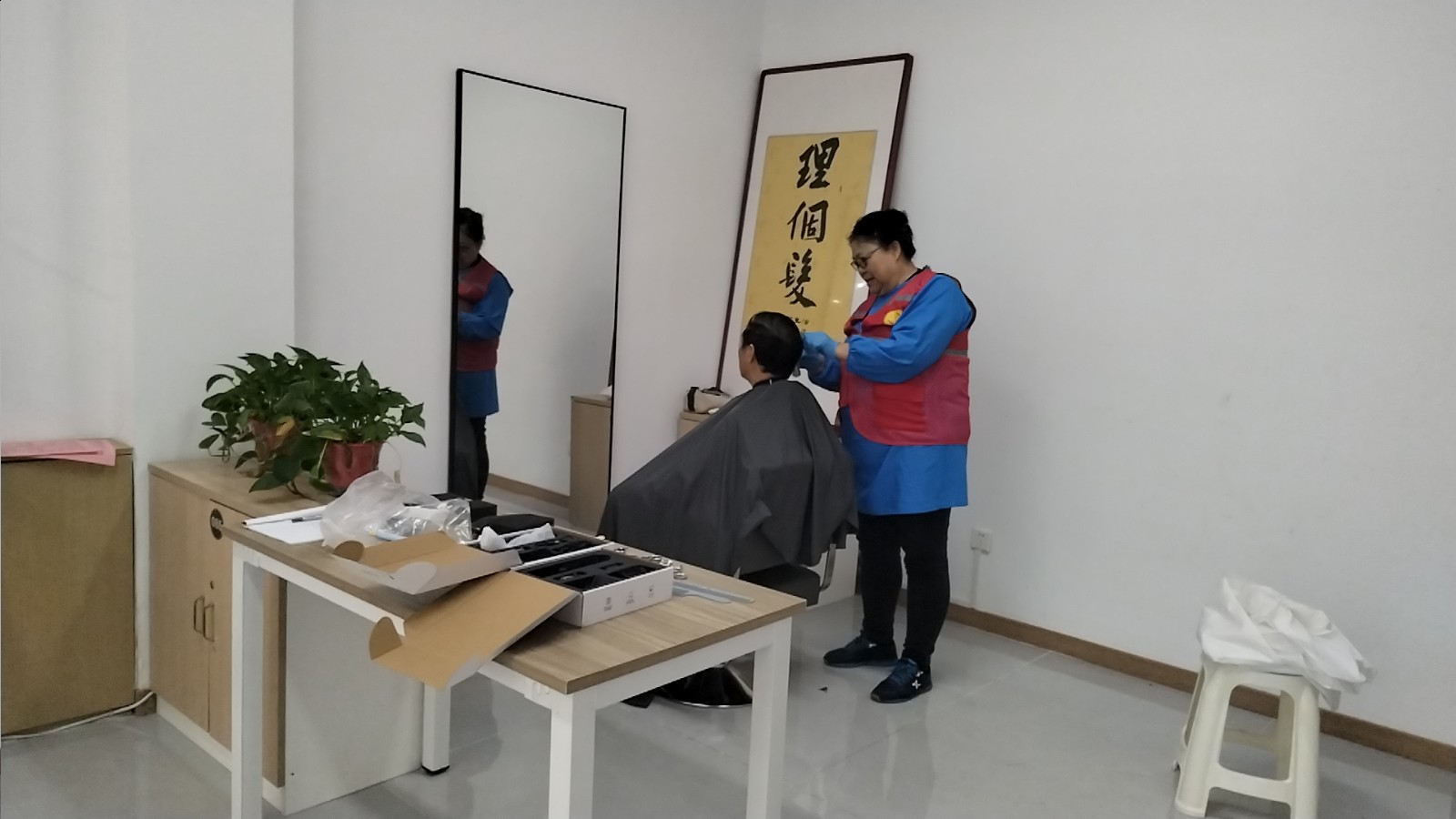 瀚榆志愿团队,在城社区文明实践站,公益活动为老年人理发