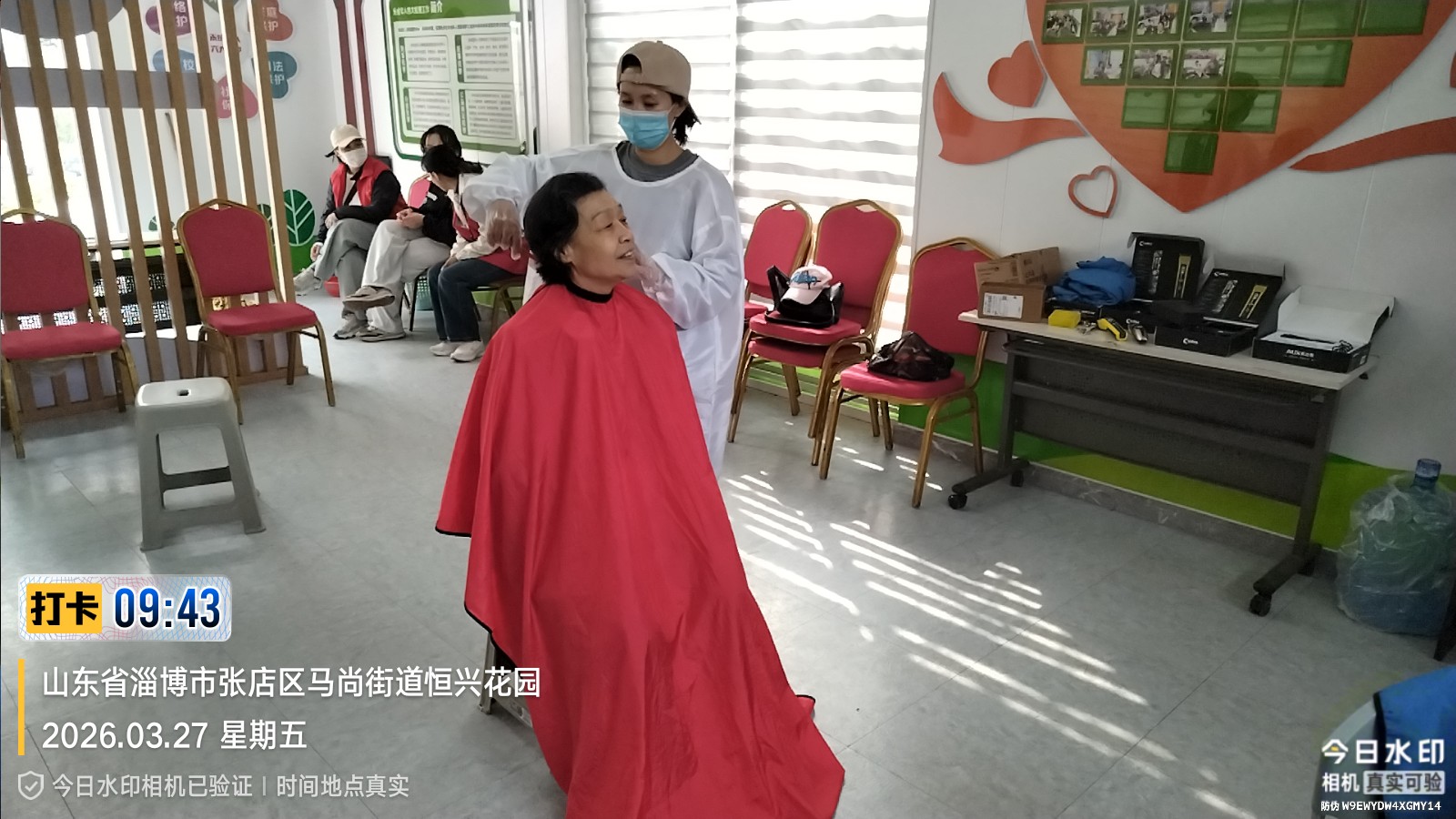 瀚榆志愿团队,在马尚街道恒社区公益活动为老年人理发