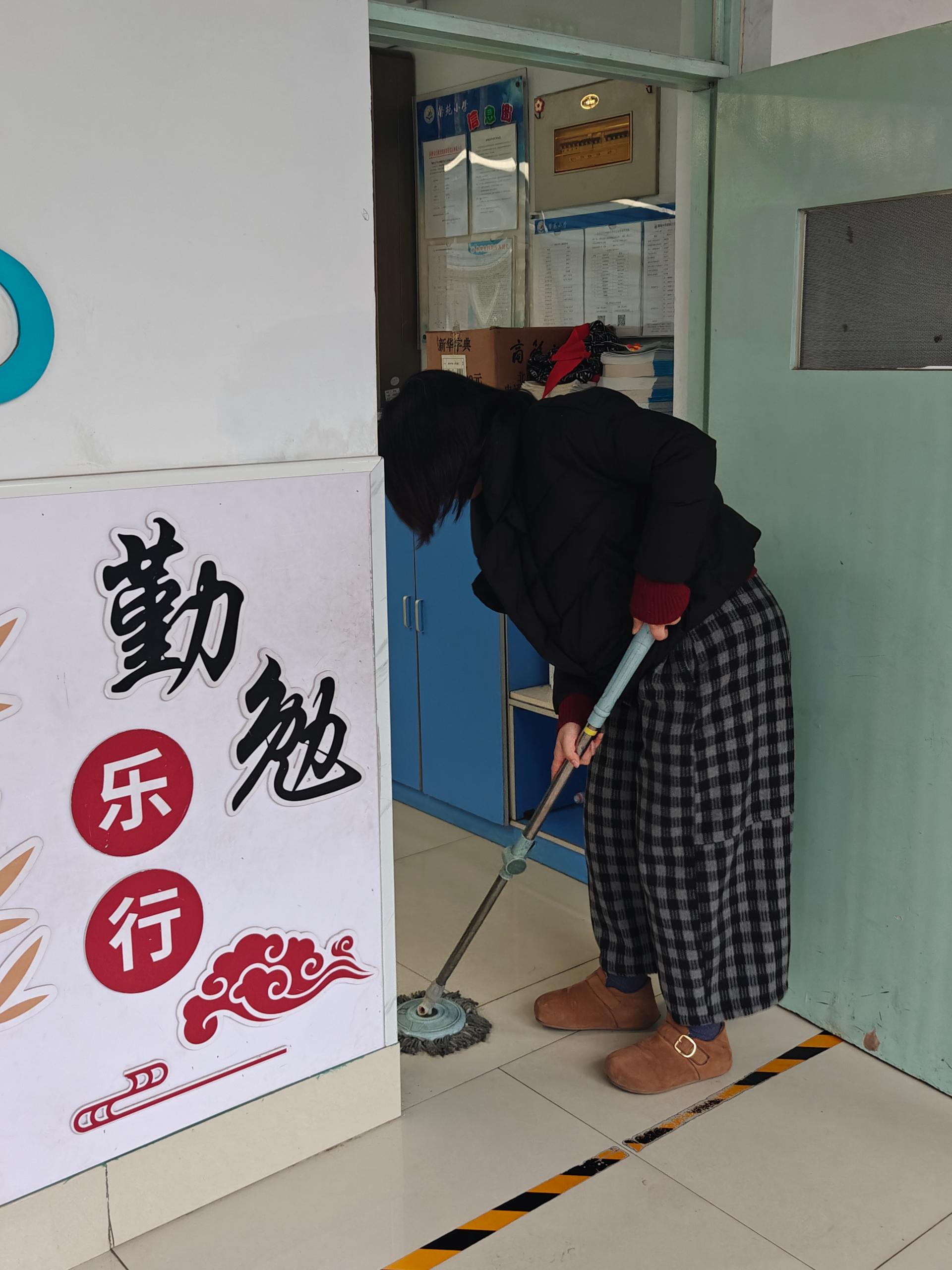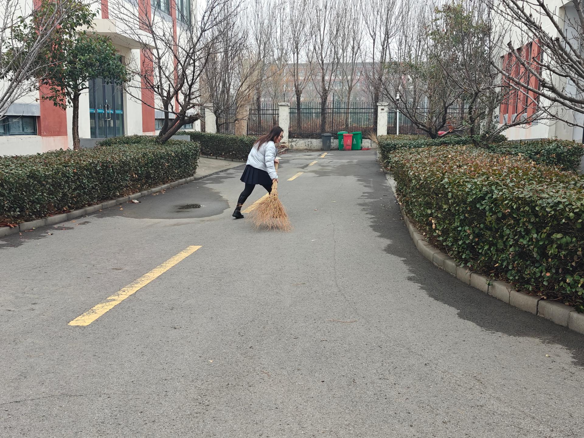 分工如下:各班班主任为“组长”,带领其余2名老师先打扫卫生区和“绿化带”,然后打扫教室卫生。 党员教师着党员义工服,老师们着志愿服务红马甲
