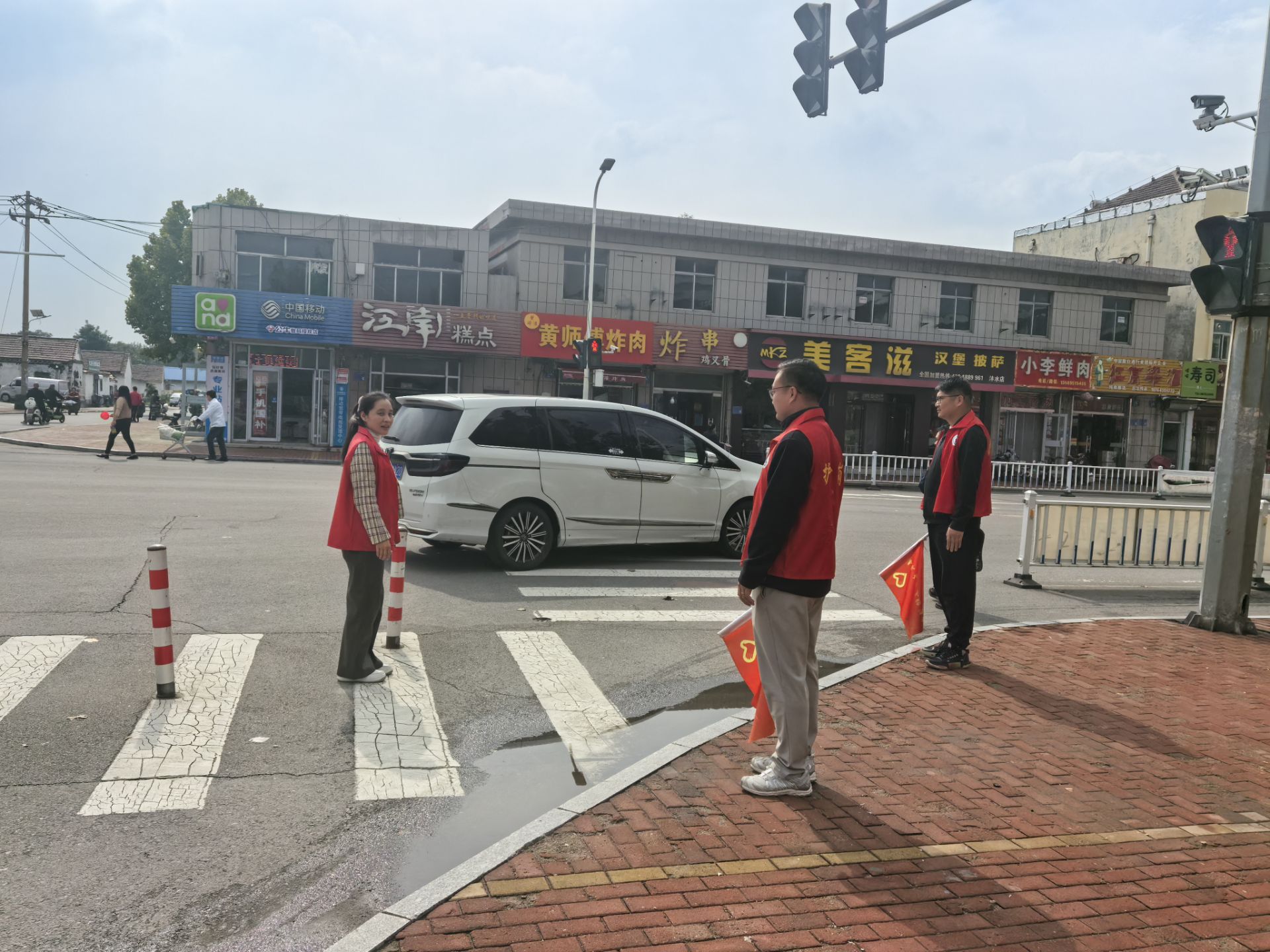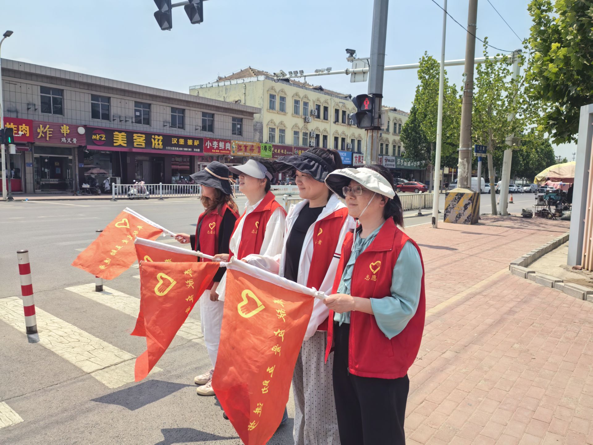 张店四中教师在校门口进行志愿服务活动,深刻践行志愿精神,提高学校文化建设及思想意识水平,践行雷锋精神。