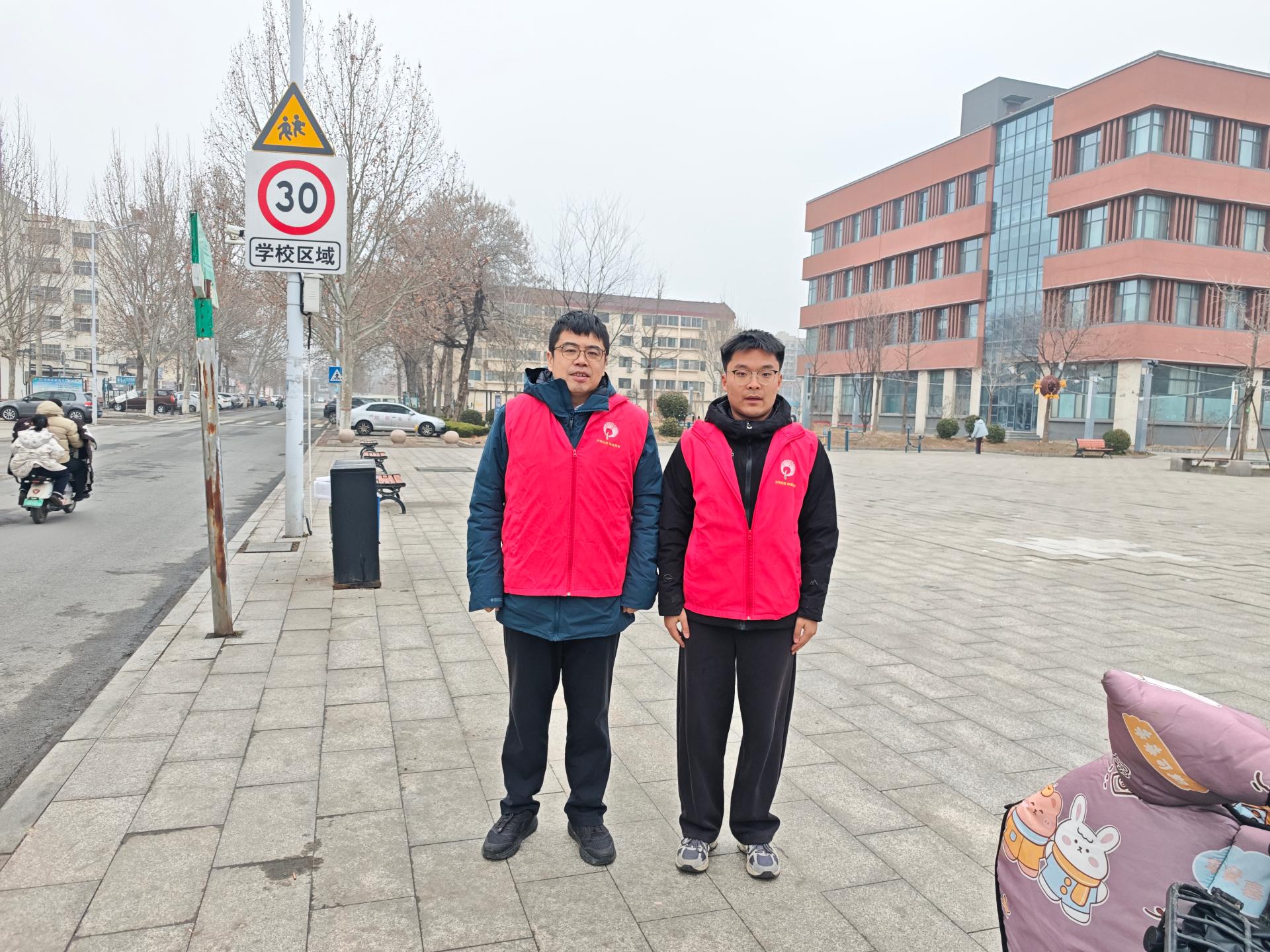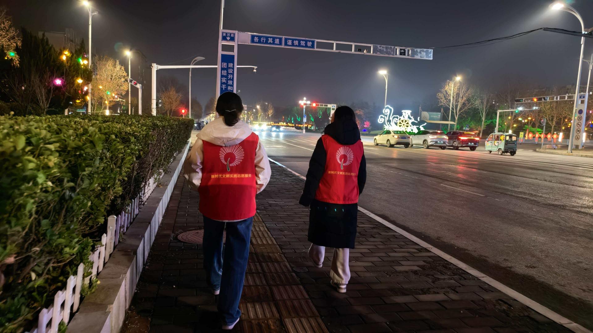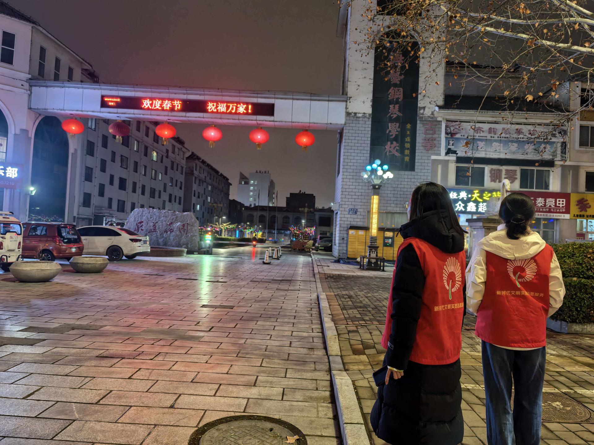 机关工委开展禁放烟花爆竹,守护碧水蓝天志愿服务活动,志愿者身穿红马甲,对辖区内的燃放烟花爆竹行为进行引导。