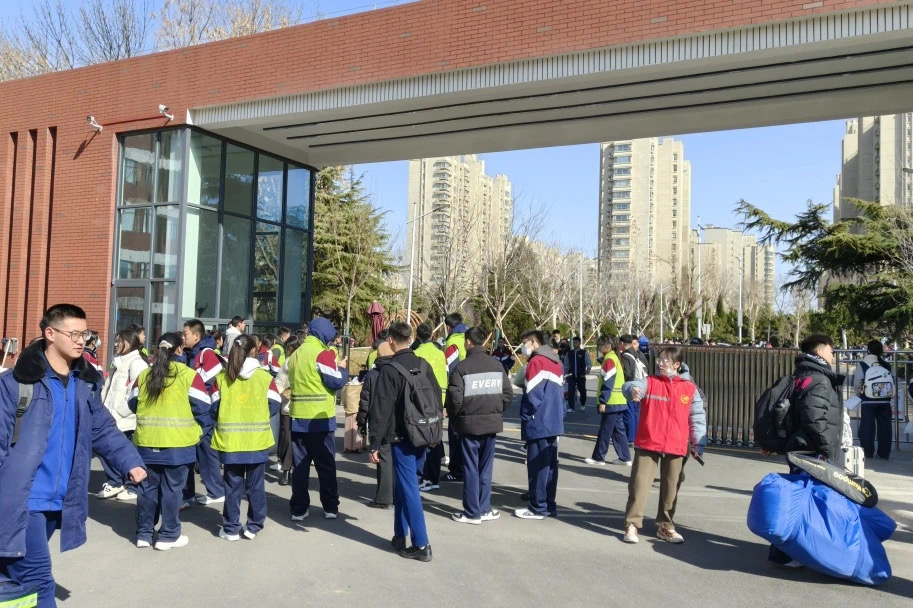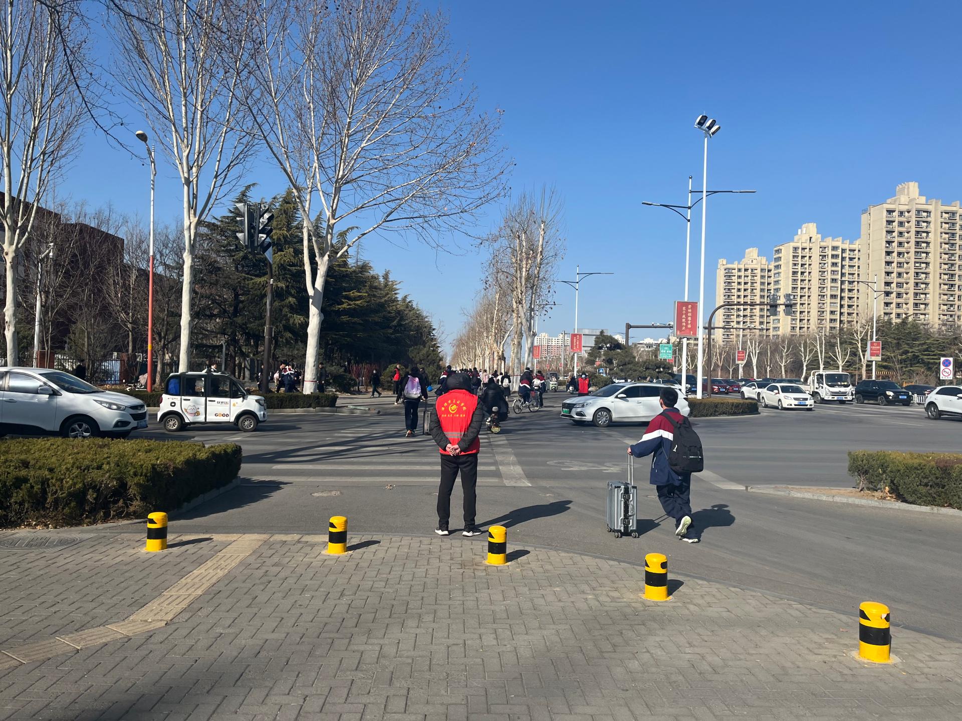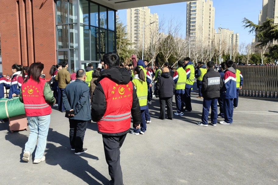 淄博市工业学校组织人事处、财务处、信息实训中心教师对学生返校提供交通疏导、心理辅导及帮助行李搬运志愿服务活动。