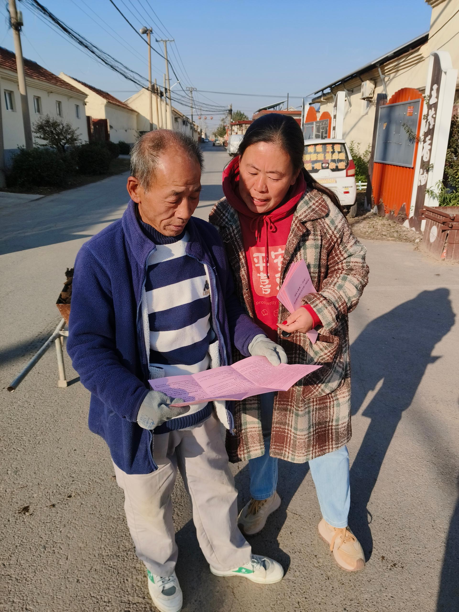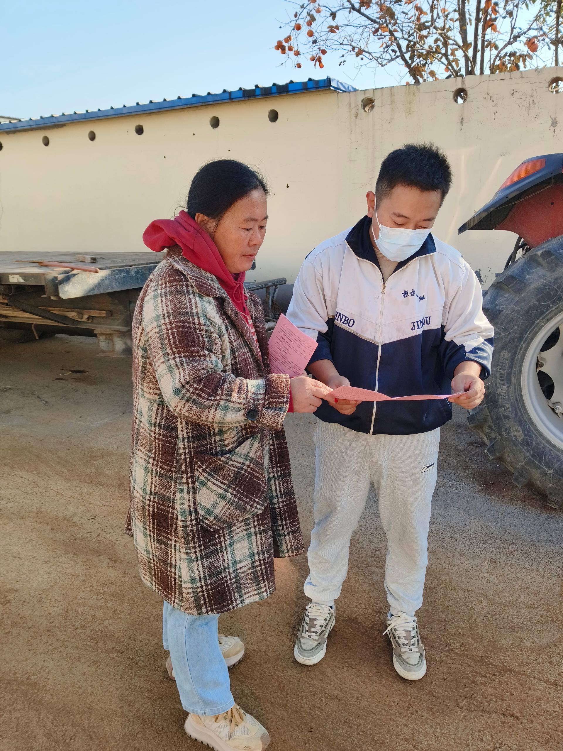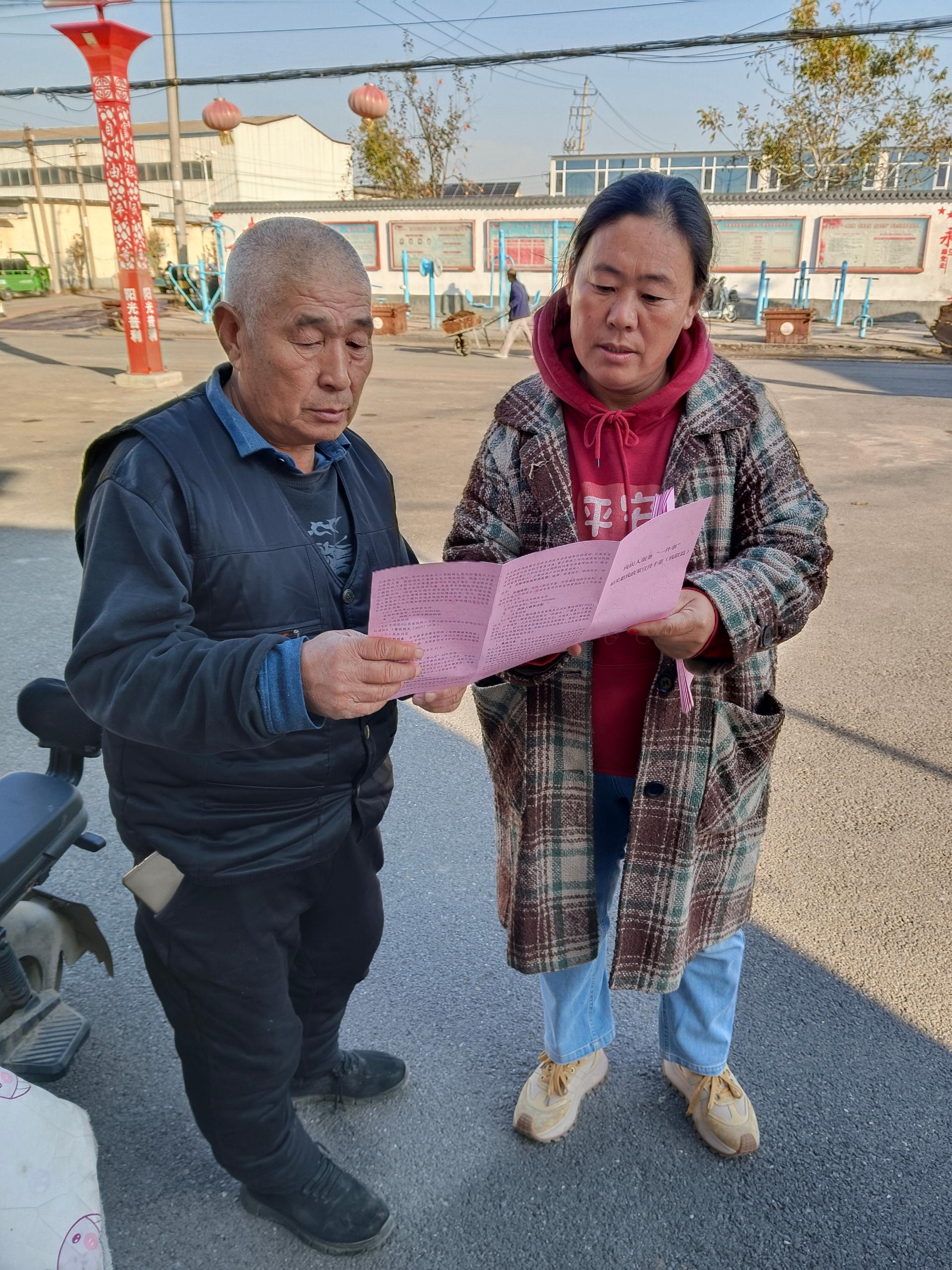 2025年11月18日,唐山镇王茂村新时代文明实践站组织志愿者下发残疾人惠残政策宣传册,进行讲解与宣传。