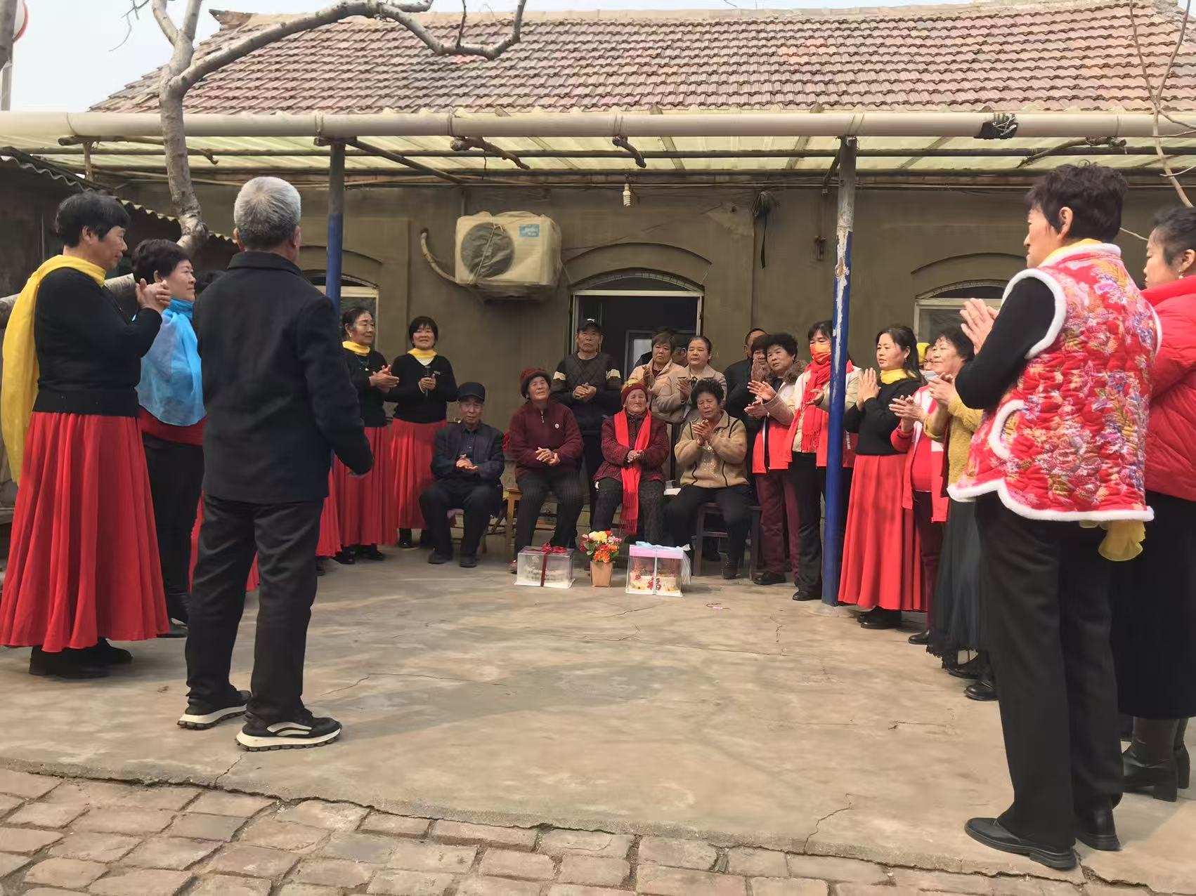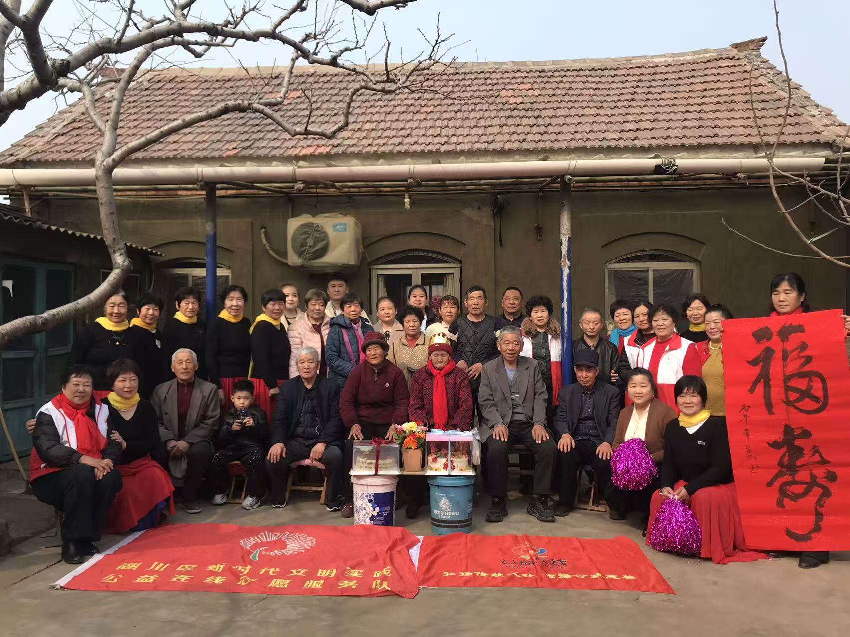 淄博市淄川区公益在线志愿者服务队为九十岁以上老人祝寿第六年第二站,为老人送寿糕,红围巾,大红福寿和精彩文艺节目,尊老敬老我我一直在路上。