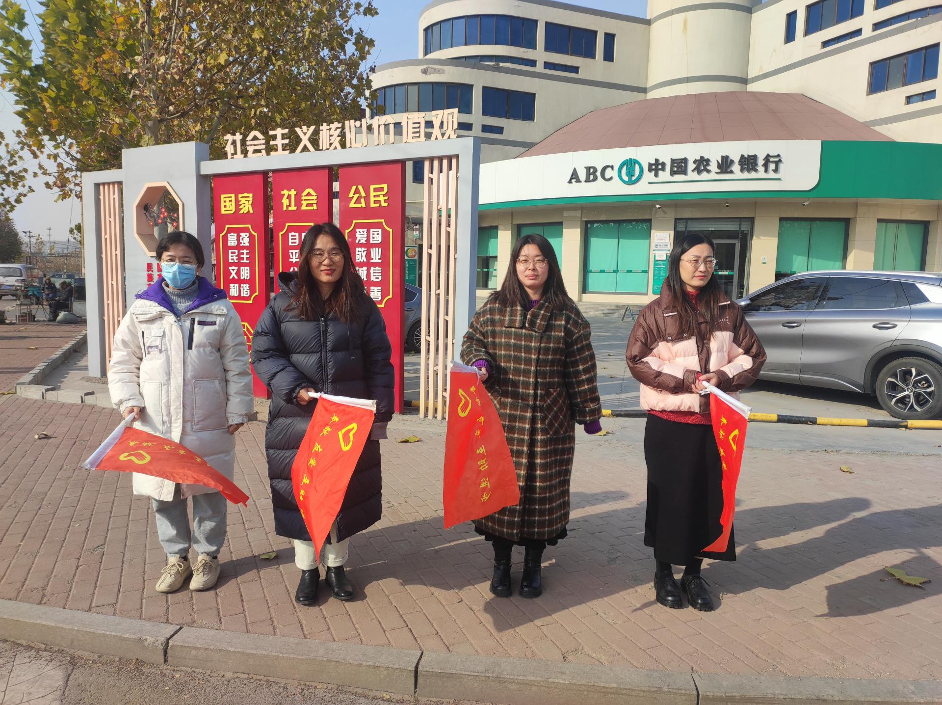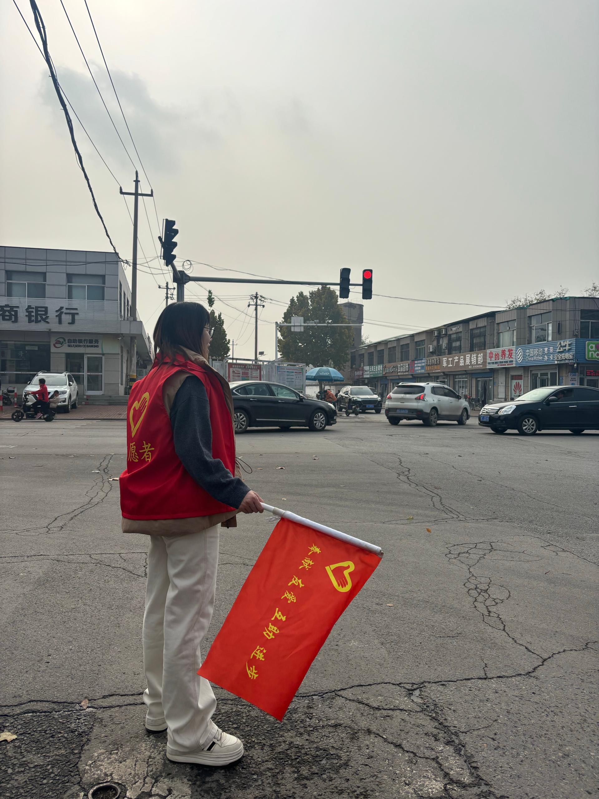 张店四中教师在校门口进行志愿服务活动,深刻践行志愿精神,提高学校文化建设及思想意识水平,践行雷锋精神。