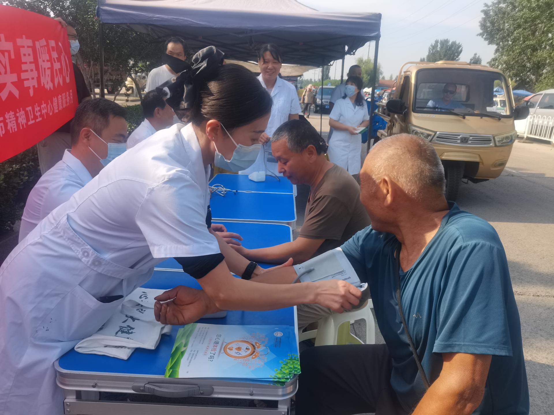 为推动优质医疗资源下沉,淄博市精神卫生中心离退休党支部和女三病区于2025年8月19日中国医师节到来之际组织退休返聘专家、女三病区专家和护理人员在淄川西关大集开展心理健康义诊活动。