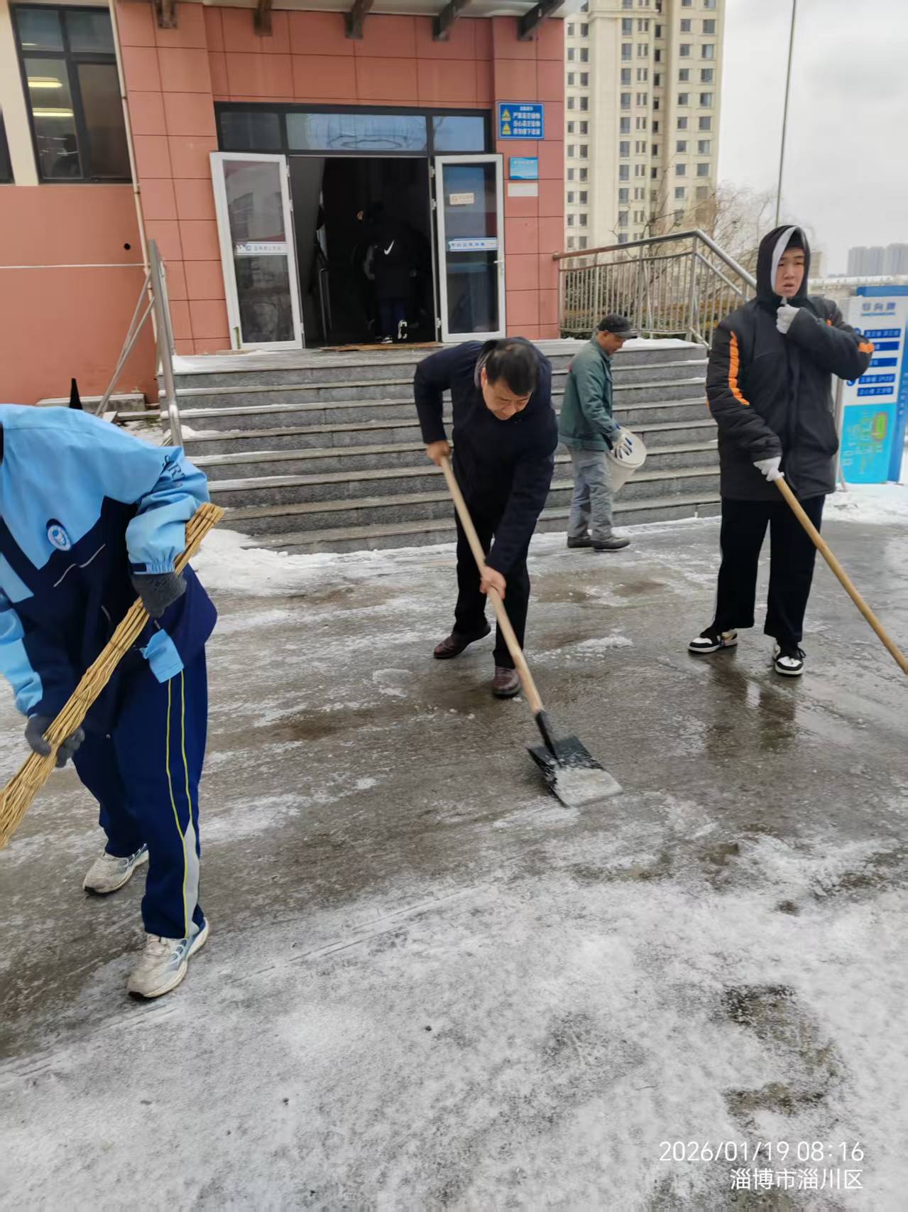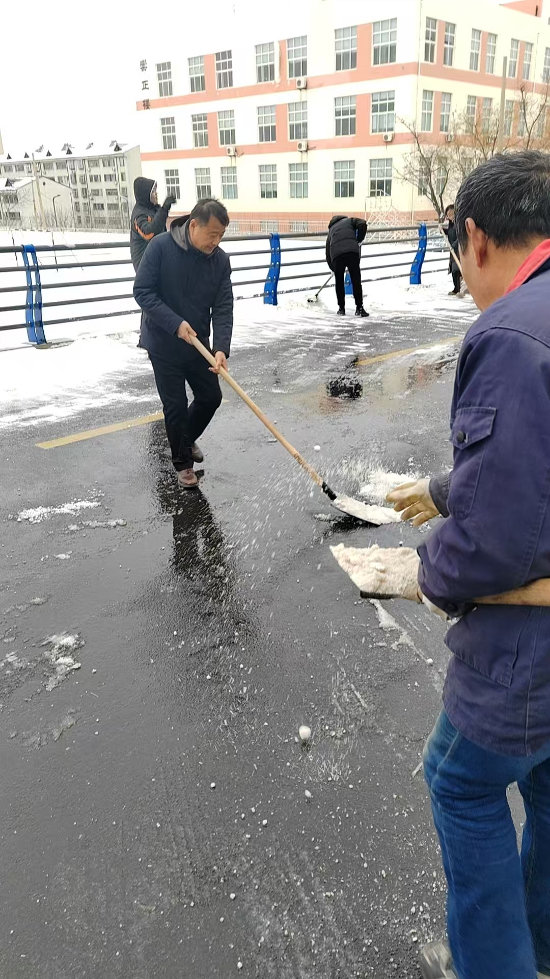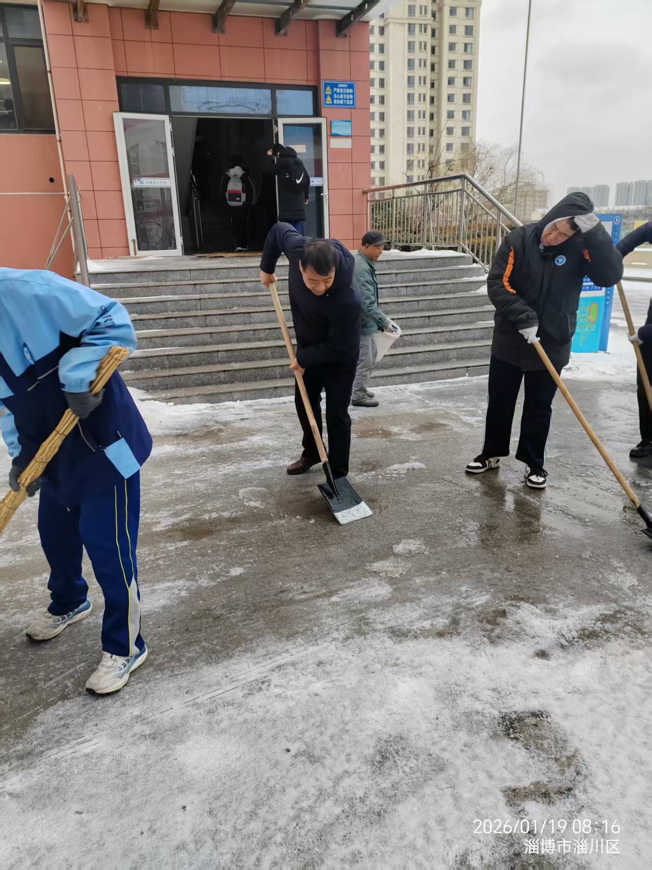 淄博理工学校清扫路面积雪,保障师生安全通行