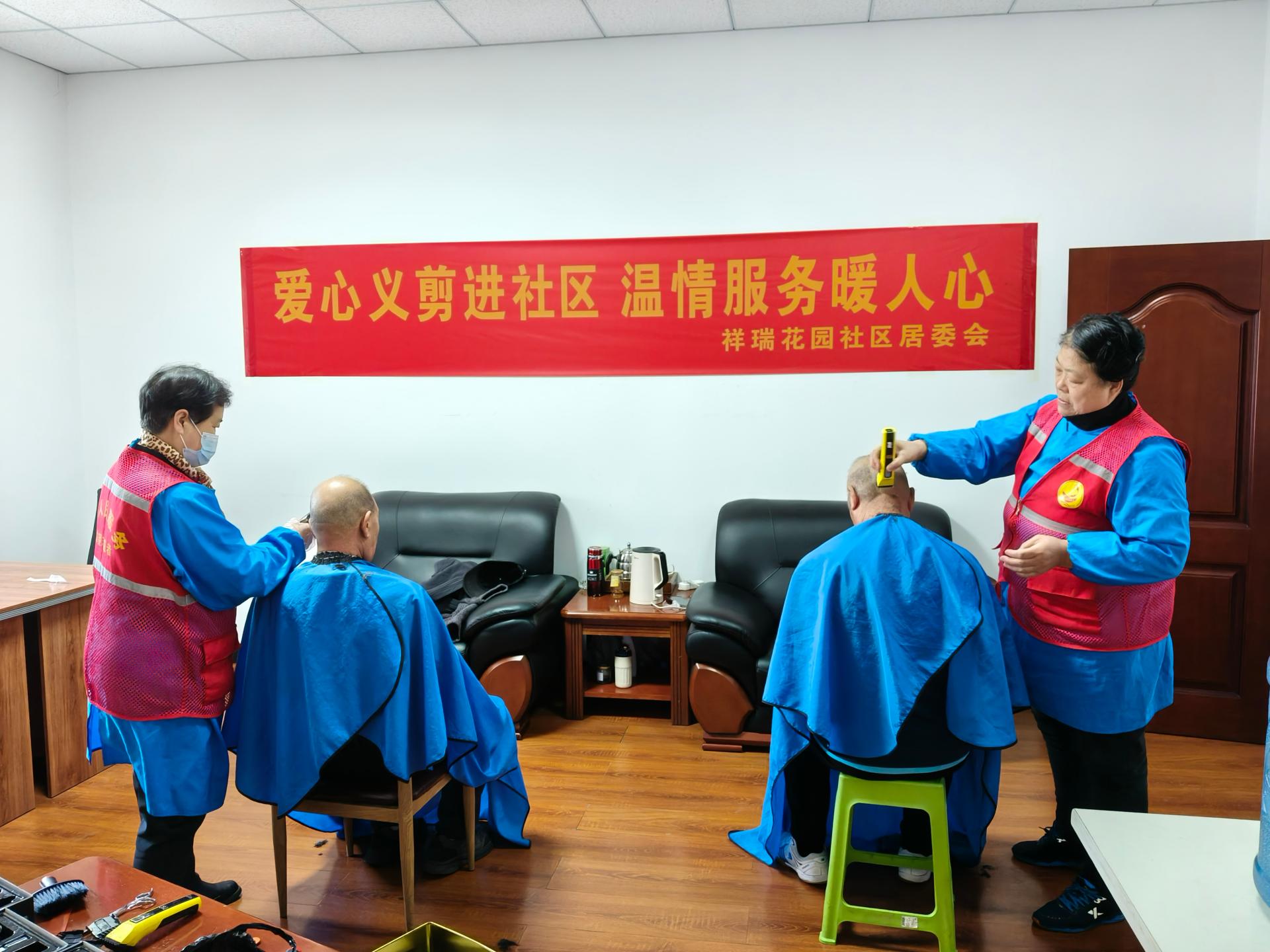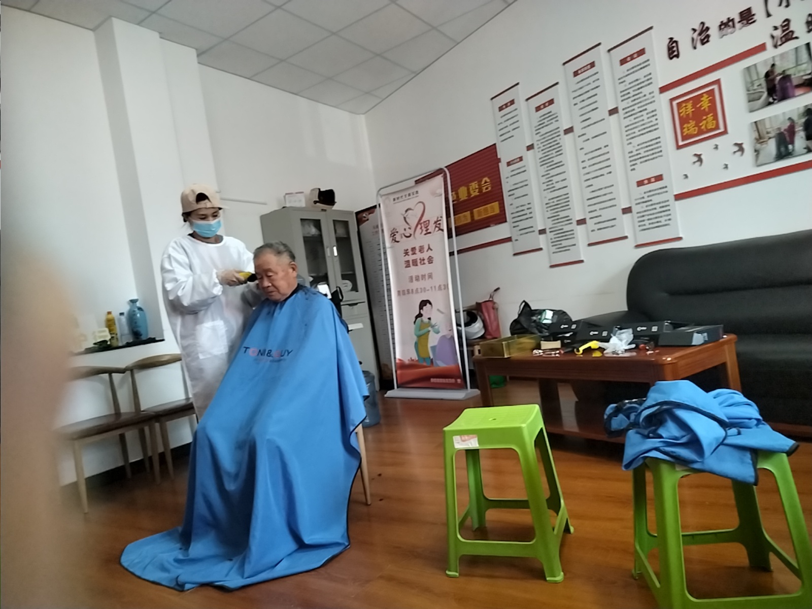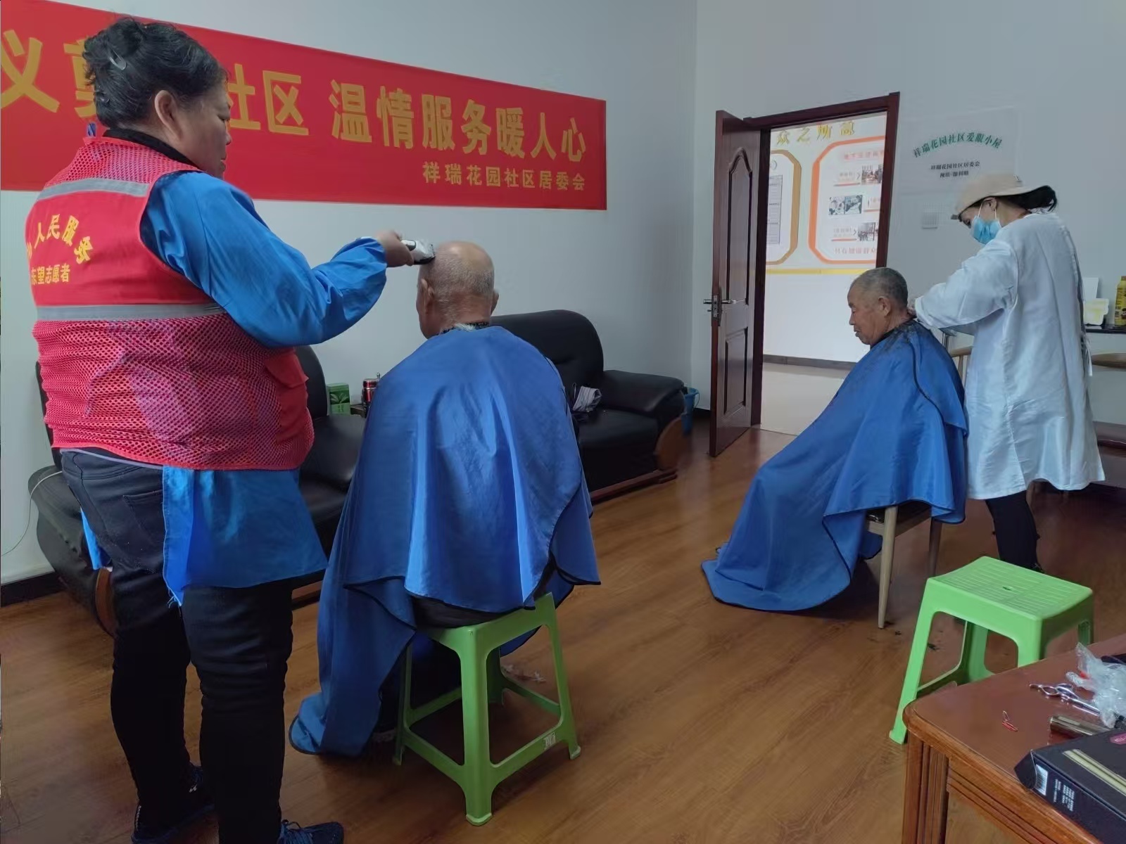 瀚榆志愿团队,祥瑞花园文明实践站公益活动为老年人理发