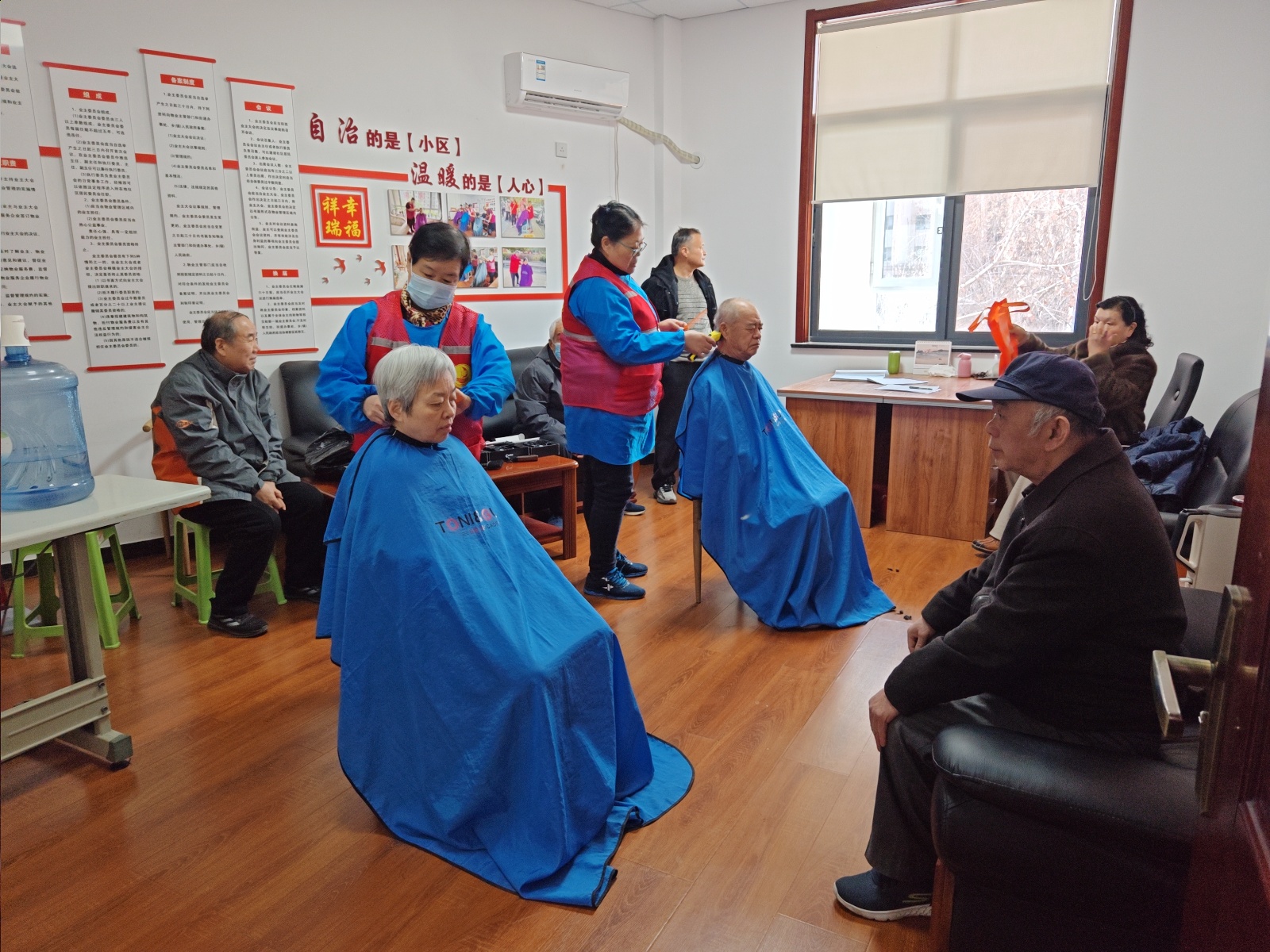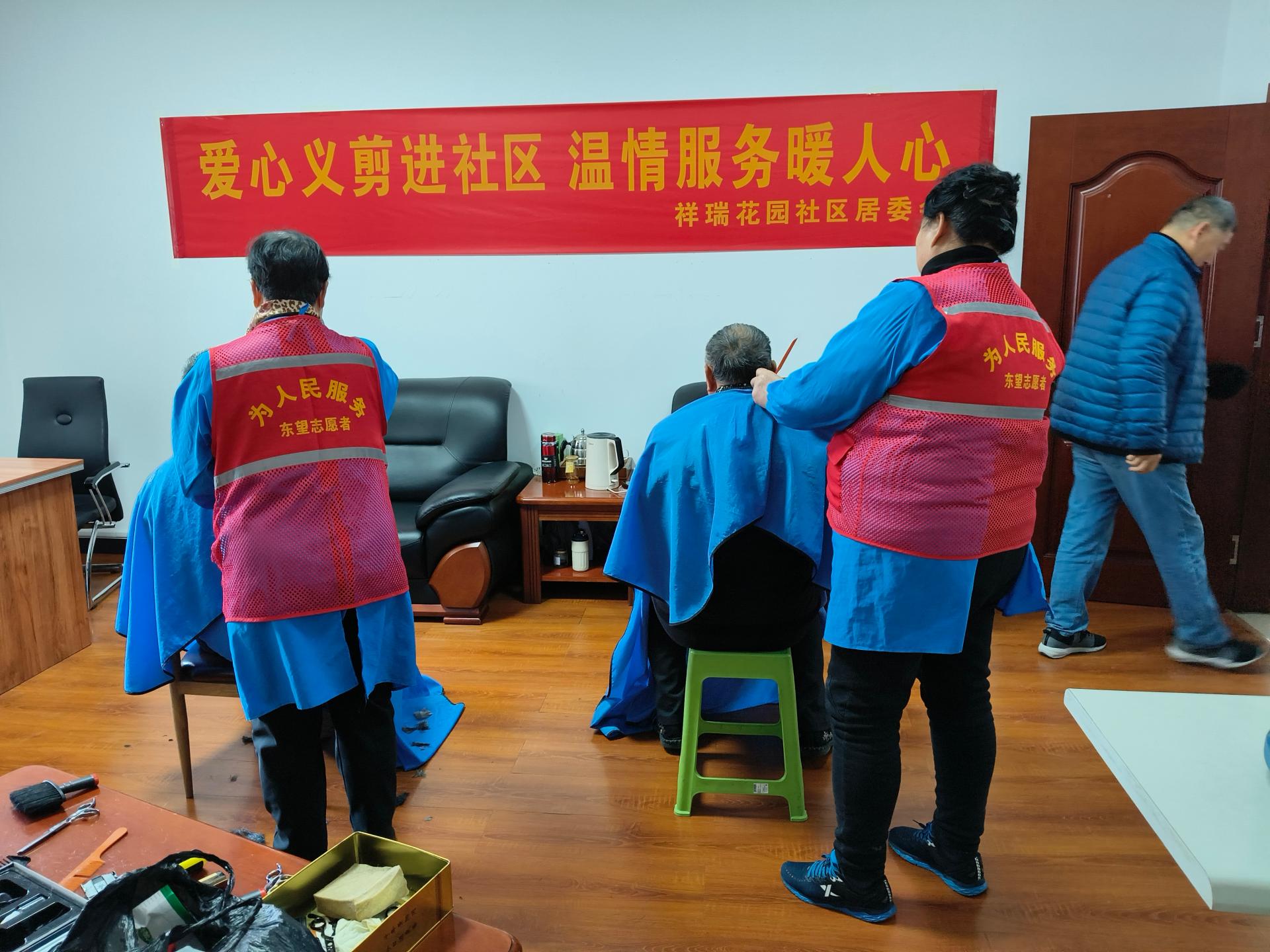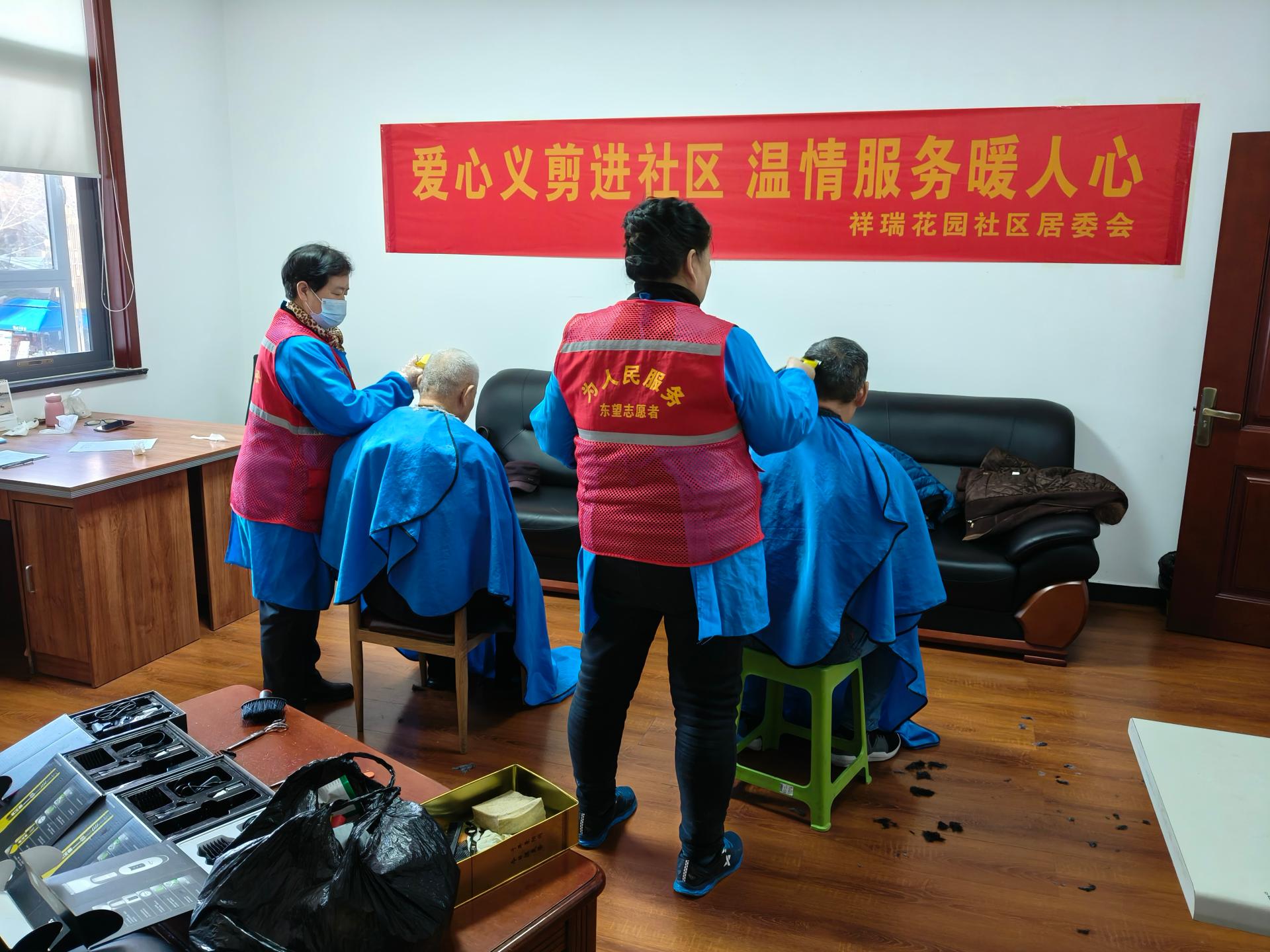 瀚榆志愿团队,祥瑞花园文明实践站公益活动为老年人理发