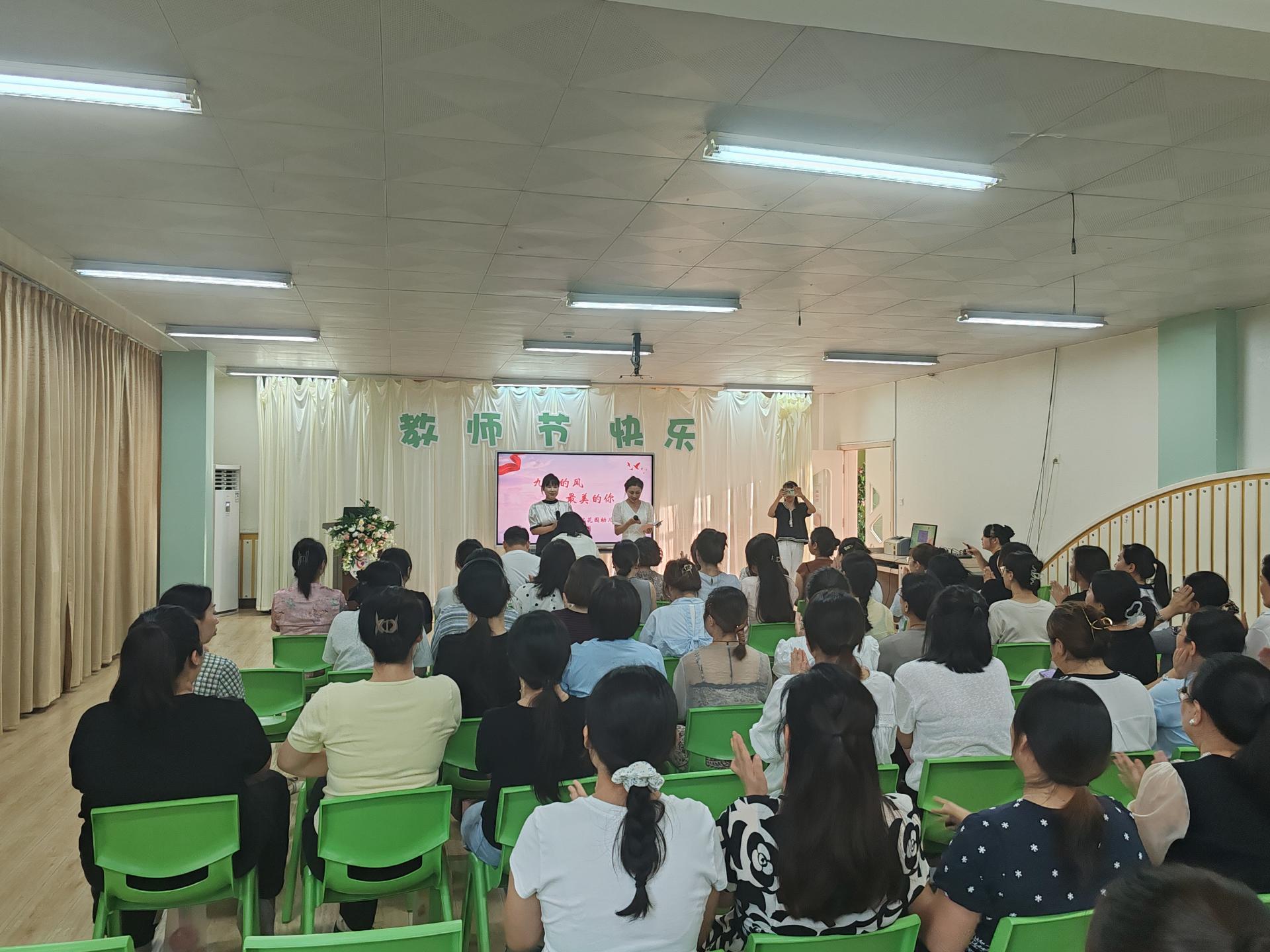 本次教师节活动旨在通过颁奖与表彰环节,充分肯定教师在幼儿生活照料、教学创新实践及团队协作中的辛勤付出,切实增强教师的职业荣誉感与被尊重感,让每位教师深度感受到幼儿园的关怀与认可;同时借助轻松有趣的互动游戏,打破日常工作的紧张节奏,促进教师间的交流互动,增进彼此默契与情谊,进一步强化团队归属感,提升教师团队的整体凝聚力;此外,通过温馨的集体活动与福利环节,帮助教师有效缓解工作压力,实现身心放松,以更饱满的热情投入后续工作,传递幼儿园“重视教师、感恩奉献”的核心文化理念,营造积极温暖、互助共进的园所氛围,为幼儿园教师队伍的稳定