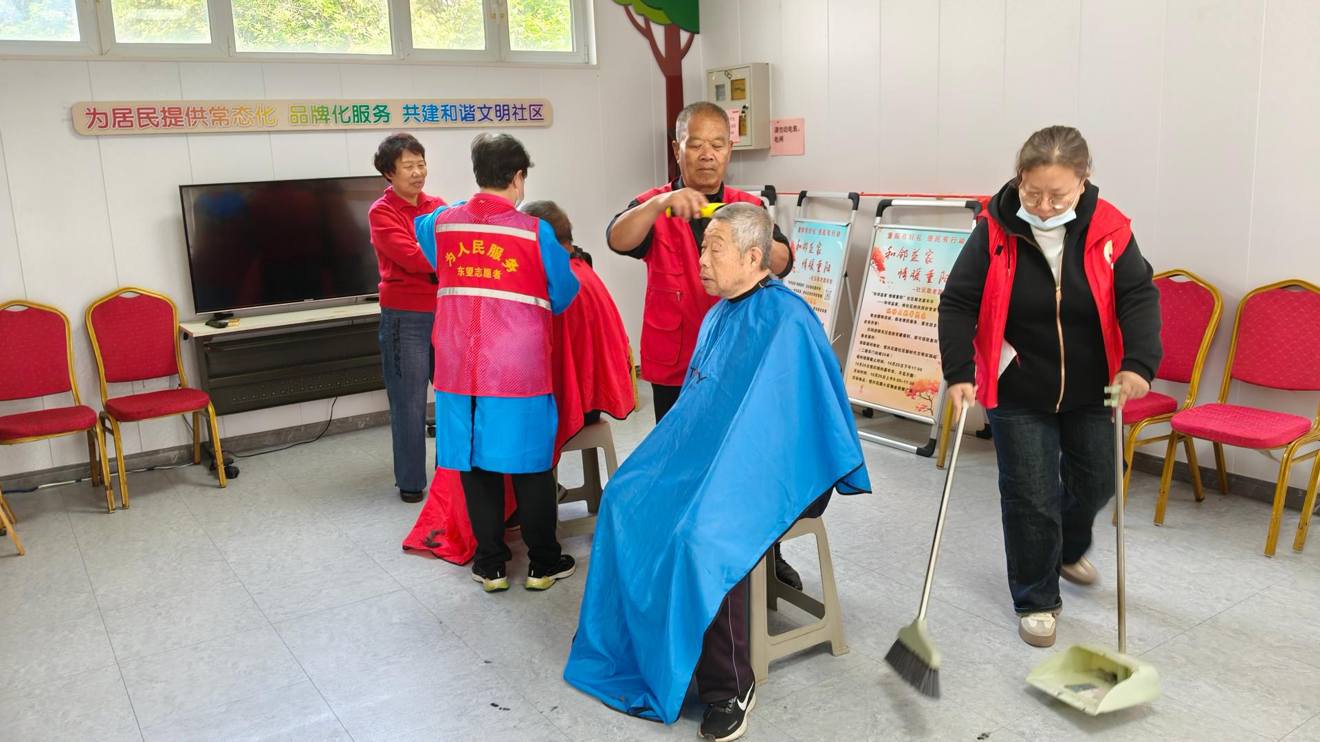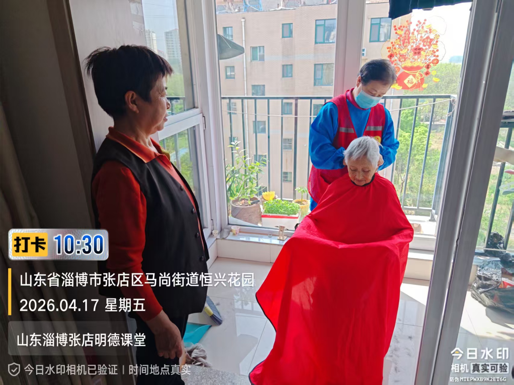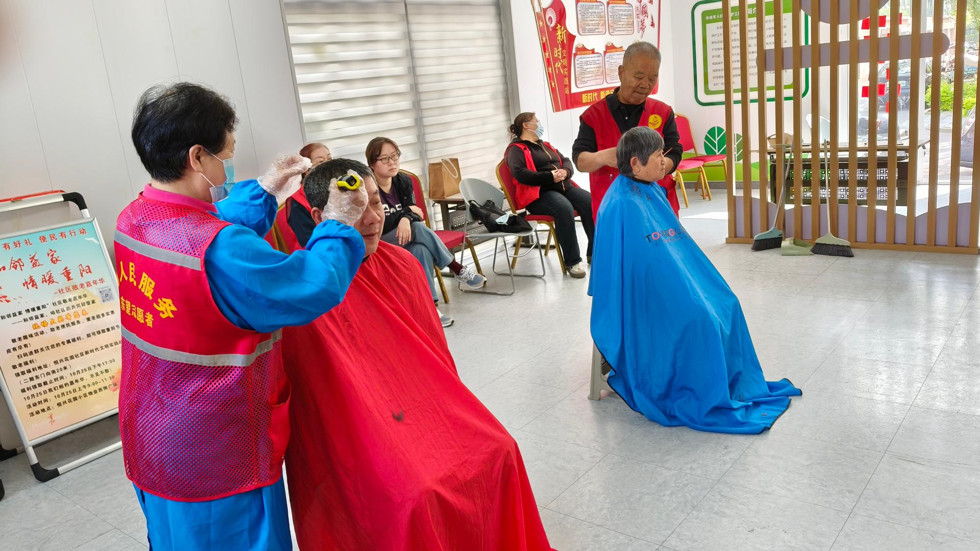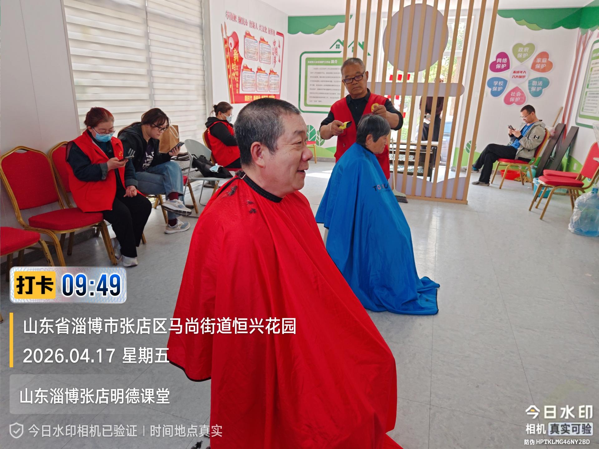 瀚榆志愿团队,在马尚街道恒兴花园社区文明实践站,公益活动为老年人理发,必须做到不忘初心,牢记使命,脚踏实地,实事求是,全心全意为人民服务