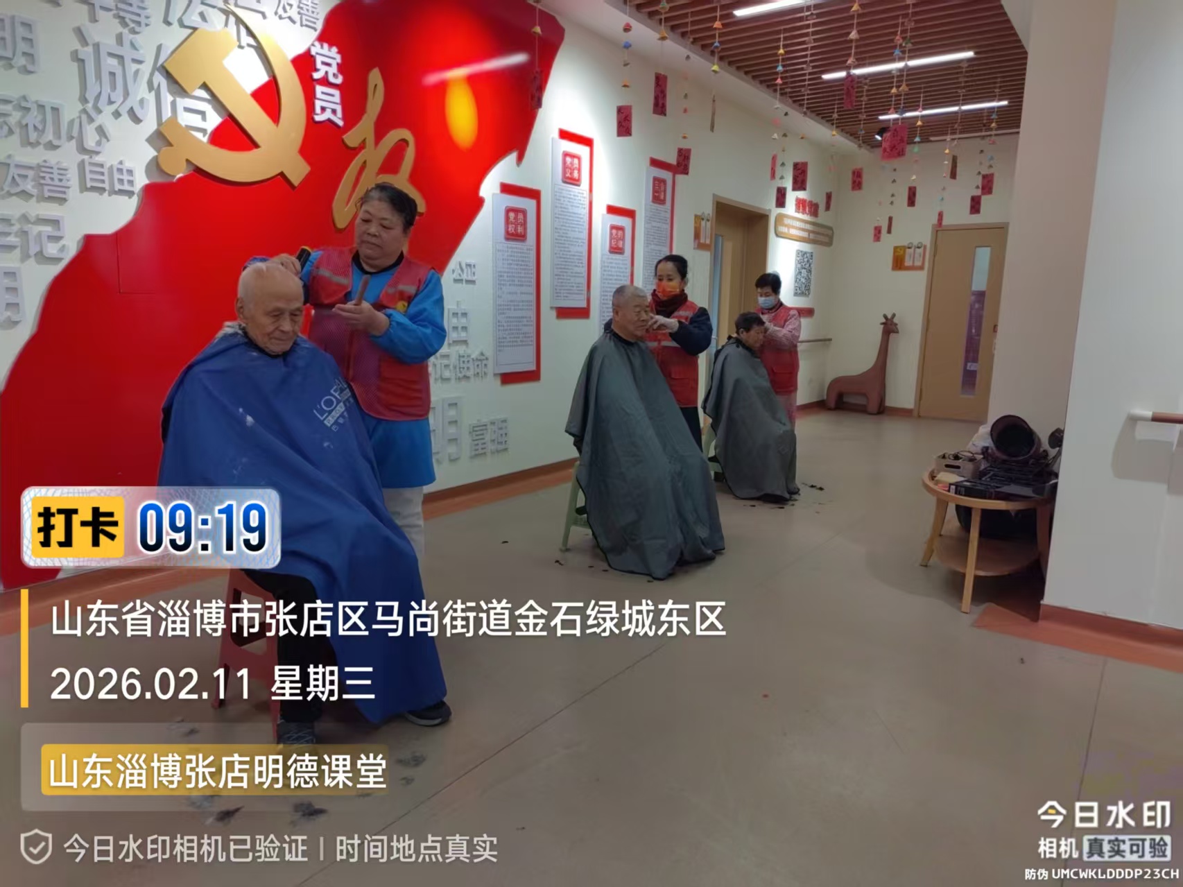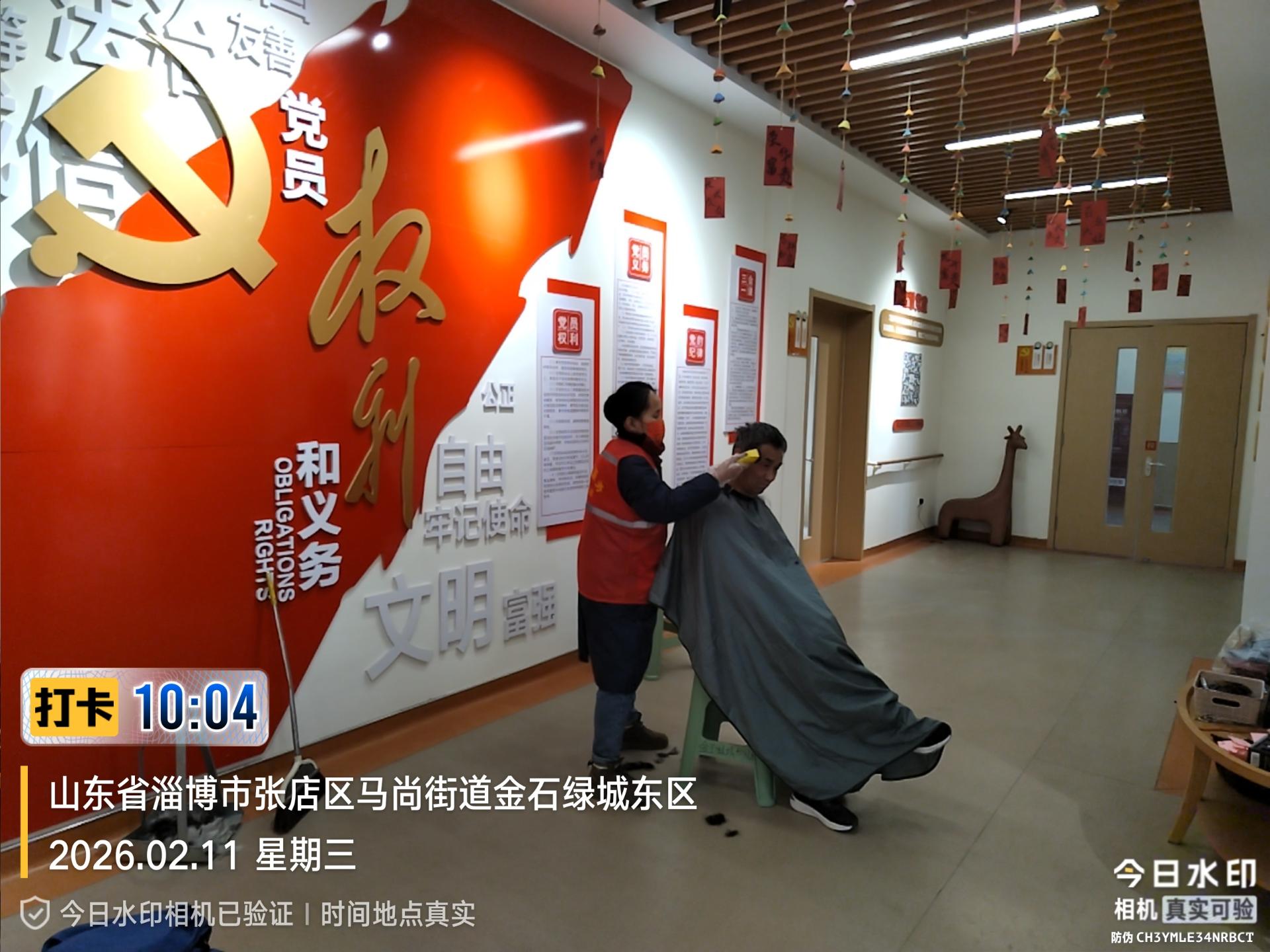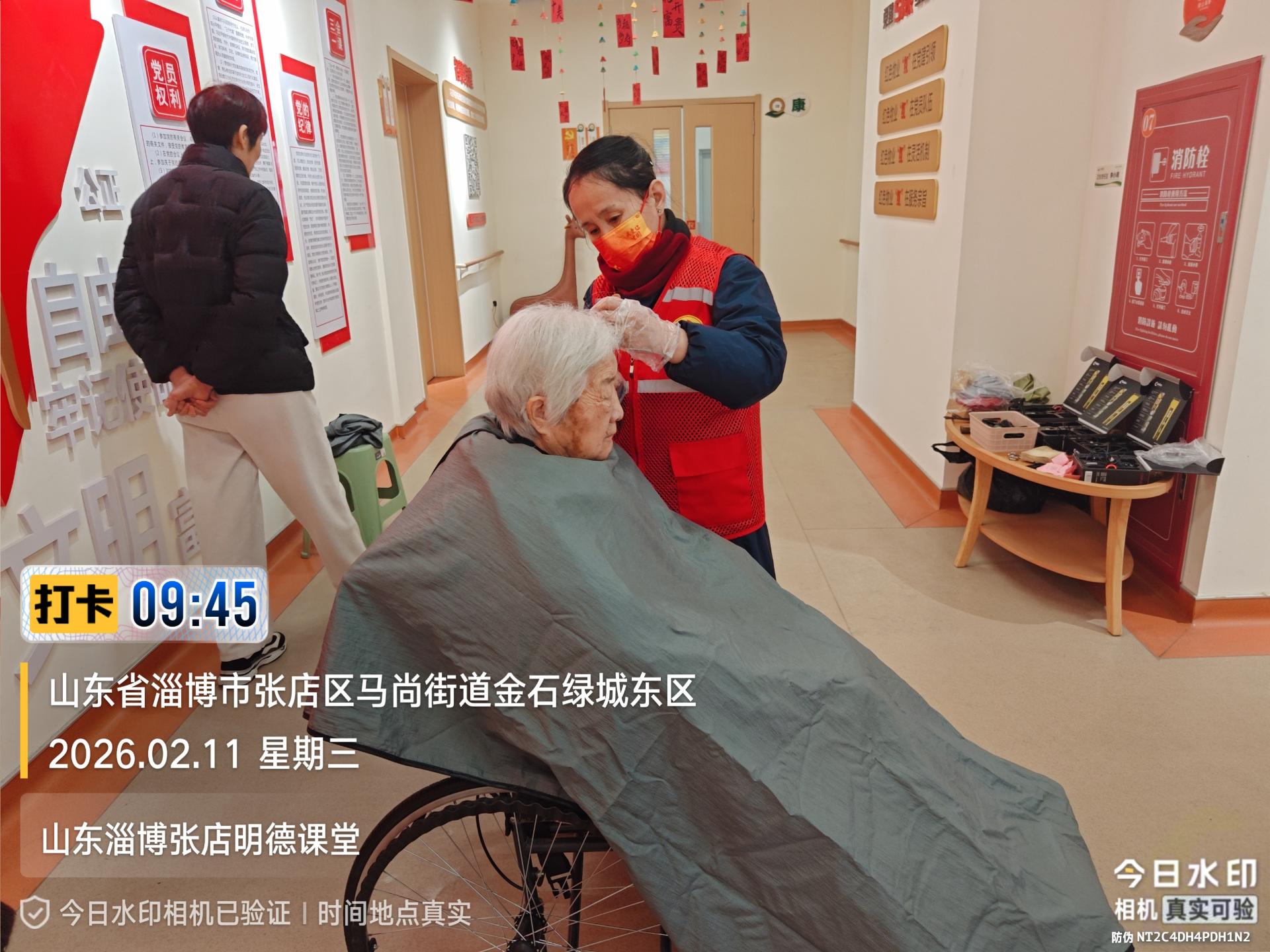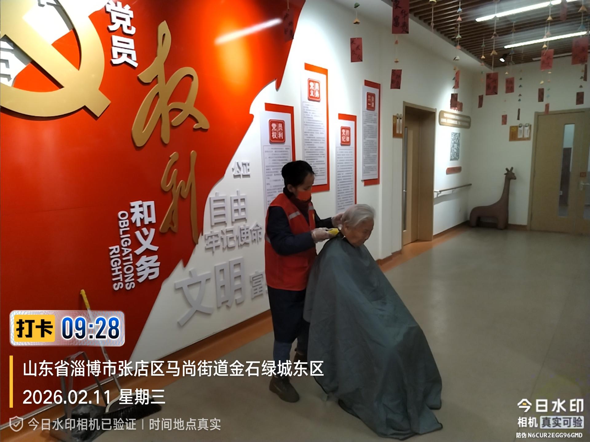 瀚榆志愿团队,马尚街道金石绿城养老综合服务中心文明实践站公益活动为老年人理发,七座的不忘初心,牢记使命,九踏实地,实事求是,全心全意为人民服务