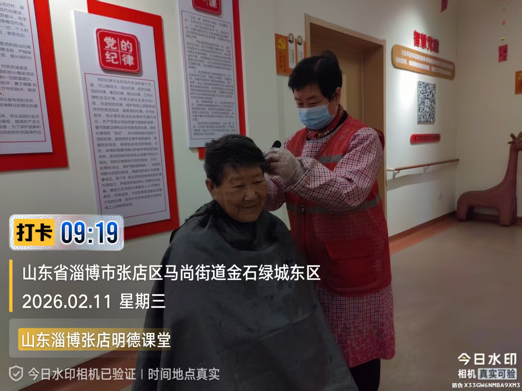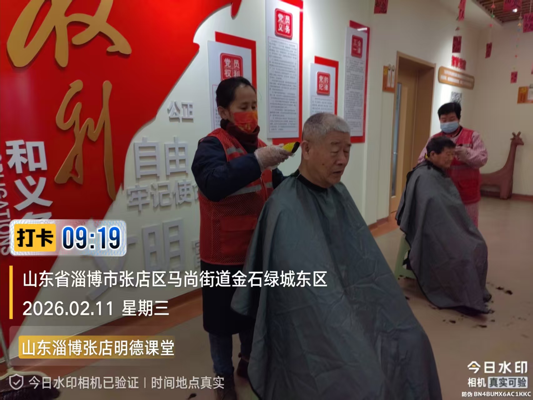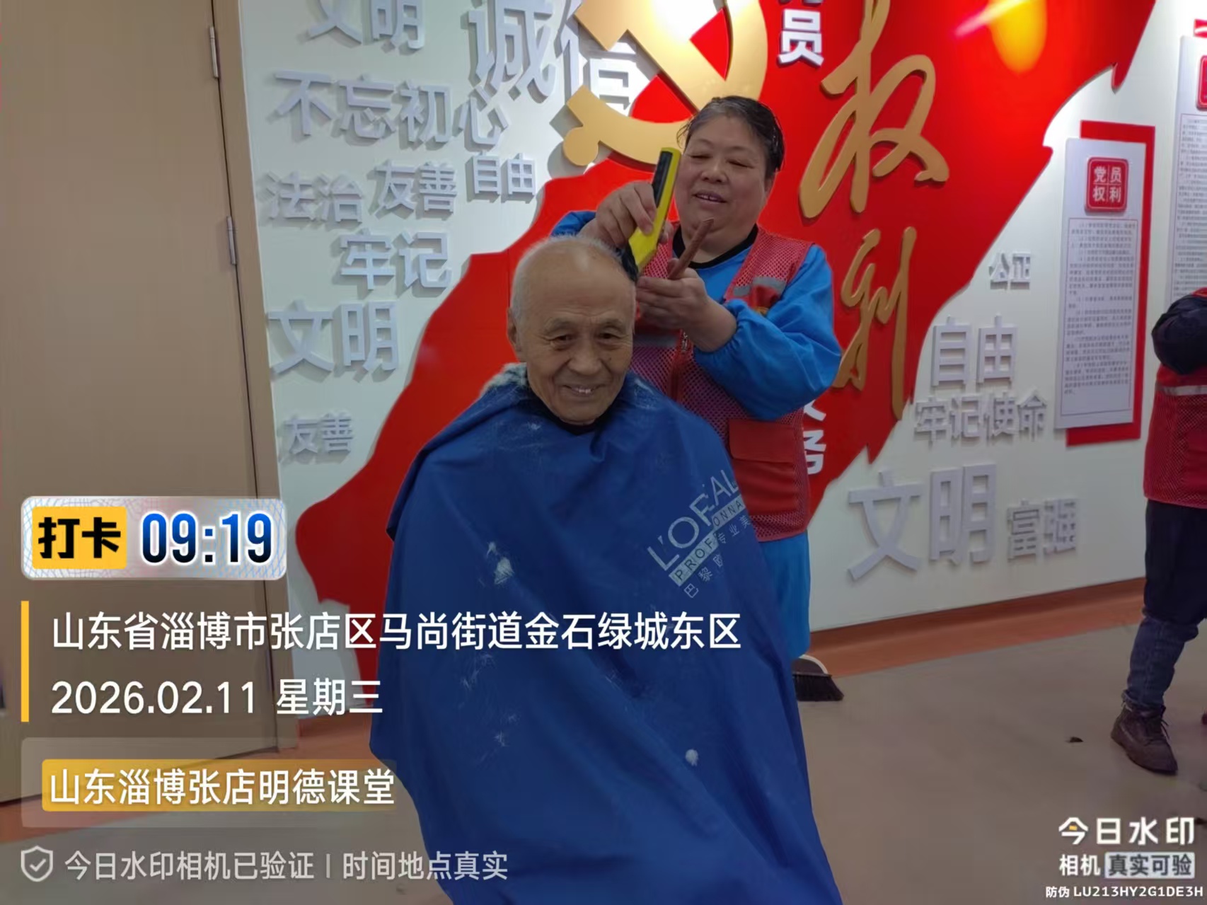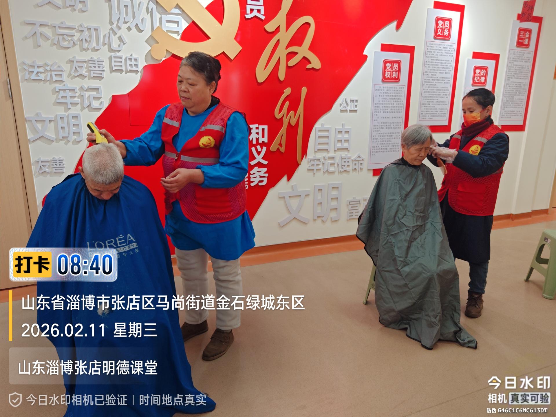瀚榆志愿团队,马尚街道金石绿城养老综合服务中心文明实践站公益活动为老年人理发,七座的不忘初心,牢记使命,九踏实地,实事求是,全心全意为人民服务