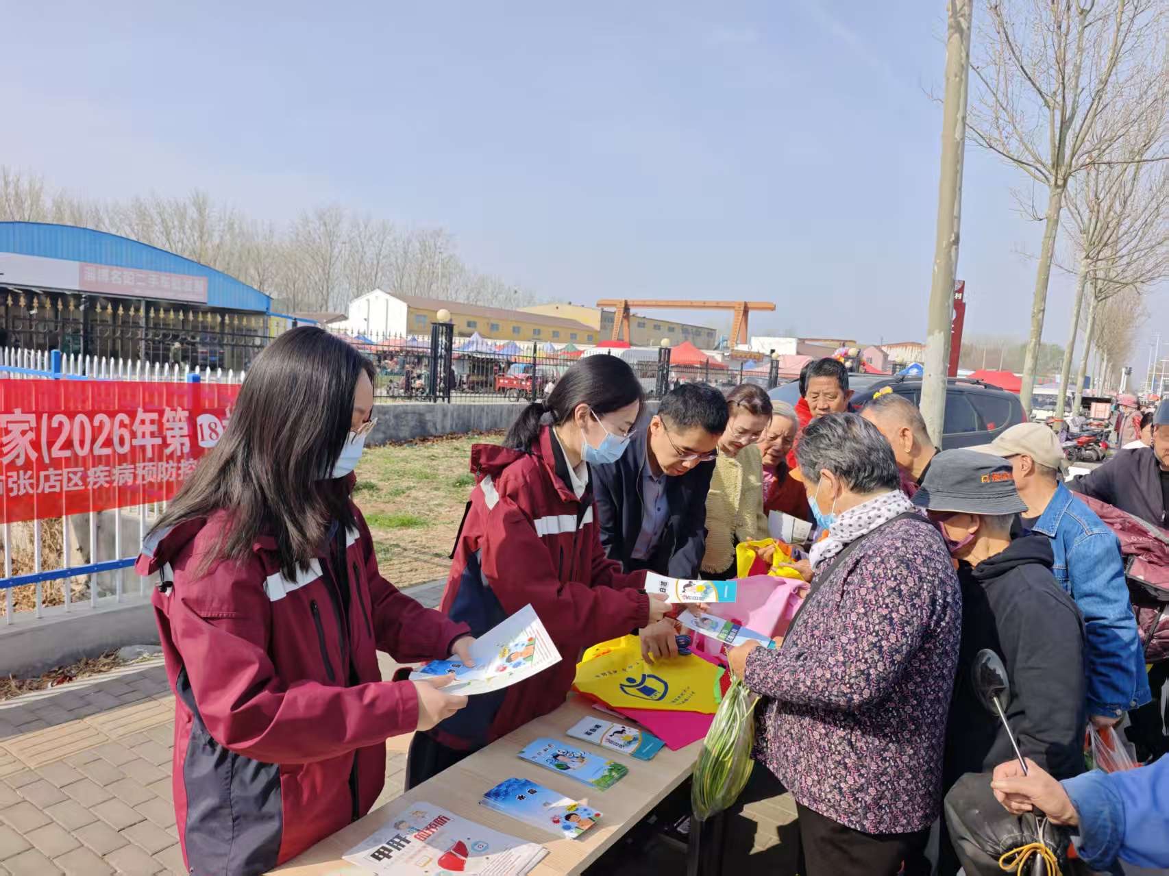 为普及预防接种知识、筑牢人群免疫屏障,走进乡村大集开展健康科普宣传活动。通过悬挂横幅、发放宣传资料、一对一答疑等形式,引导群众科学认识疫苗、主动完成接种,把健康服务送到群众身边。