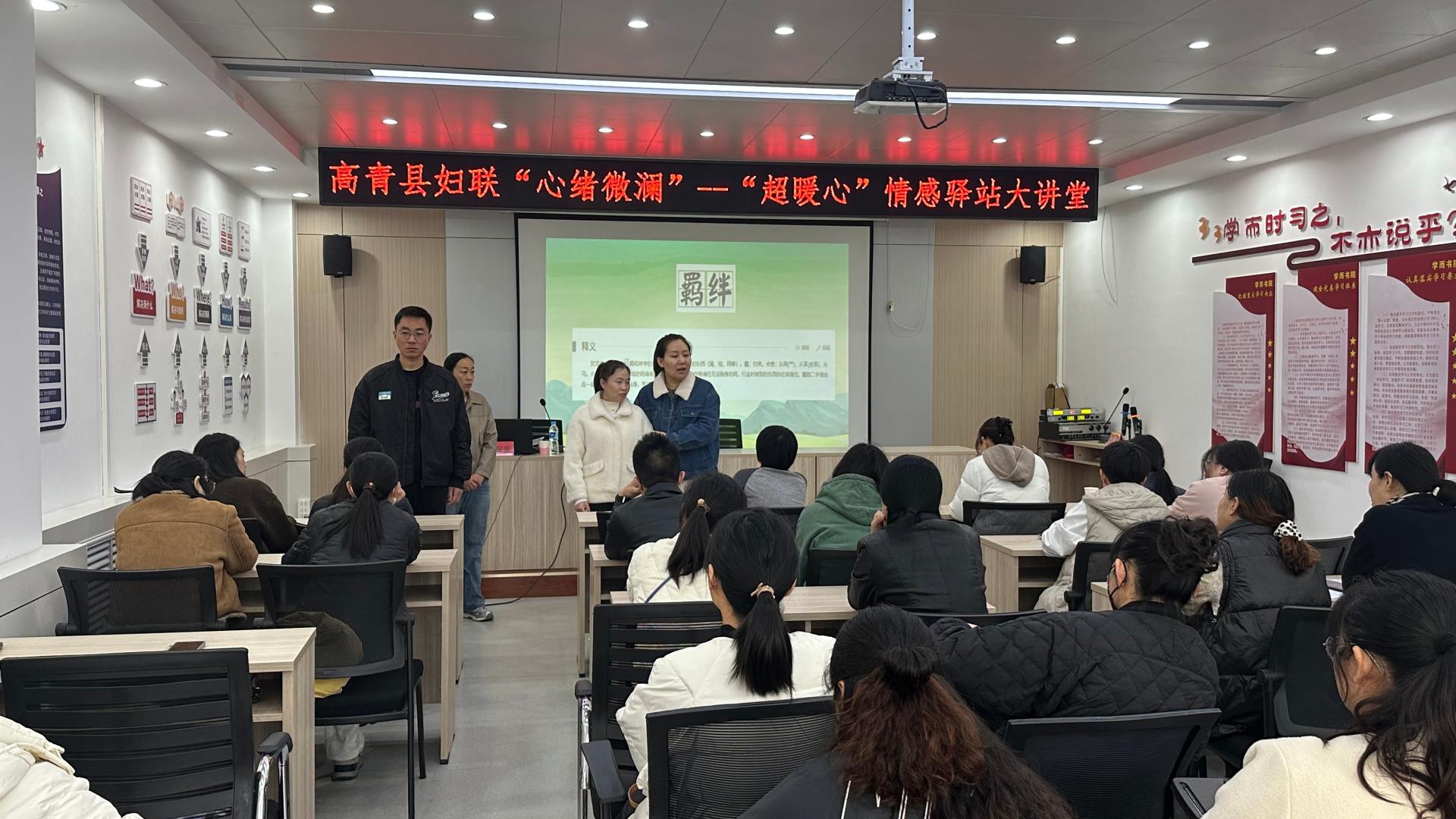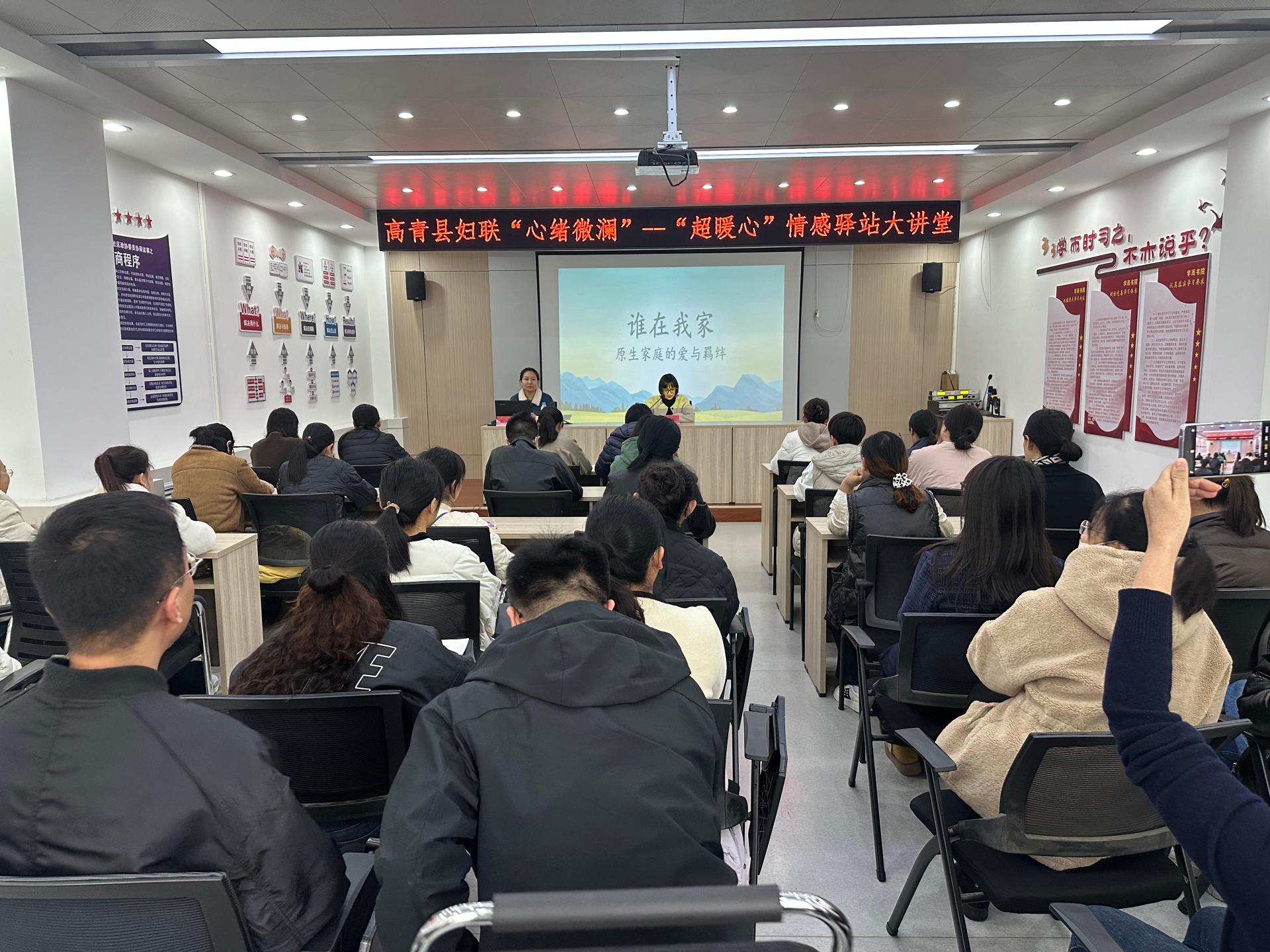 芦湖街道办事处学府社区党群服务中心联合高青县妇联进行家庭教育方面教学活动,组织辖区居民参加活动让居民获益。