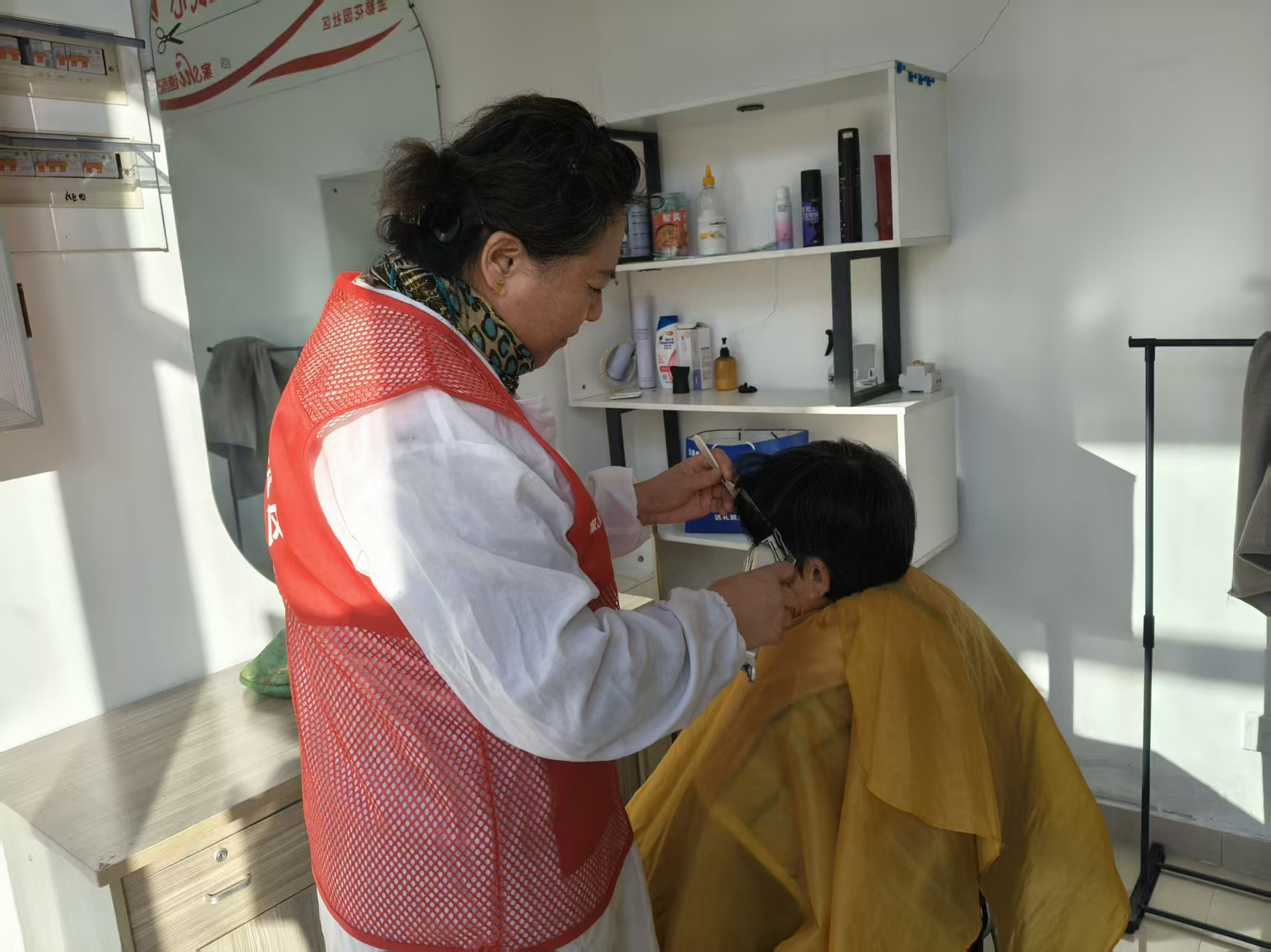 金都花园社区联合自治共同体单位开展爱心公益理发志愿服务,为辖区六十周岁以上老年居民、困难群体提供免费理发服务。
