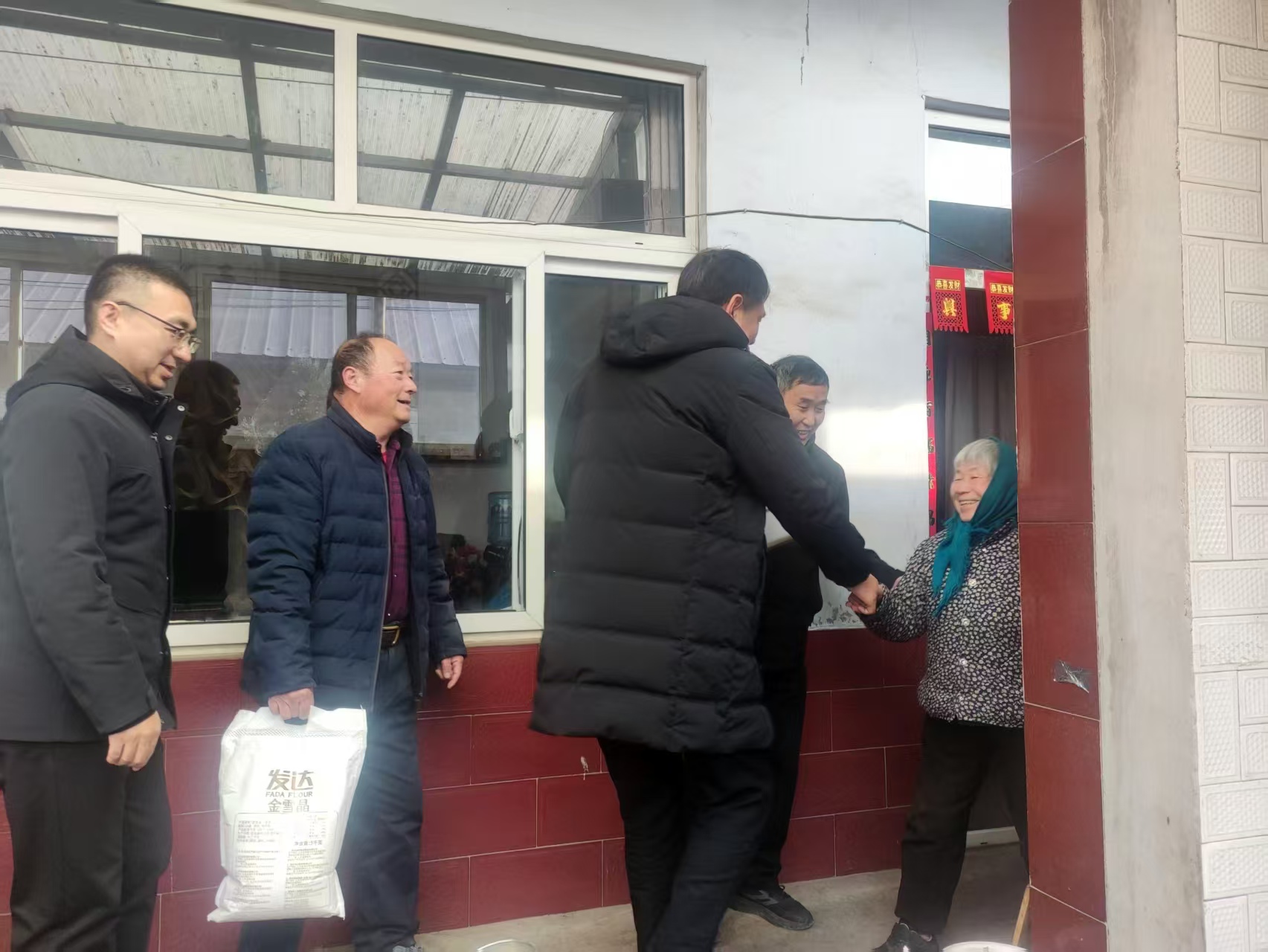 市医保局沂源分局组织干部职工到市派第一书记村开展春节送温暖志愿服务活动,为困难群众送去米、面、油,并进行医保政策宣传。