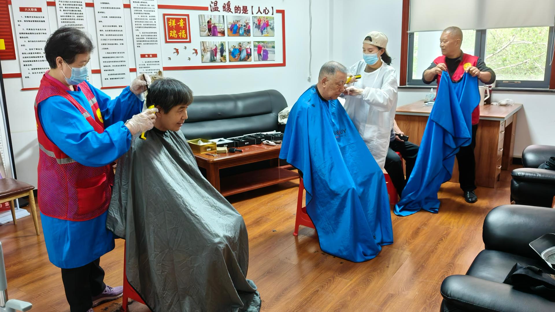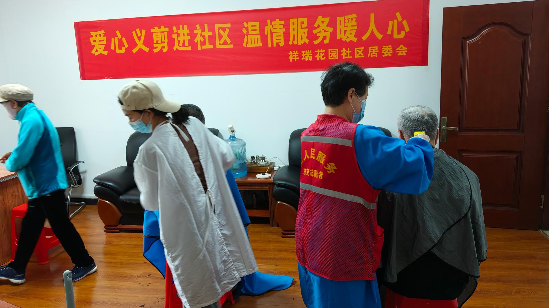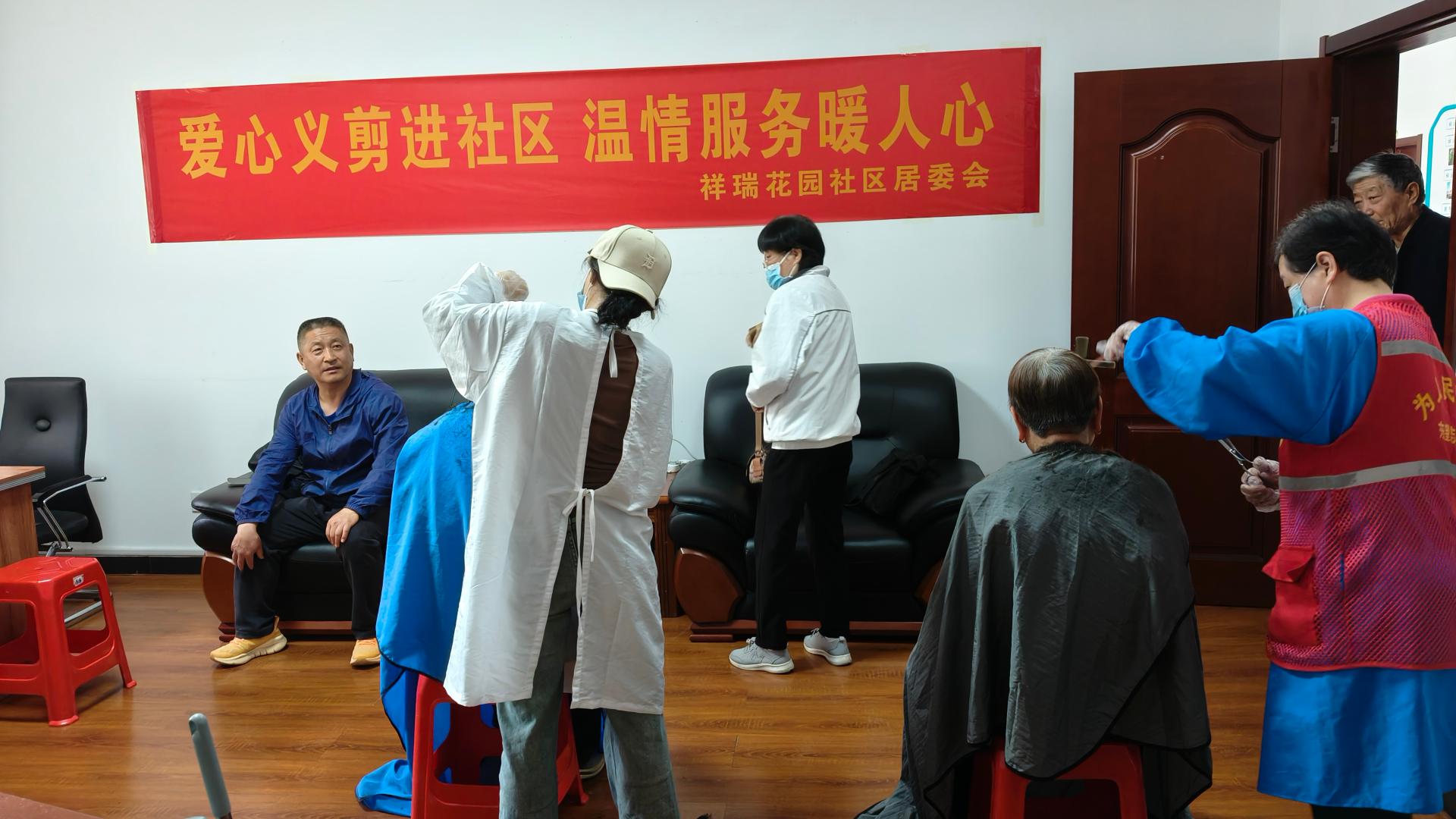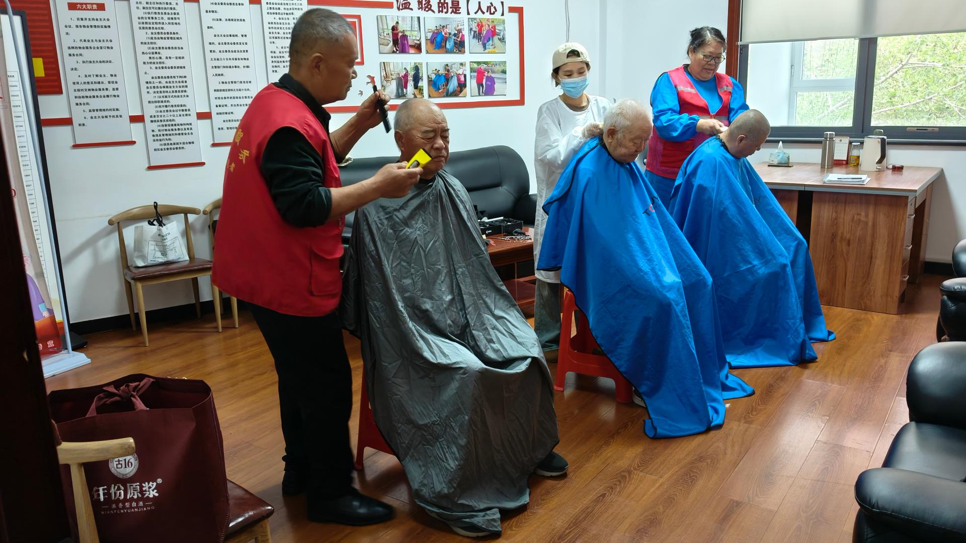 瀚榆志愿团队,在祥瑞花园文明实践站,公益活动为老年人理发
