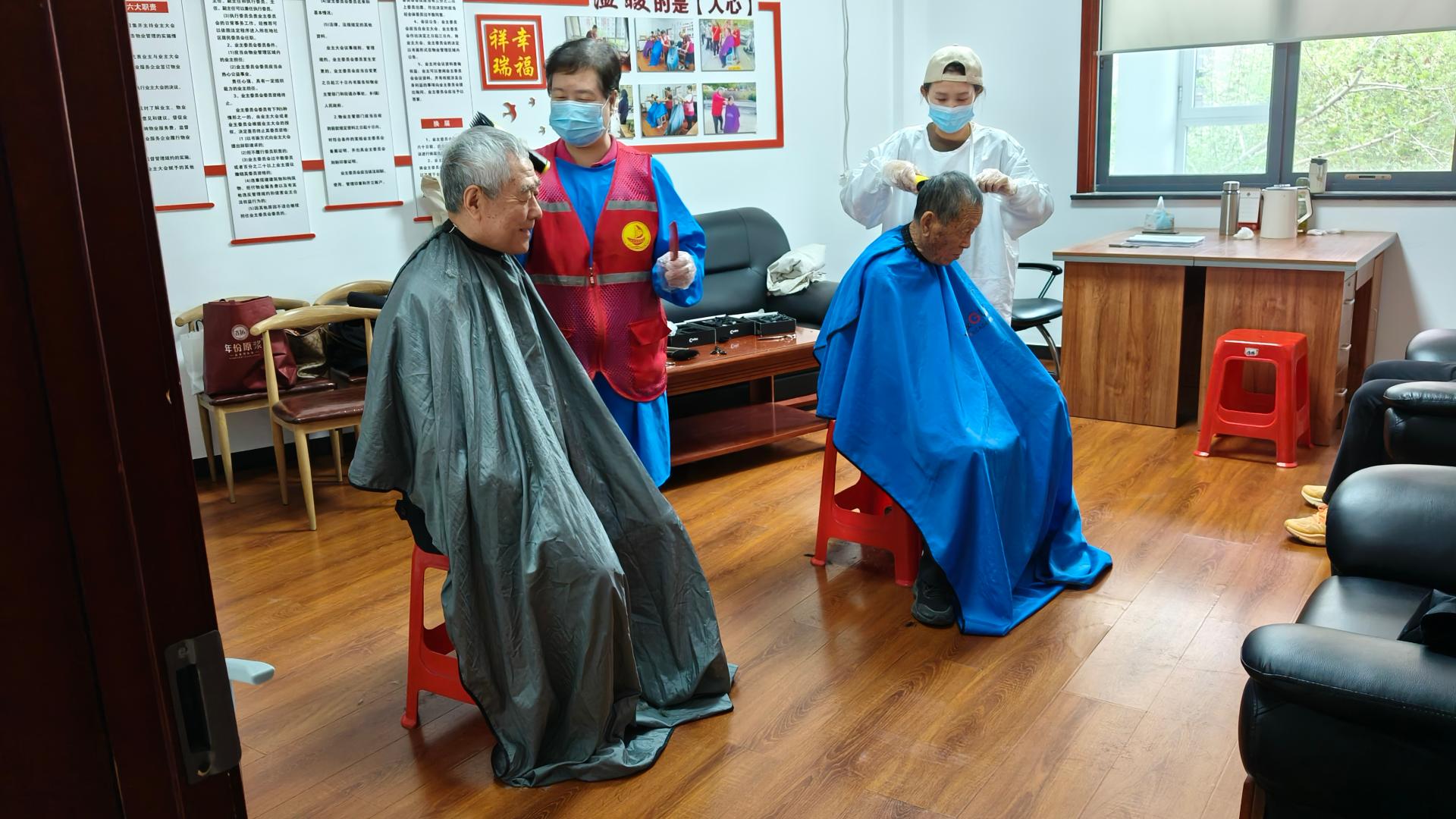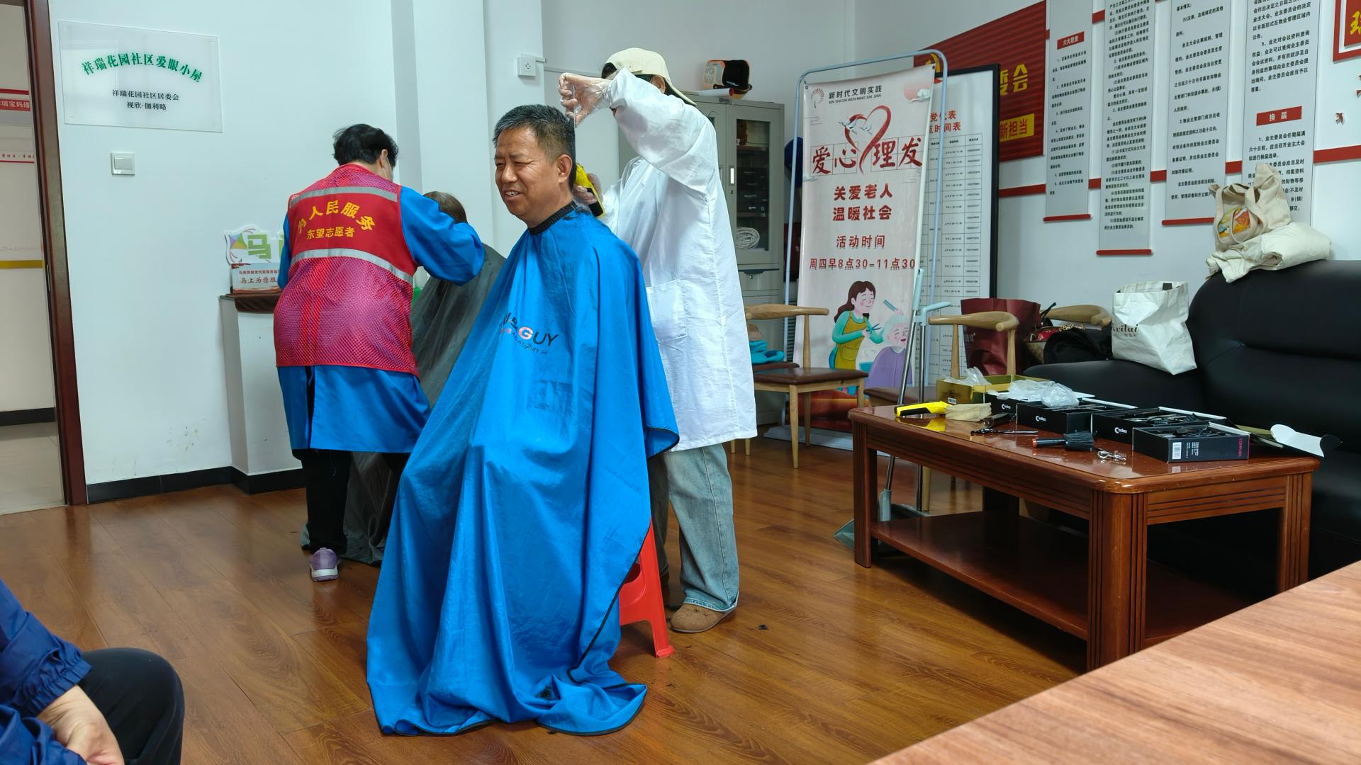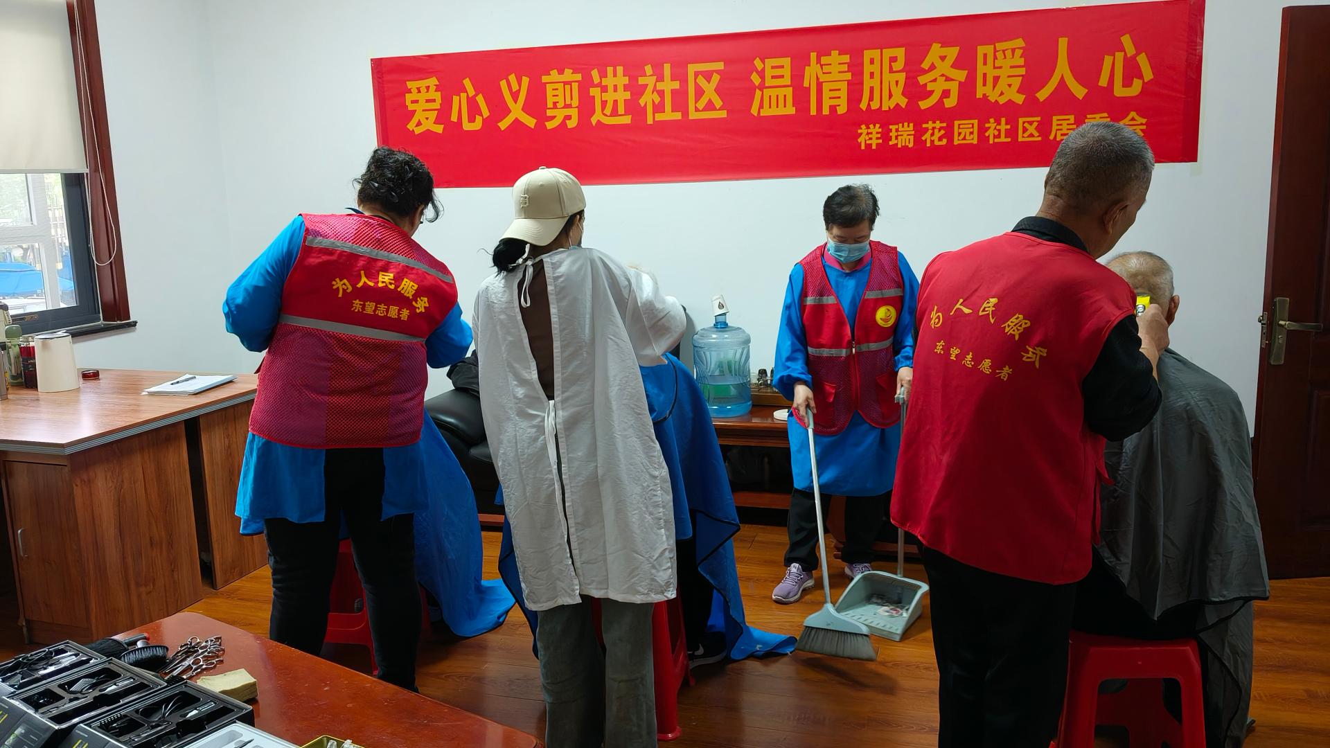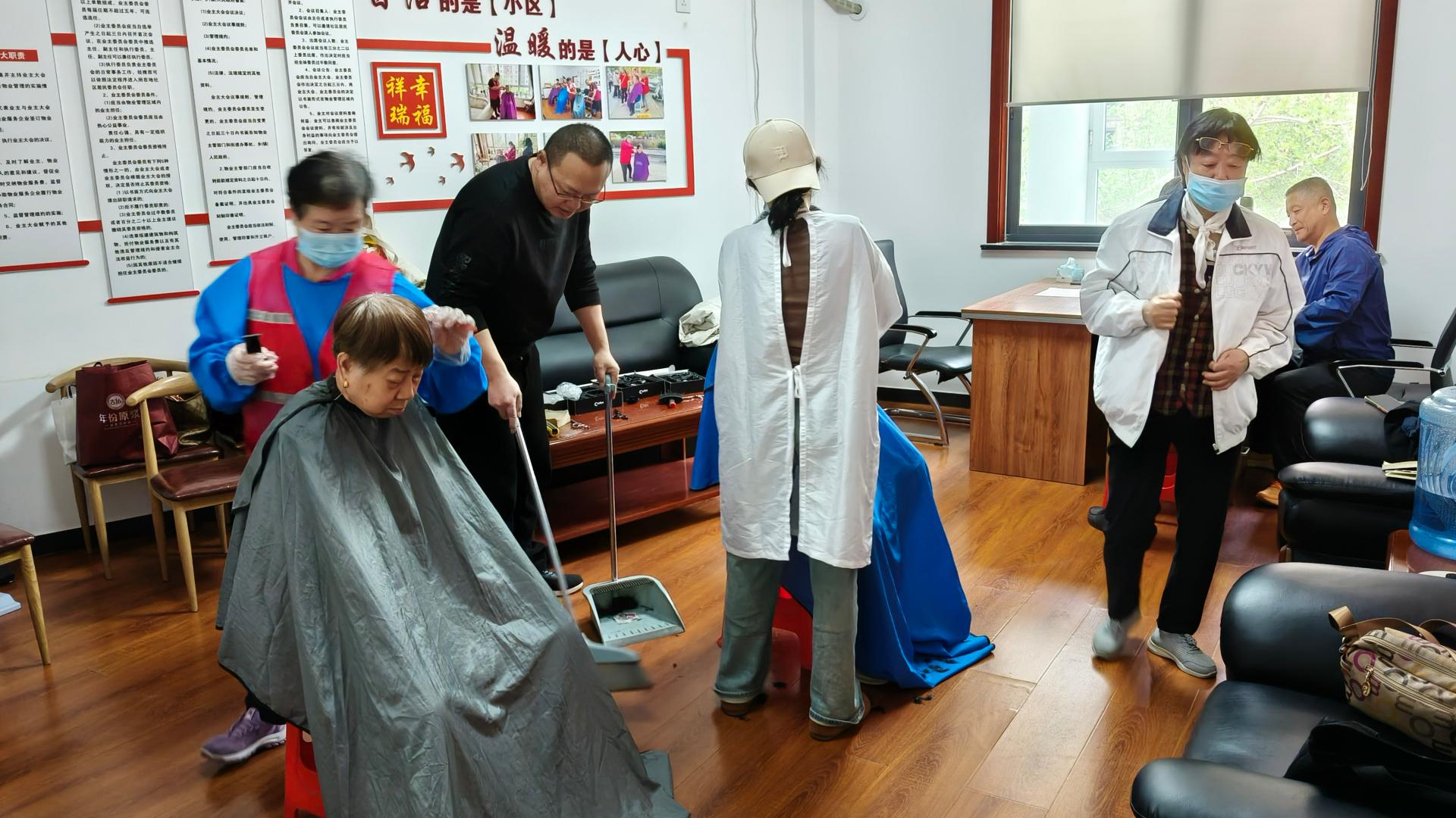 瀚榆志愿团队,在祥瑞花园文明实践站,公益活动为老年人理发