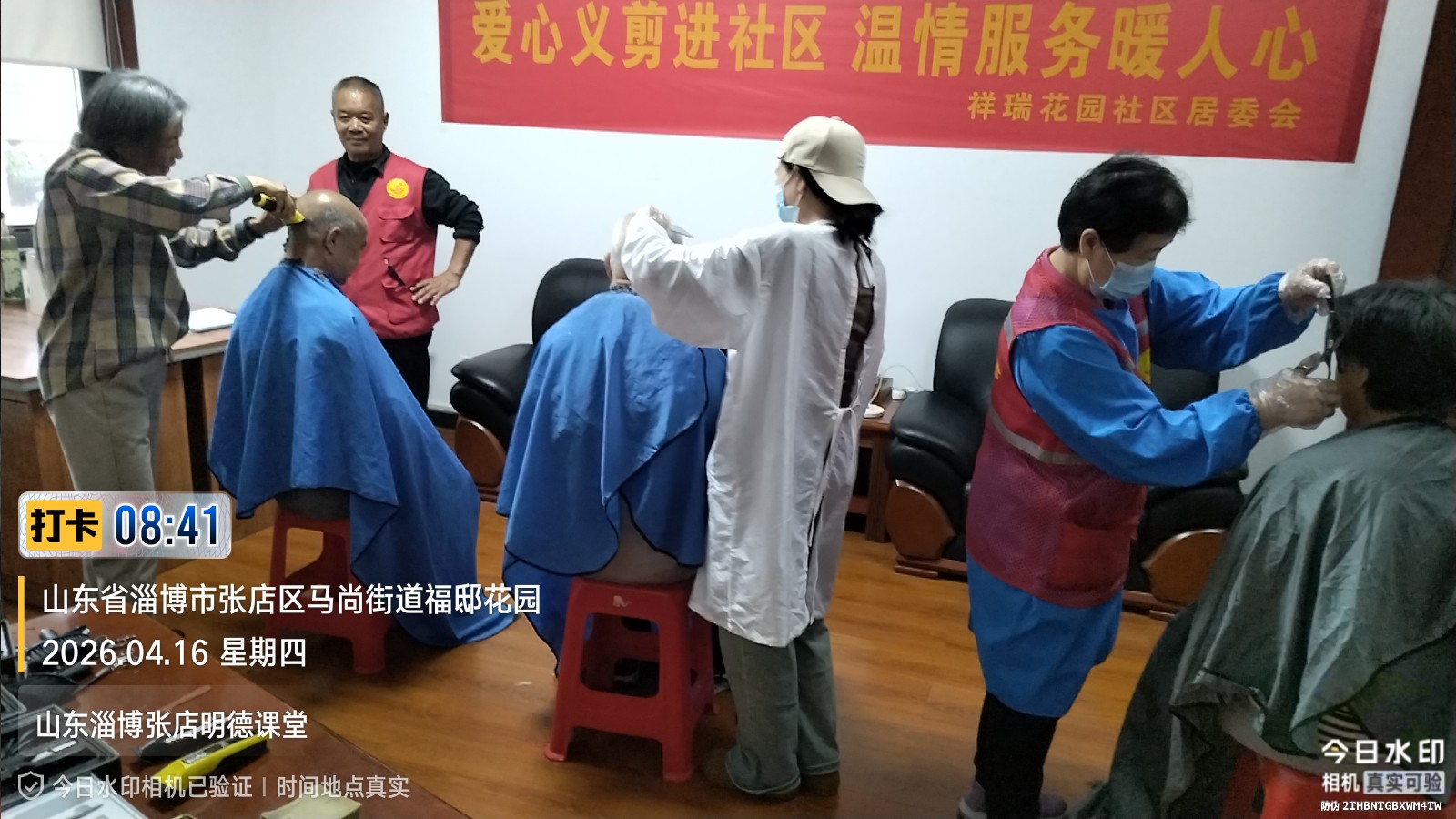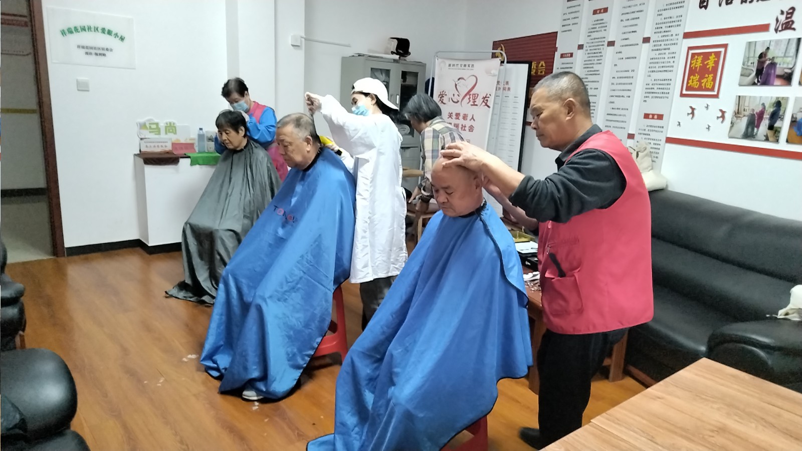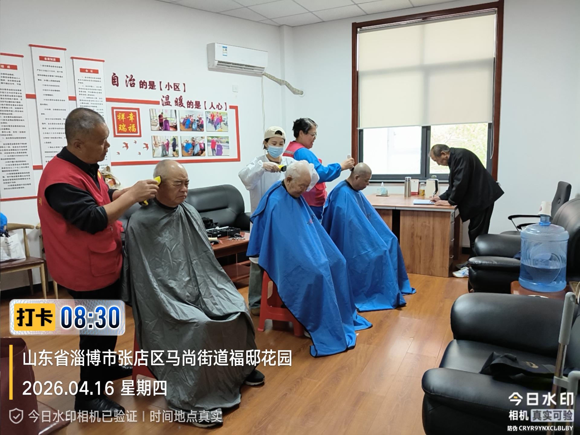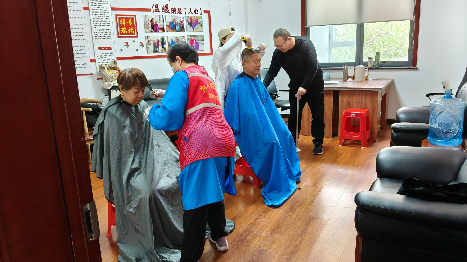 瀚榆志愿团队,在祥瑞花园文明实践站,公益活动为老年人理发