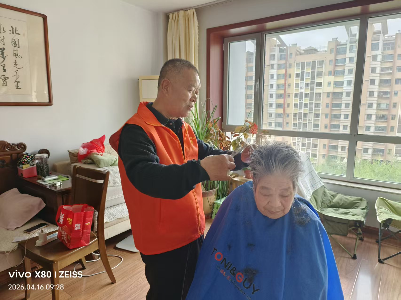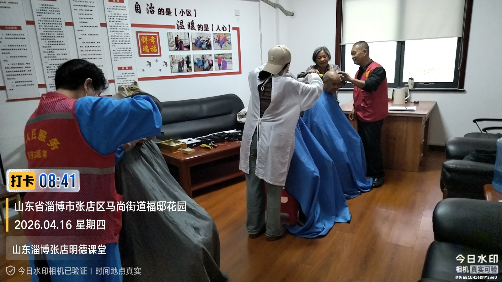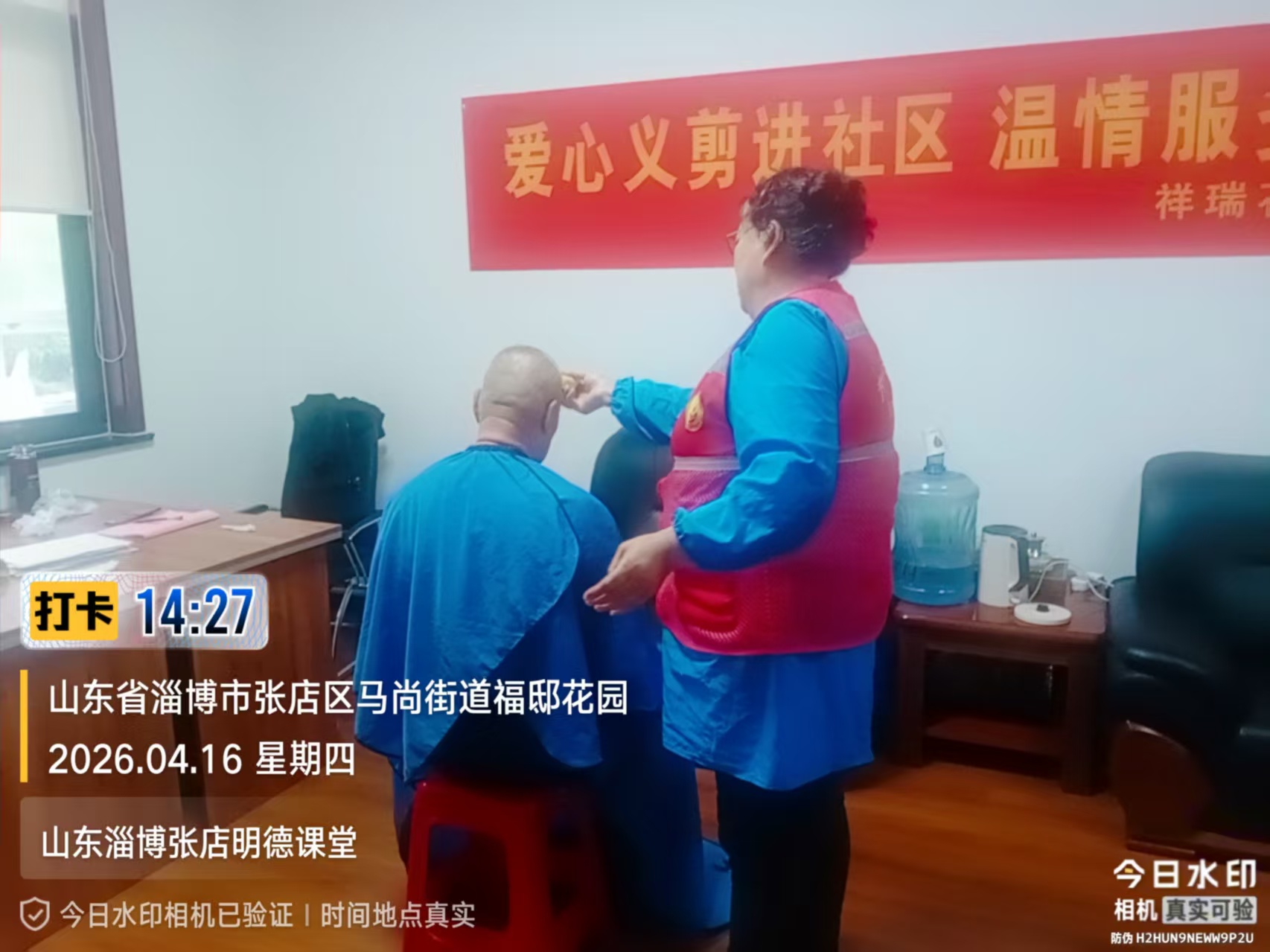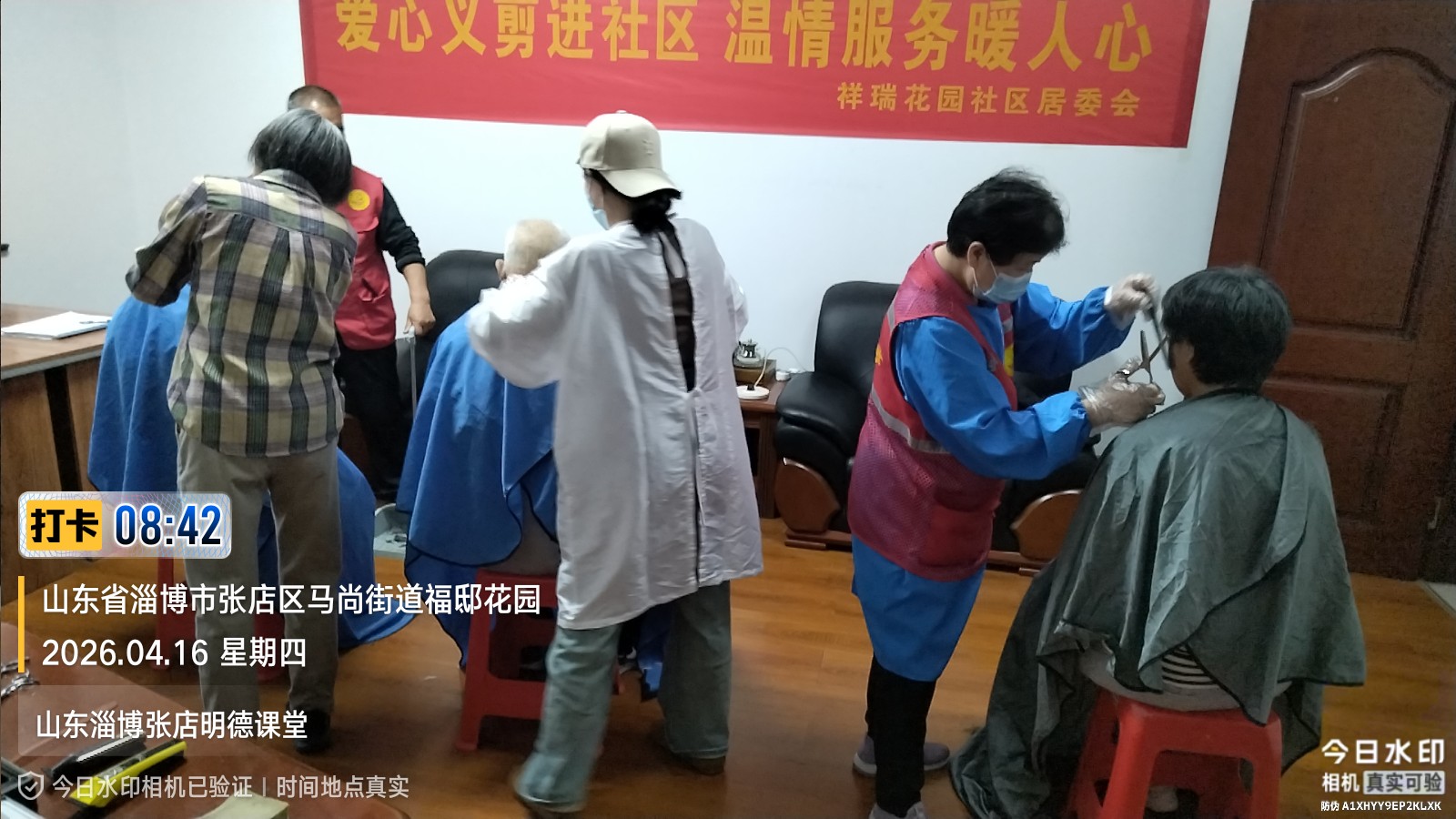 瀚榆志愿团队,在祥瑞花园文明实践站,公益活动为老年人理发