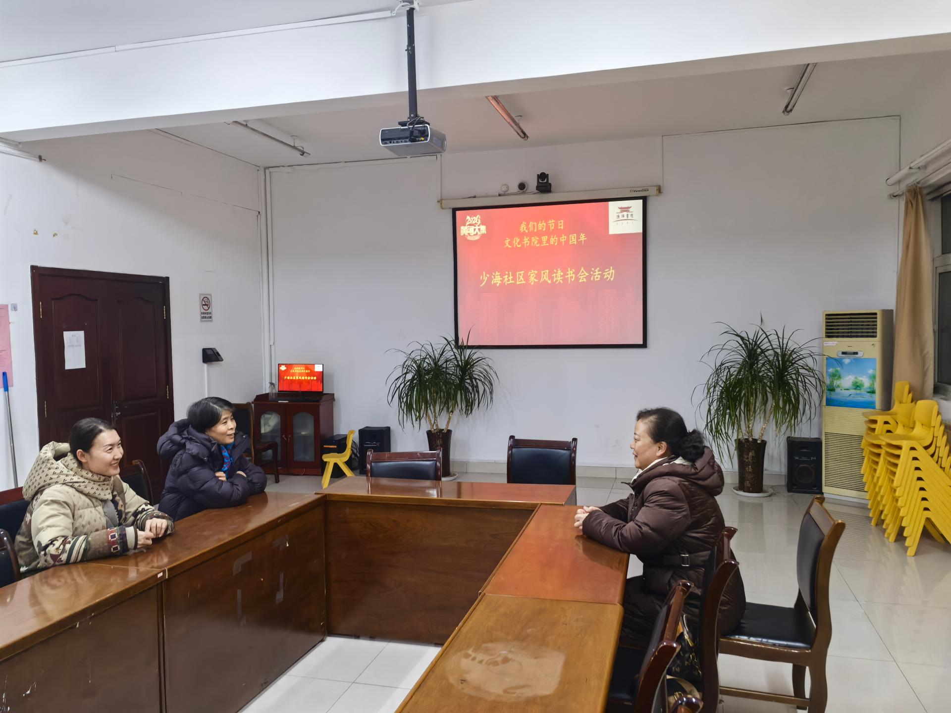 少海街道少海社区开展文化书院里的中国年读书会活动,通过开展读书会活动,促进社区家庭教育的进行,促进文化书院建设。
