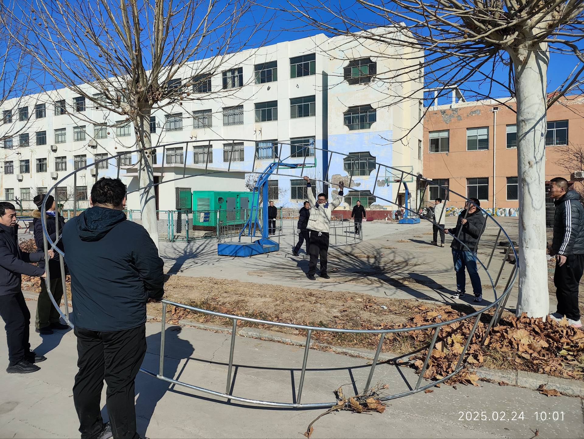 中心路小学为保障在校学生每天综合体育活动时间不低于2小时,落实“健康第一”教育理念,让体育从"计分科目"变为"成长伙伴",新建多项体育设施,需要老师们齐心协力动手组建此项活动。