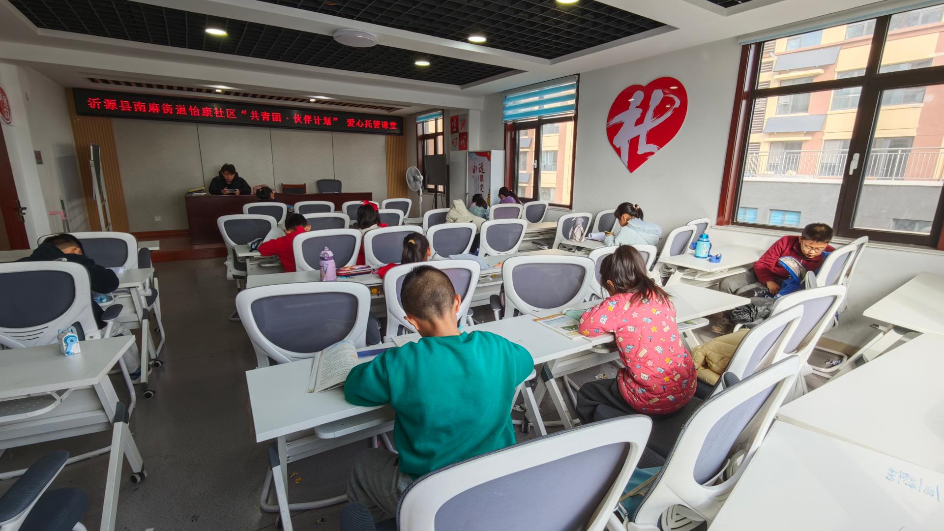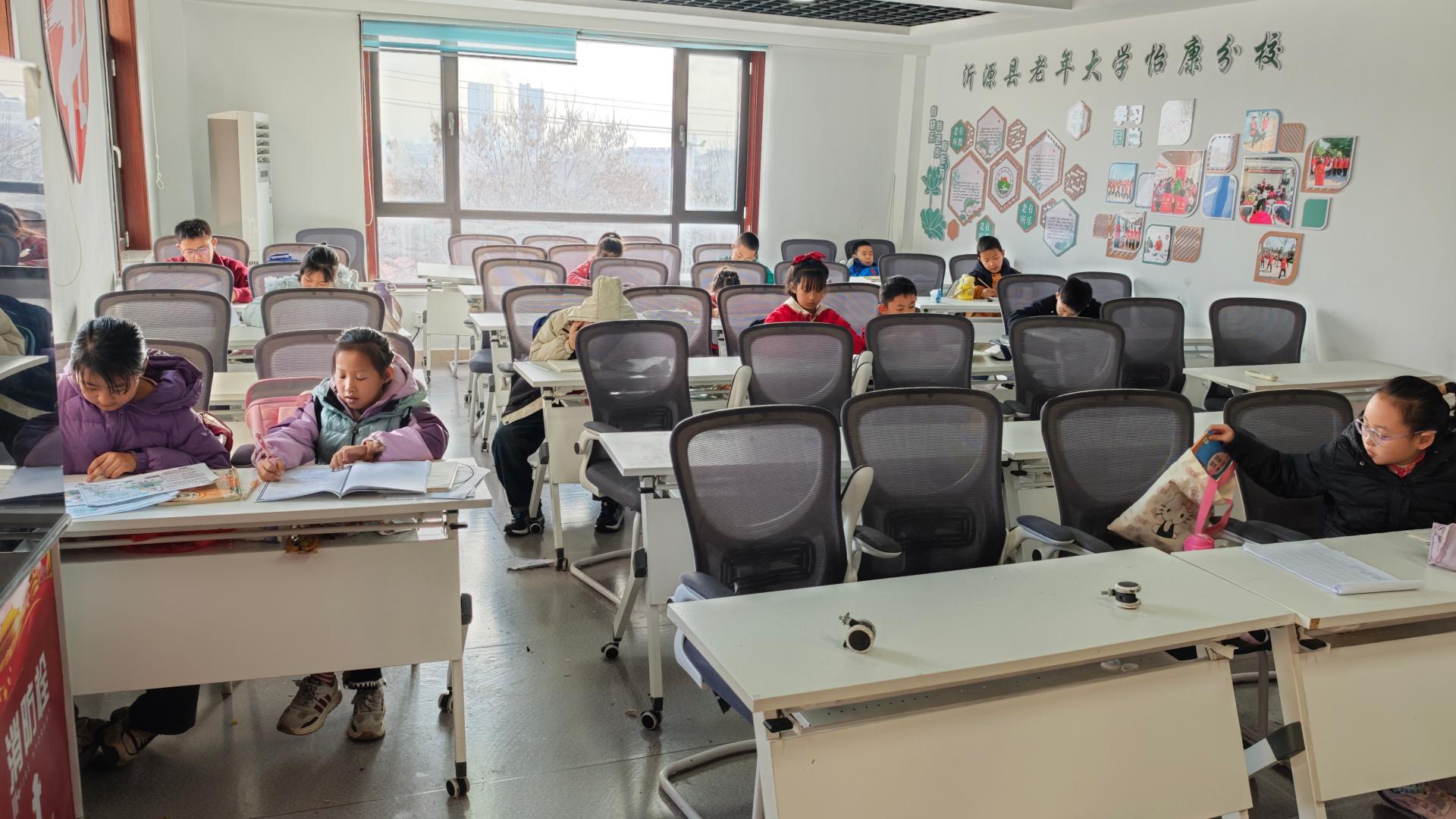 怡康社区寒假公益课堂,为社区中小学生提供假期学习场所。招募志愿者监督帮助孩子们写作业,开展多项活动。