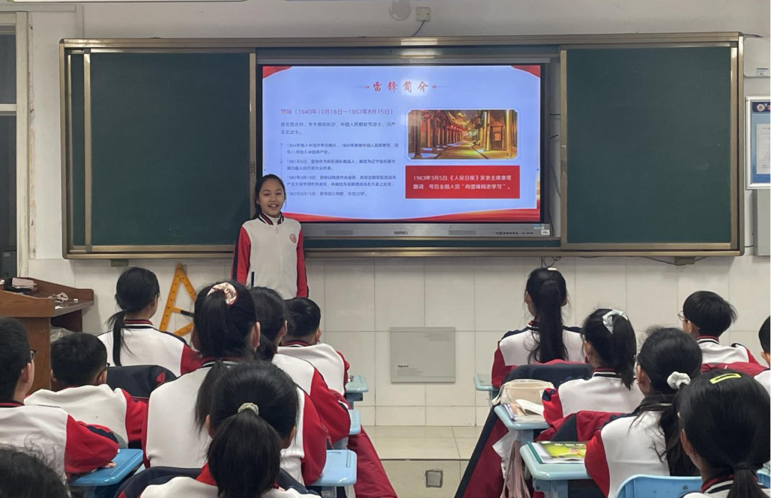 在桓台一中附属学校,优秀学生代表李芝涵在班级开学第一课上,以“与子同学 志愿同行”为主题,跟大家介绍了雷锋故事,并分享了自己的志愿服务经历,讲述自己参与校园志愿服务、社区公益活动的心得体会,“雷锋精神永不过时,作为新时代好少年,我会以雷锋为榜样,将奉献精神记在心里、落在实处,用自己的微光为身边人、为集体带来更多正能量。”