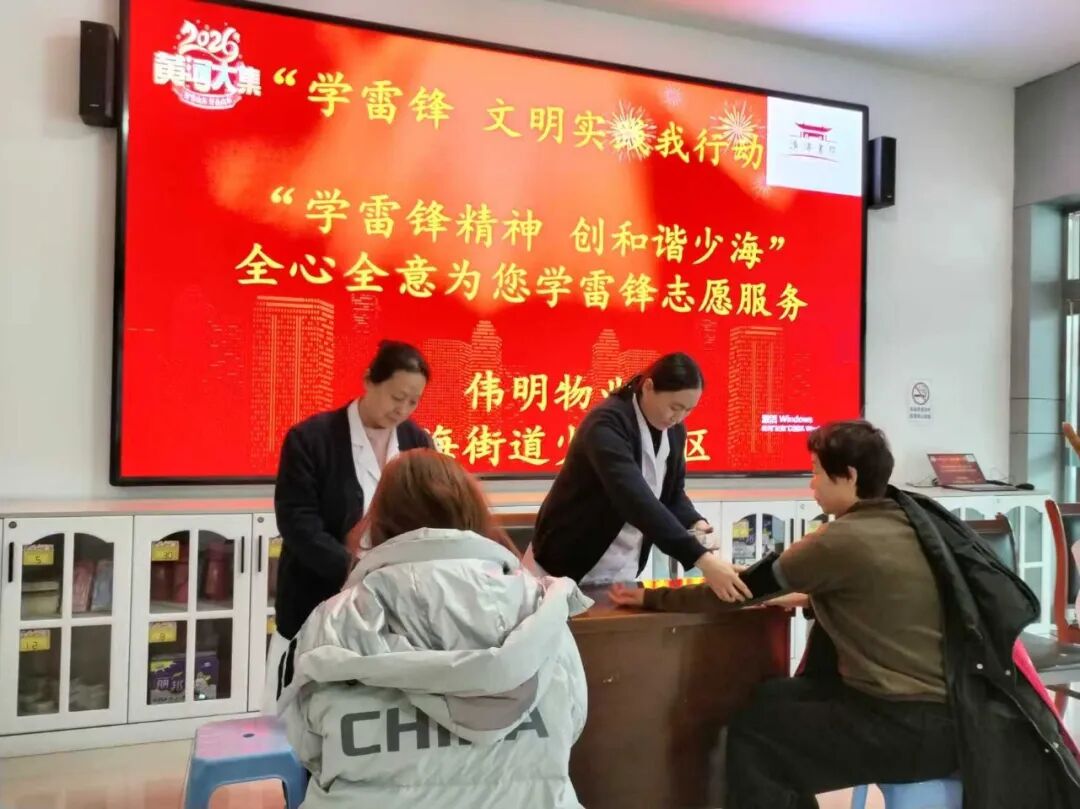 东城社区、兴华社区新时代文明实践站联合少海街道卫生服务中心,共同开展“学雷锋·文明实践我行动”主题活动,将健康服务与政策宣传深度融合,为居民送上“双重暖心礼包”。