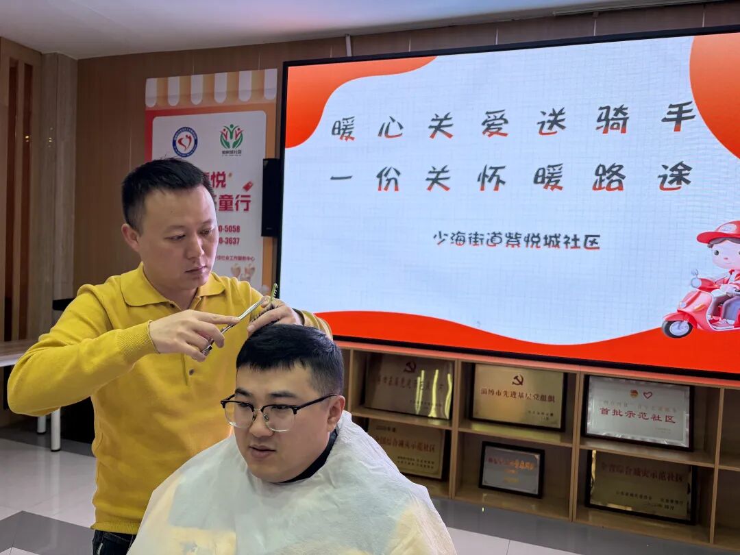 除了关注老年人的健康,社区还聚焦外卖骑手等新就业群体的日常需求,推出了一系列暖心贴心服务。社区为骑手们送上了保温杯、雨伞等实用爱心礼包,同时,社区携手爱心企业盛世名剪理发店签订《新就业群体关爱协议》,现场提供免费理发服务,并推出长期惠民剪发活动。此外,社区升级打造了“暖心驿站”,专门增设骑手休息专区,配齐急救箱、手机充电站等便民设施,为骑手们提供一个歇脚、充电、补给的温馨空间。为了让新就业群体更好地融入基层治理,社区创新实施了“骑手网格员”计划,聘任15名责任心强、熟悉社区环境的外卖骑手担任兼职网格员,为社区建设注入新鲜活力与强劲动能。