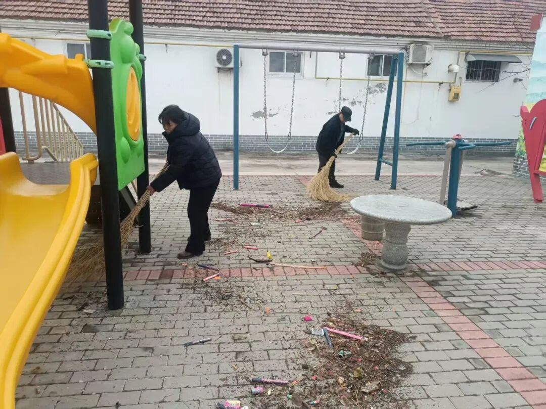洁净家园,美化环境,雷锋精神在劳动中闪光。索镇街道徐家村组织志愿者开展环境卫生清洁行动,志愿者们携带扫帚等工具,对村内文化广场、健身区域等公共区域进行全面清扫,重点清理鞭炮碎屑、落叶及卫生死角。大家分工协作、干劲满满,为村民打造舒适安全的休闲空间,以实际行动守护美丽家园、涵养文明乡风。