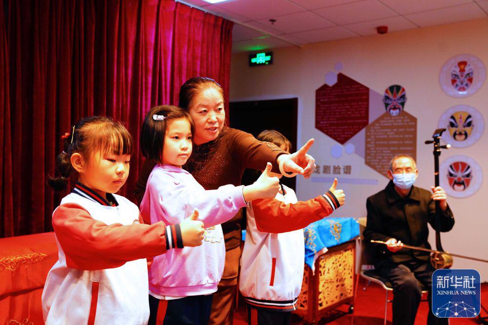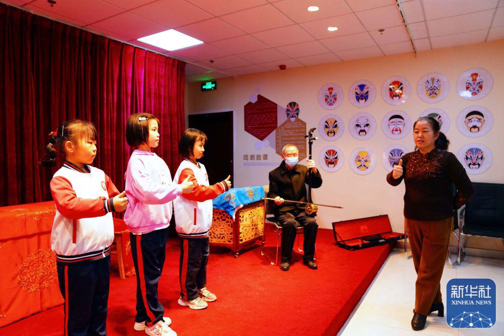 11月19日,在桓台县果里镇伊家村乡村“复兴少年宫”,志愿者老师教孩子们学习吕剧。