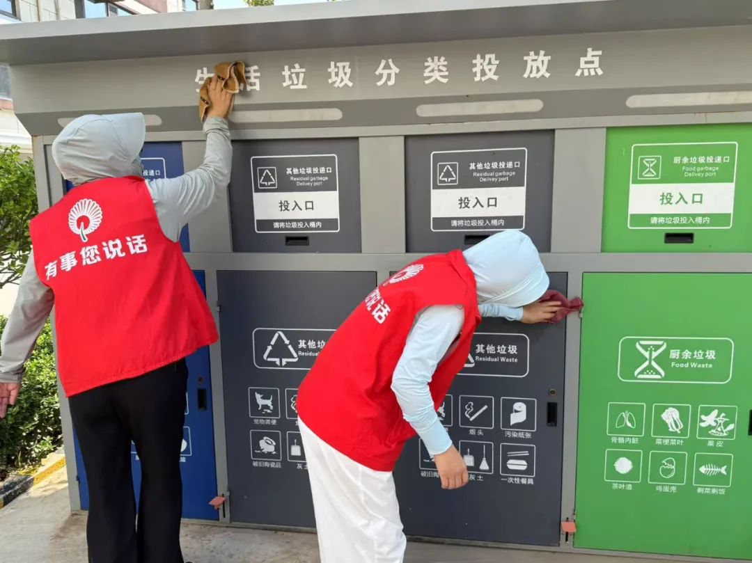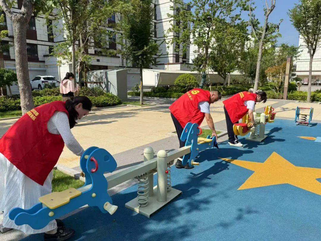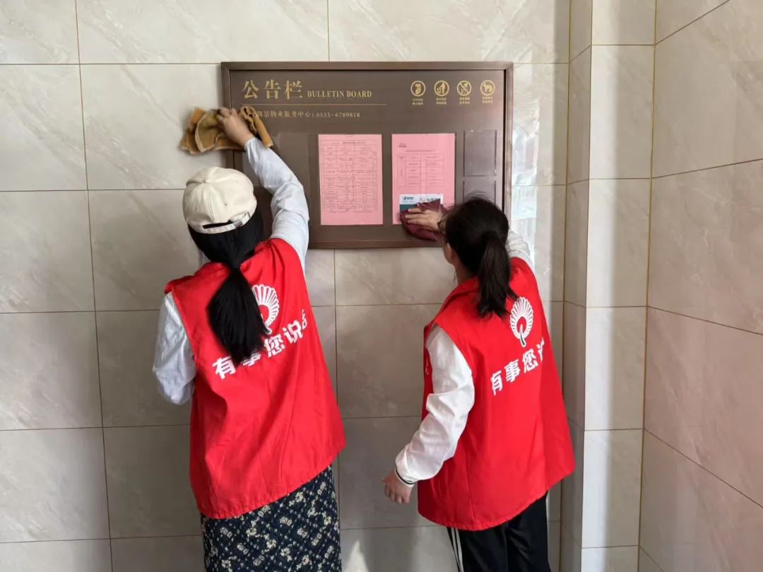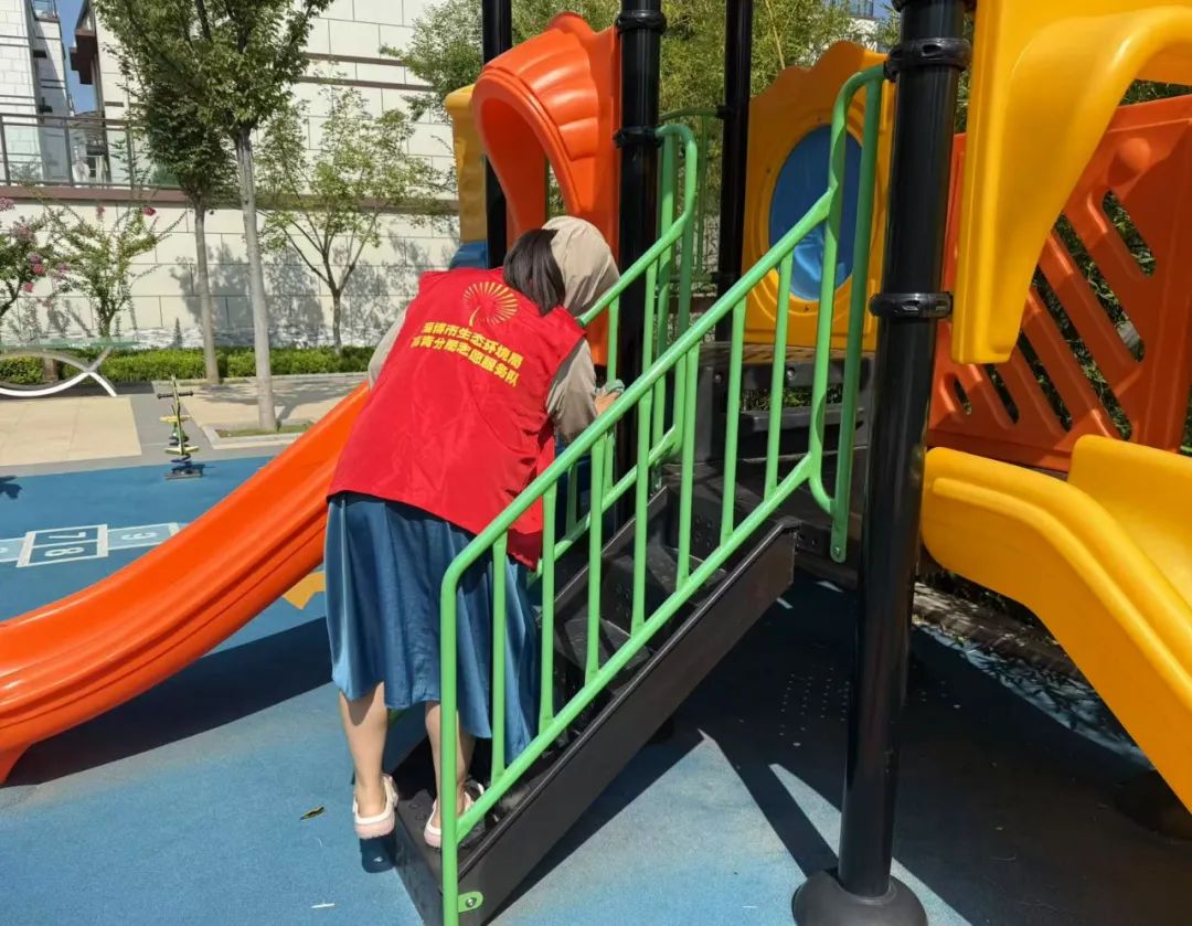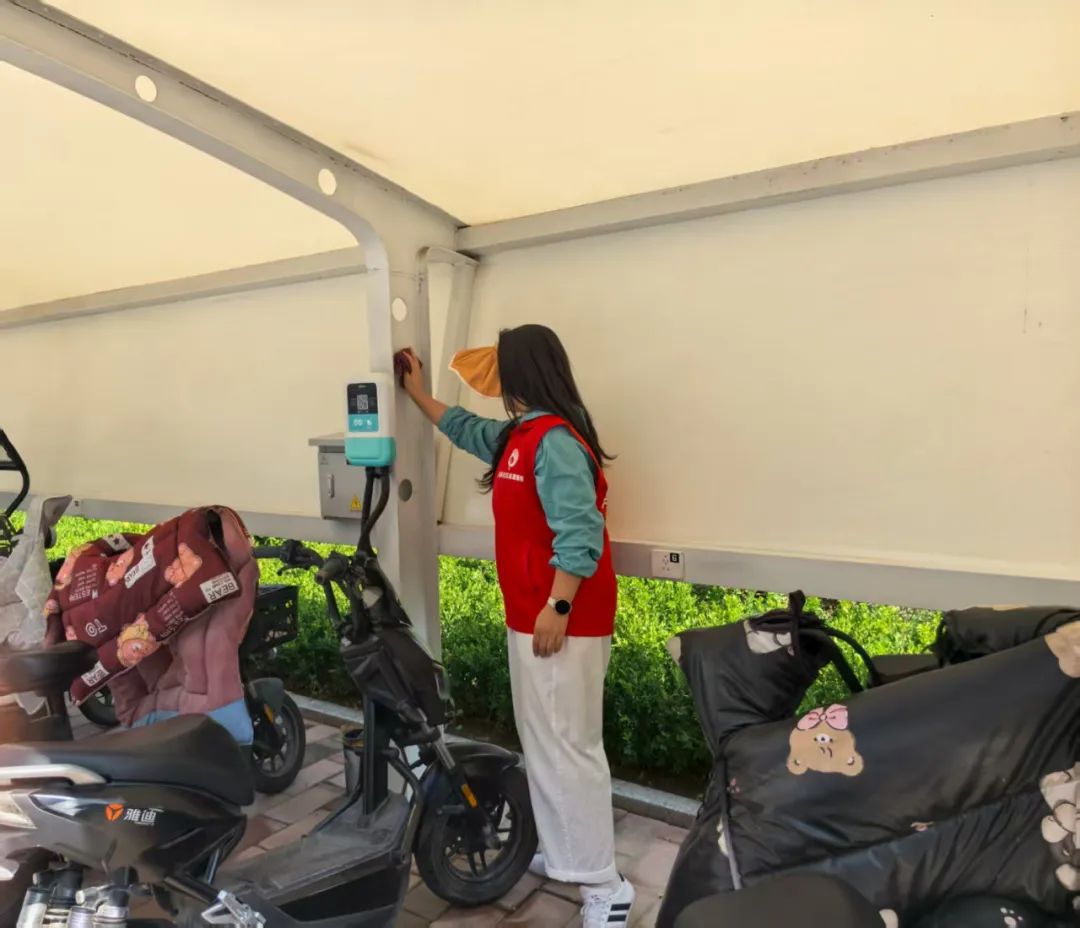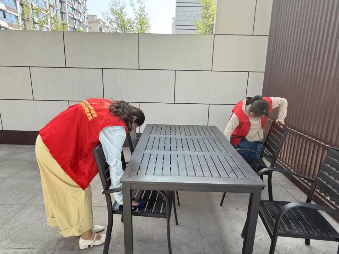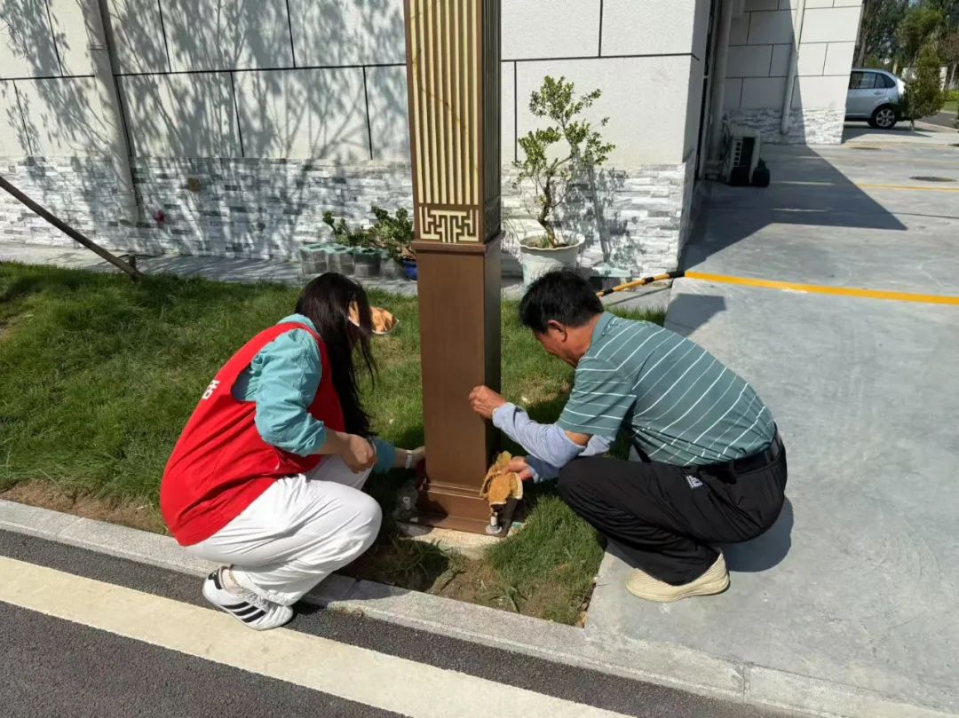 活动从上午9点开始,志愿者们分头行动。有的负责清理公共区域垃圾杂物,重点对绿化带、楼道拐角和垃圾桶周边进行排查。有的专注于擦拭公共设施,从健身器材、休闲长椅到公告栏、单元门扶手,都用消毒湿巾仔细擦拭。志愿者们分工协作,让各类设施恢复洁净本色,连消防栓箱内侧都擦拭得干干净净。