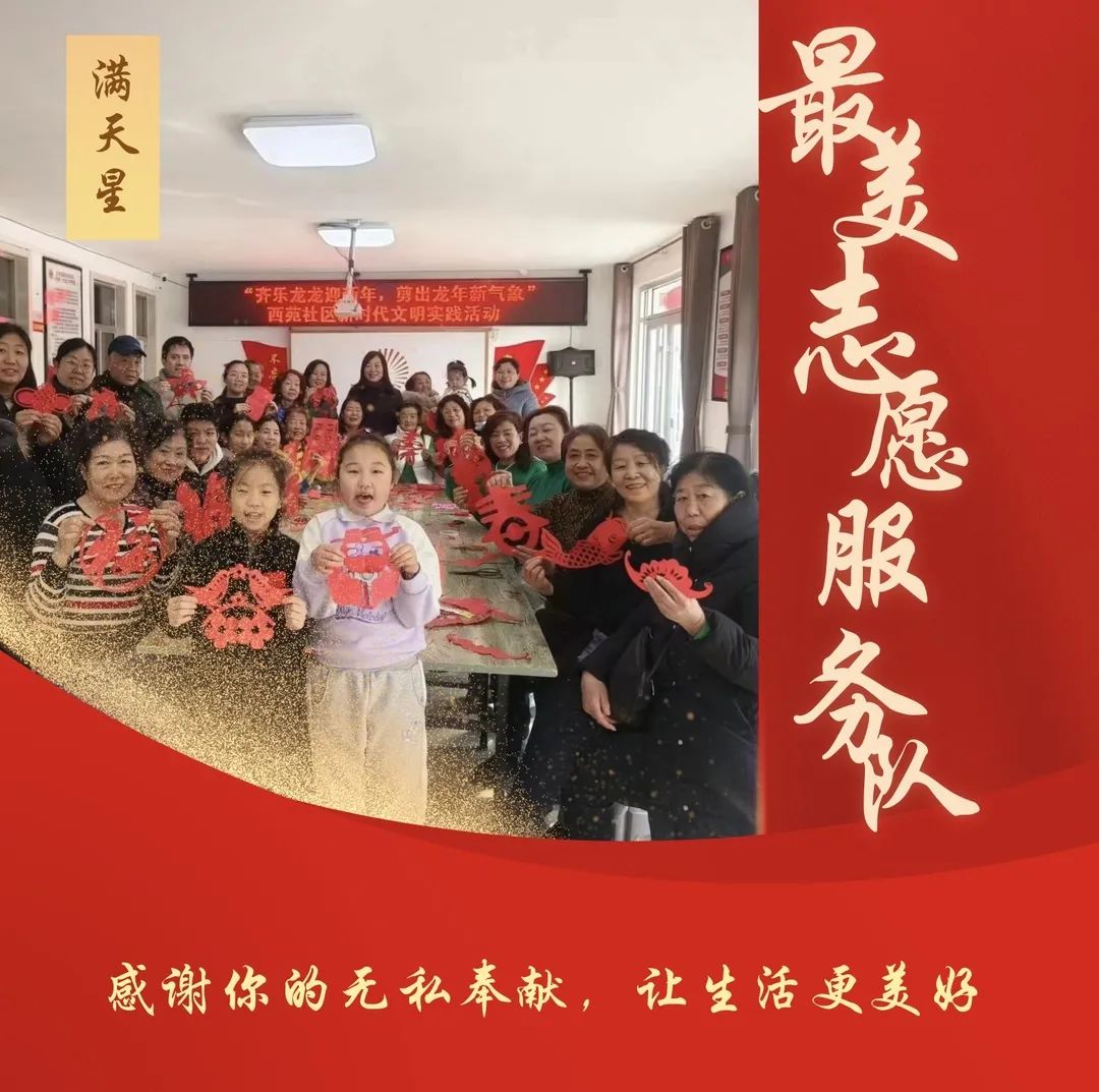 “满天星”志愿服务队伍 西苑社区“满天星”志愿服务队伍,寓意散是满天星,聚是一团火,以星星点点之力汇聚爱的海洋。“满天星”
